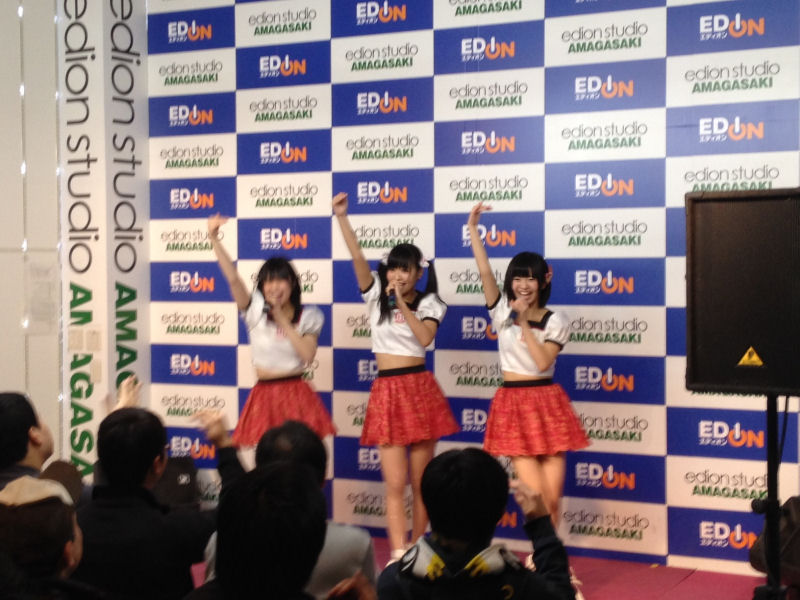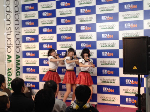 積雪までは無いまでも、吹雪の中「エディオンJR尼崎駅店」に詰めかけたファンと様々な質問を交えたトークや、レアグッズがもらえるじゃんけん大会、そして当初予定していなかったミニライブ!
