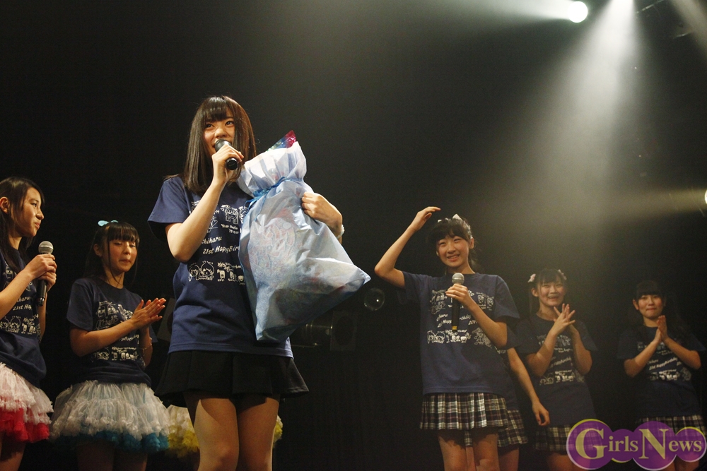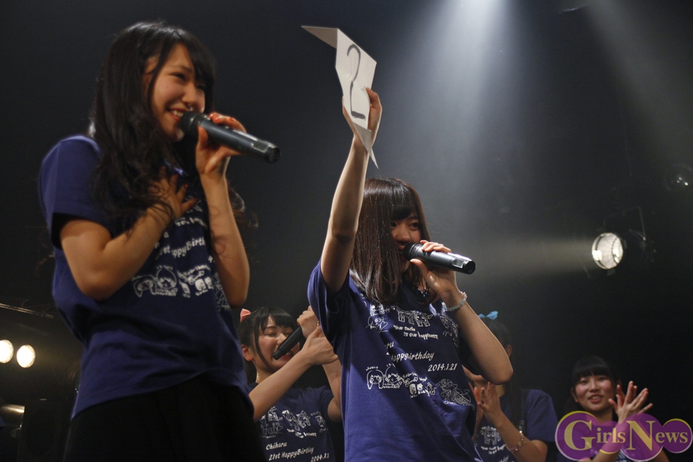 青木千春さんに対して、花束の贈呈や、21をかたどったケーキのプレゼントがあり、また、浦谷はるなさんと集まったファンでハッピバースデートゥーユーを歌い誕生日をお祝い。集まったファンと記念撮影をしたり、ファンや他のアイドルさんからのメッセージが入ったアルバムや生誕Tシャツのプレゼントなどもあった。