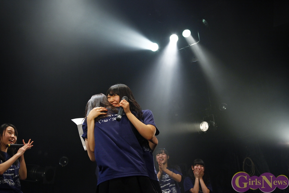 ライブの出番となった青SHUN学園はまず、WHY@DOLLにセンターポジションに立ってもらい「生まれてくれてありがとう」を披露して青木千春さんの誕生日をお祝い。曲中では、浦谷はるなさんが青木千春さんにひと言「ちはるんについてきて本当に良かったです。これからもよろしくね。」とメッセージを贈り、WHY@DOLLの二人が抱き合う場面も。このシーンに感動したファンが多かったのではないだろうか。