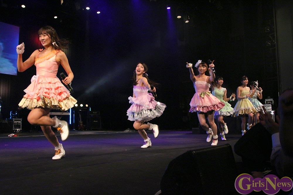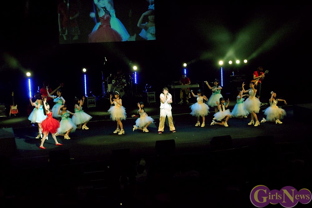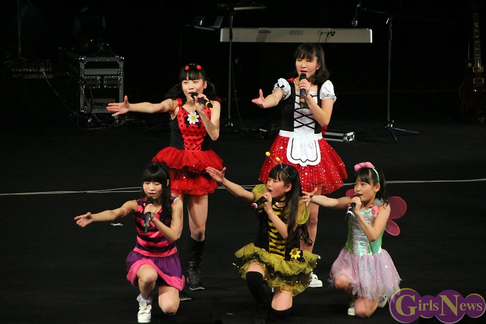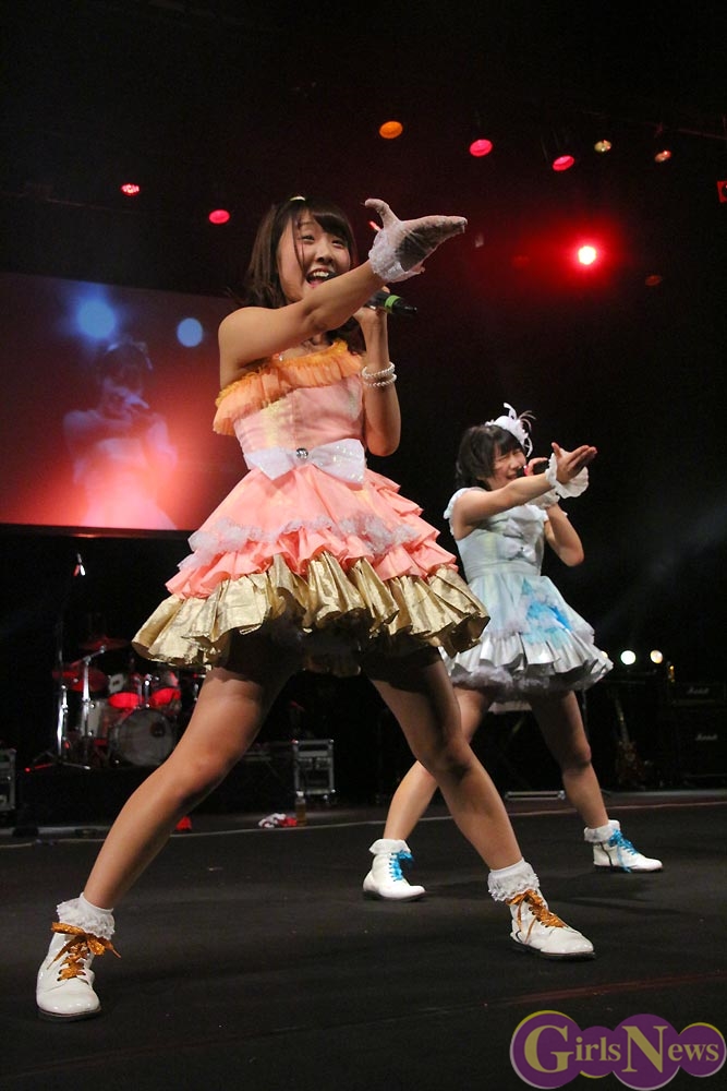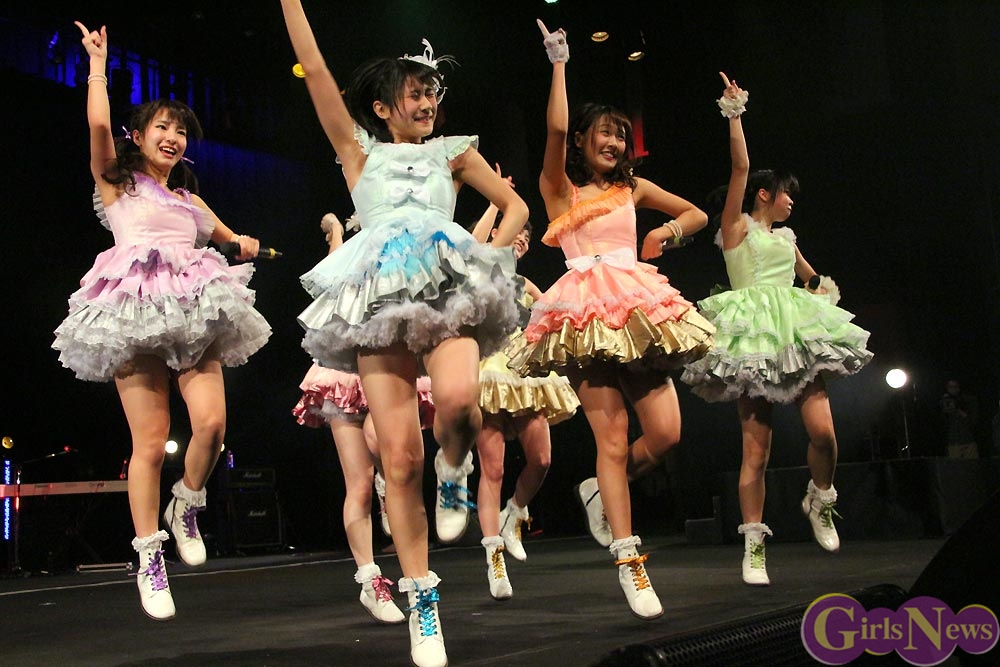青SHUN学園のダンスチーム美BIT★翼(ビビットウィング)は「Dance!!Dance!!Dance!!」を披露し、これまでのメンバーに加えて佐藤彩さんやひなた歩夢さんが参加して、華麗なダンスを披露。また、ライバルのえんじぇるぷっち☆は「ツインテール~I LOVE YOUをありがとう~」をティンカーベルのような黄緑色の新衣装で披露し、セリフはひなた歩夢さんと田島くれあさんが担当。えんじぇるぷっち☆も新たに雛吉桃世さんや渡辺菜友さんが参加して可愛らしいパフォーマンスでファンを魅了した。