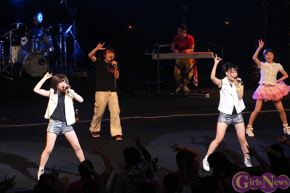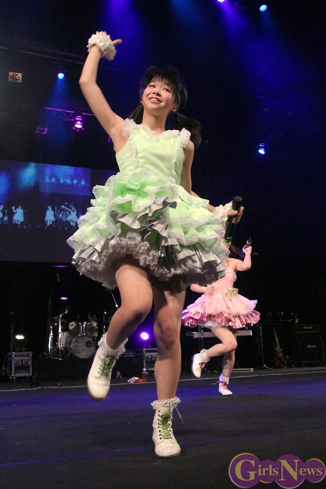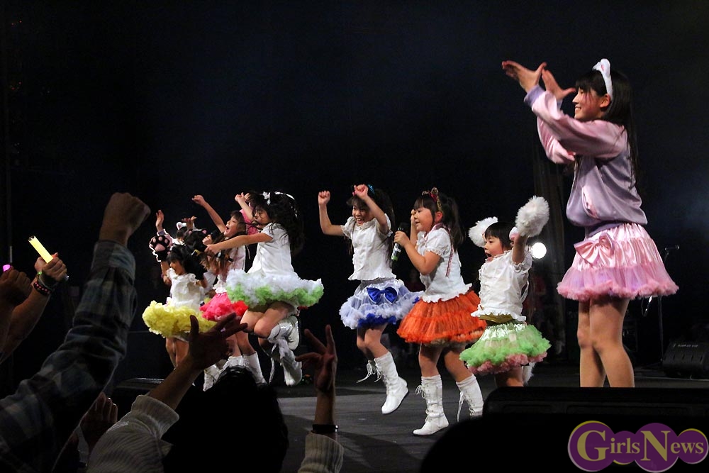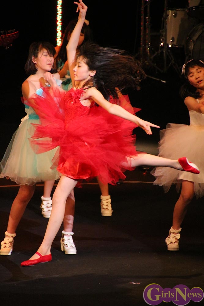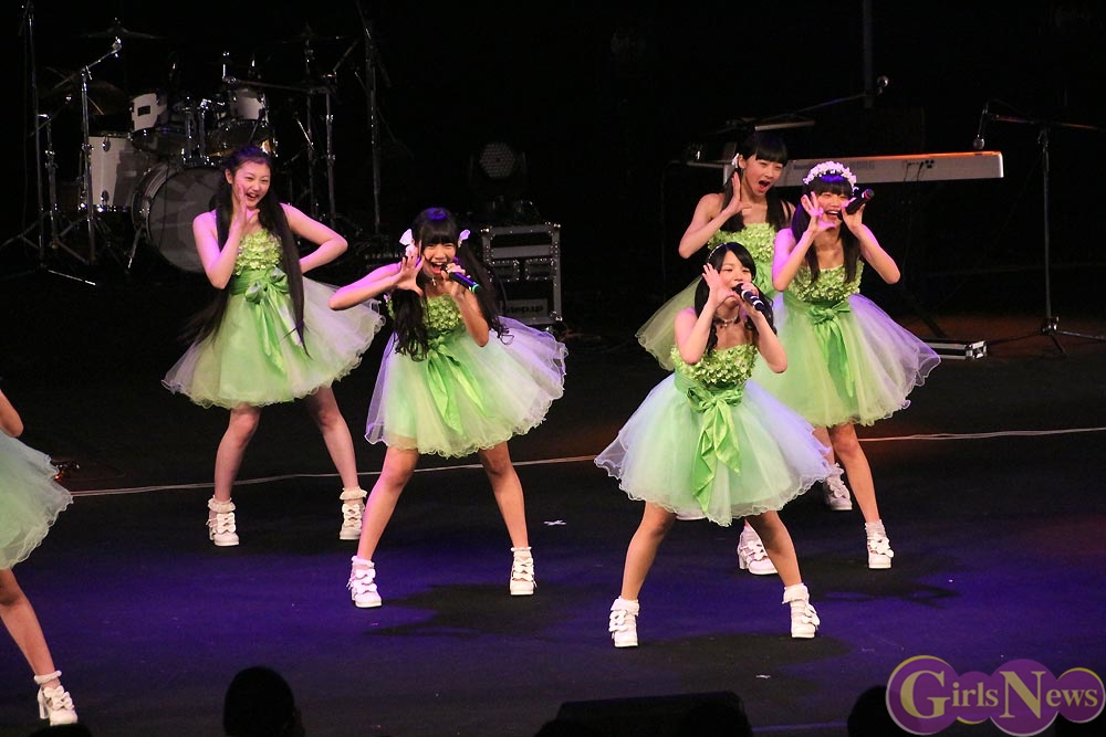 青SHUN学園のダンスチーム美BIT★翼(ビビットウィング)は「Dance!!Dance!!Dance!!」を披露し、これまでのメンバーに加えて佐藤彩さんやひなた歩夢さんが参加して、華麗なダンスを披露。また、ライバルのえんじぇるぷっち☆は「ツインテール~I LOVE YOUをありがとう~」をティンカーベルのような黄緑色の新衣装で披露し、セリフはひなた歩夢さんと田島くれあさんが担当。えんじぇるぷっち☆も新たに雛吉桃世さんや渡辺菜友さんが参加して可愛らしいパフォーマンスでファンを魅了した。