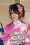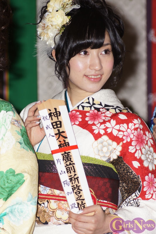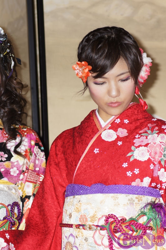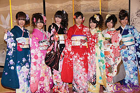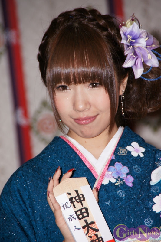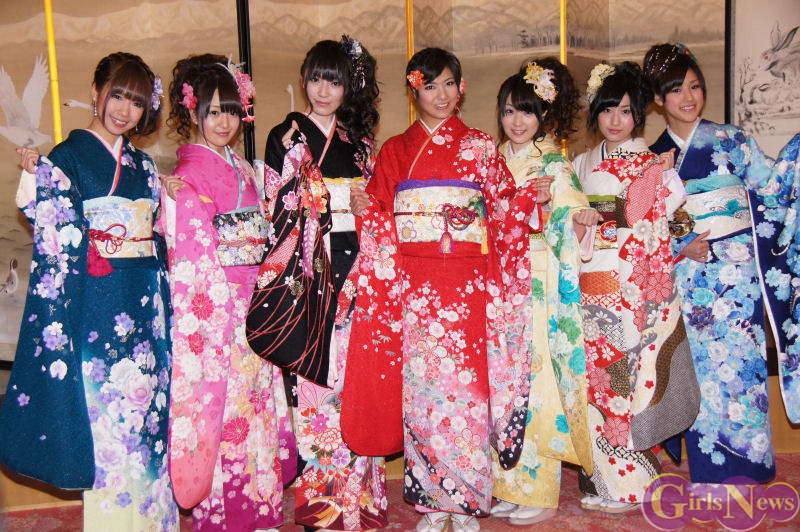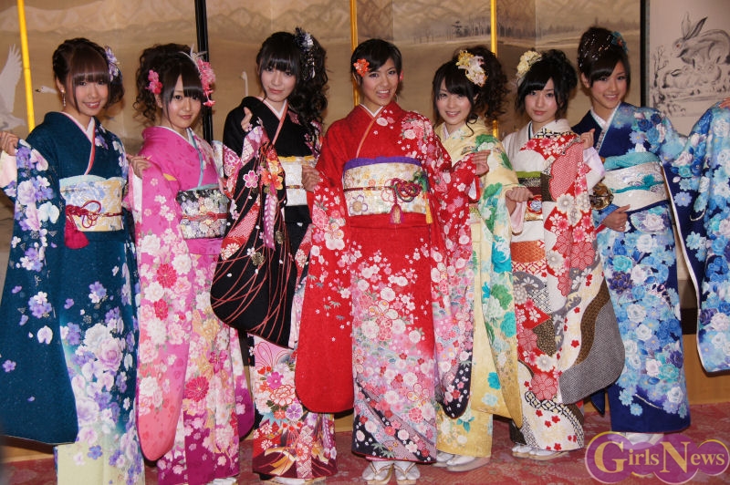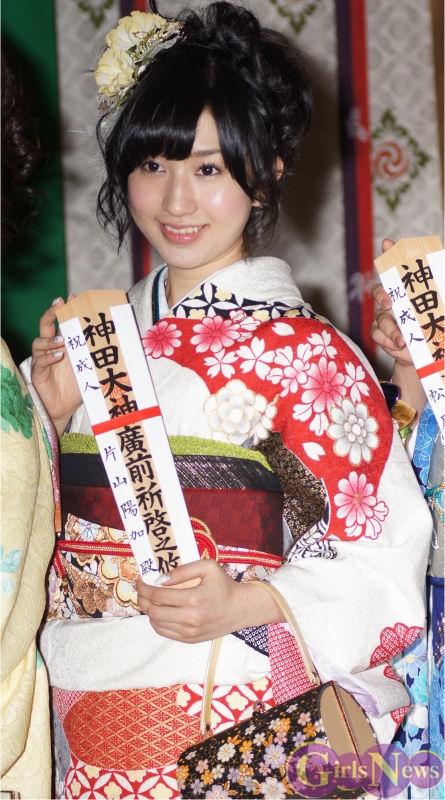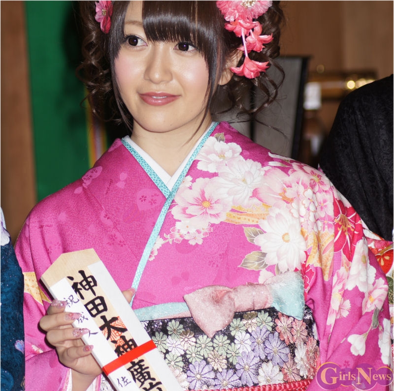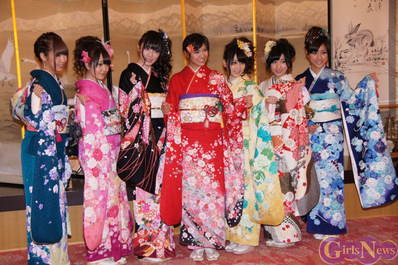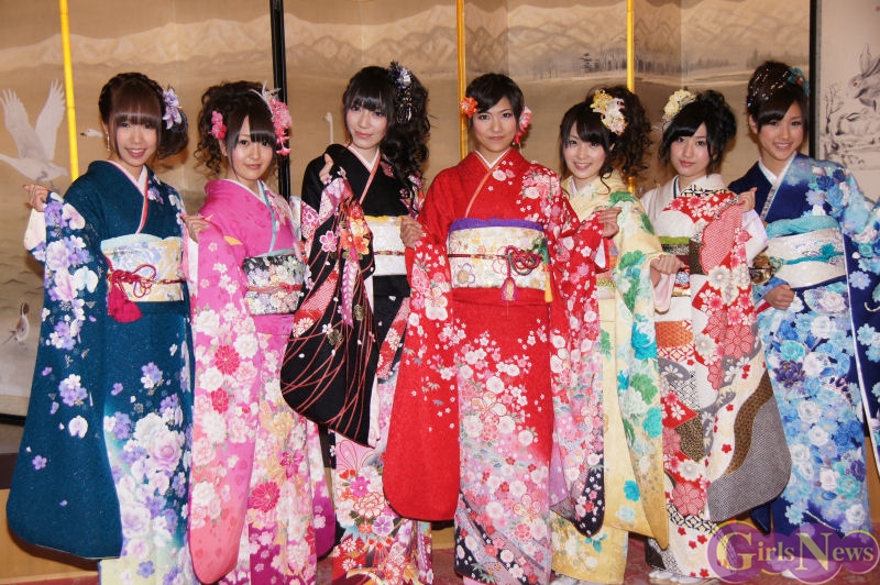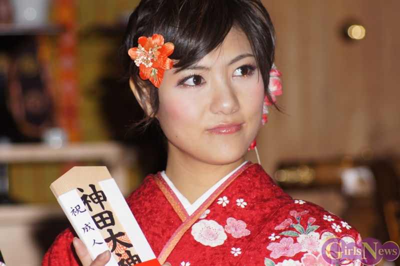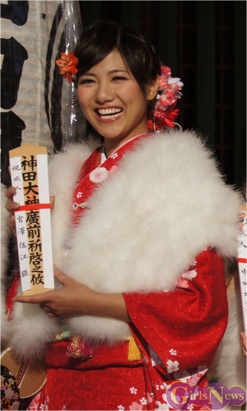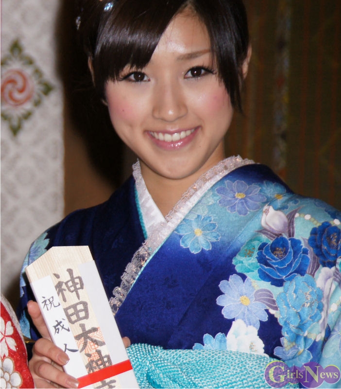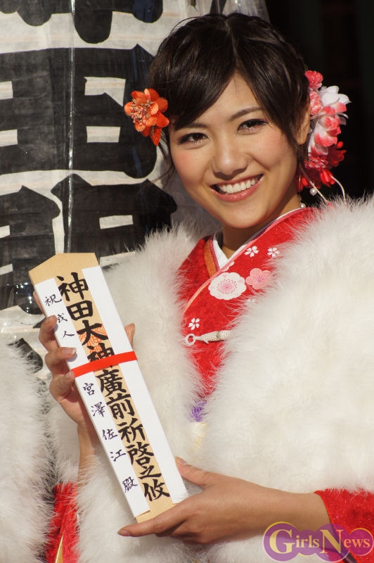 1月10日、AKB48で新成人となったメンバー 宮澤佐江・松原夏海・松井咲子・中田ちさと・佐藤夏希・佐藤亜美菜・片山陽加の7人が秋葉原に程近い 神田明神で成人のお祓いを受けるため振袖姿で参拝した。