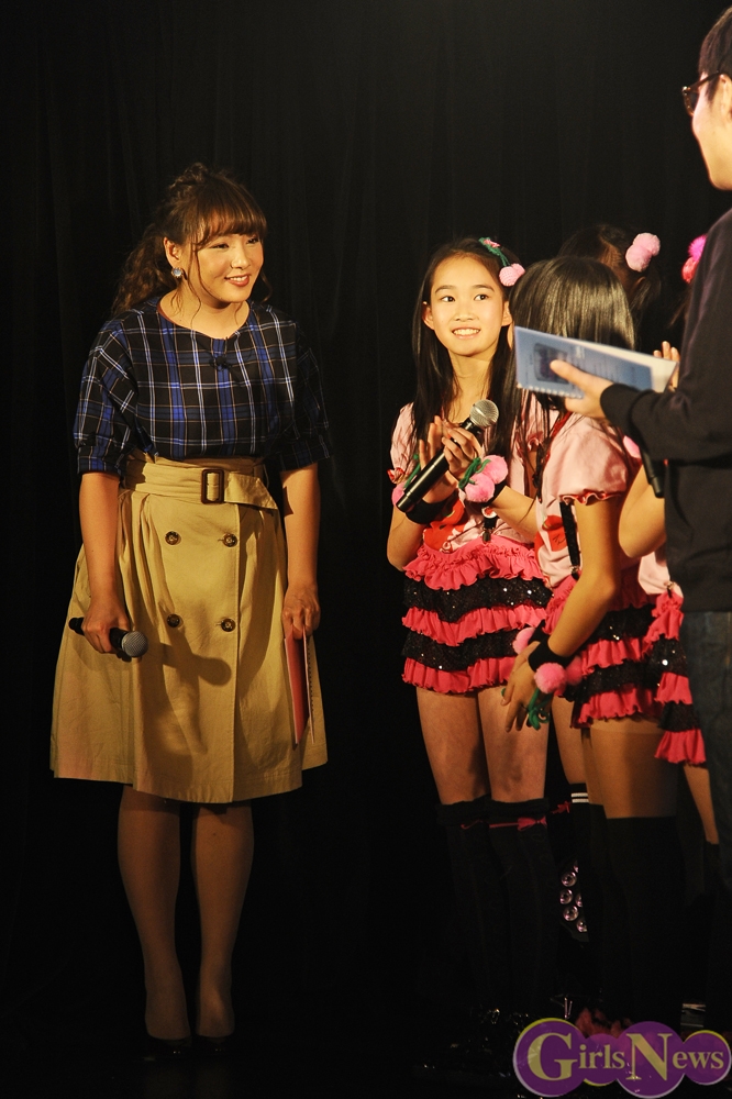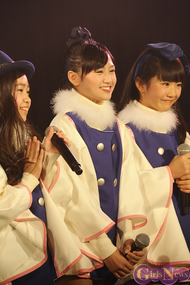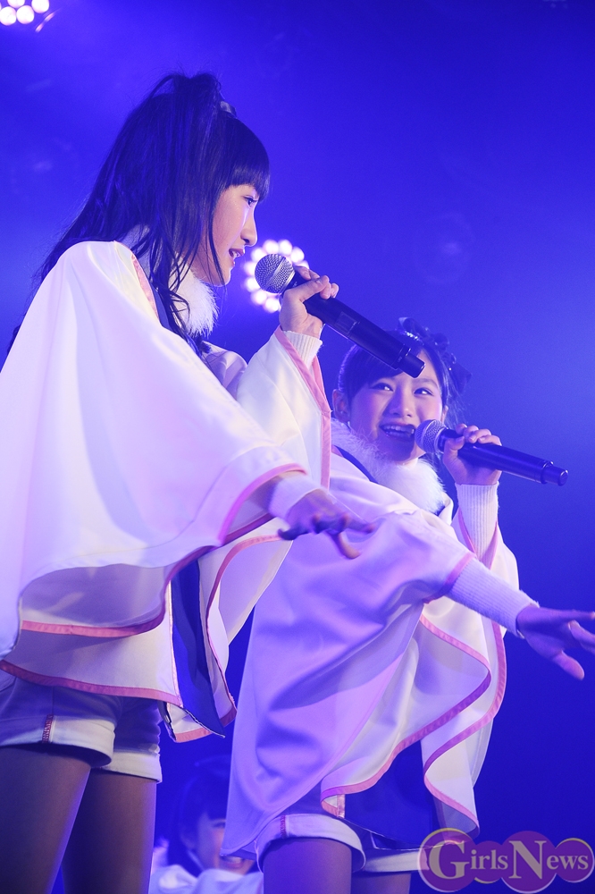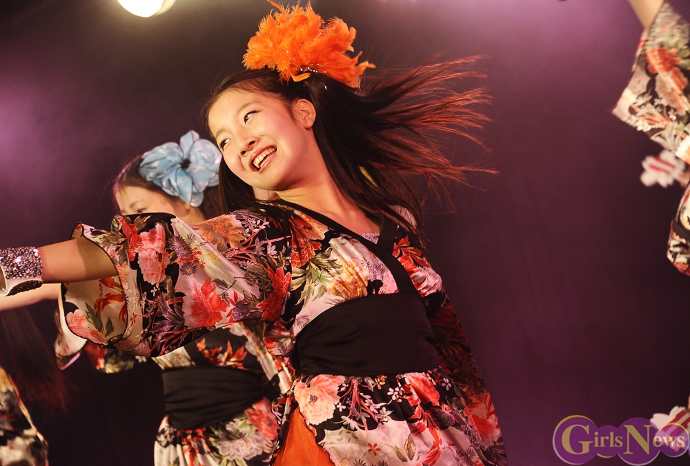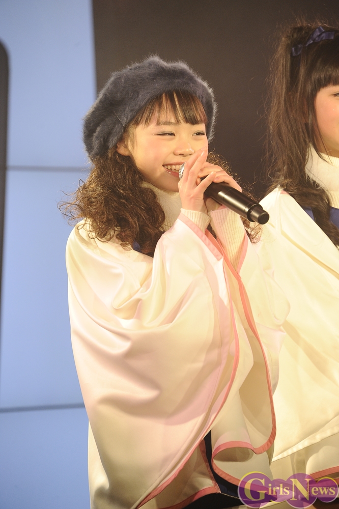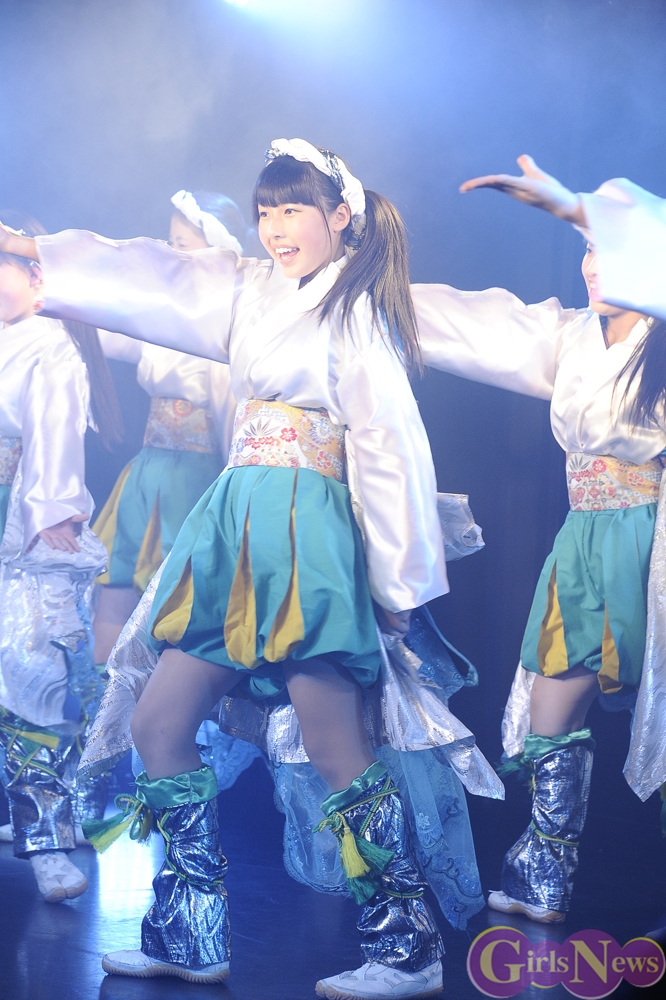 3番目に登場したのは、石川県を盛り上げて元気にするアイドルグループJumpin’(ジャンピン)。この日は、小学生組6人でのパフォーマンスだったが、登場すると大歓声で迎えられ、「BYUUUNN!!」「スマイル方程式」「Jumpin’~ラララパノラマ~」の3曲を披露。以前の真っ白のポンチョにピンクのブーツの衣装から、白地に青とピンクのラインが入った新しい衣装に変わっていた。