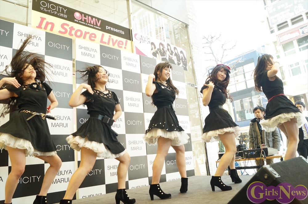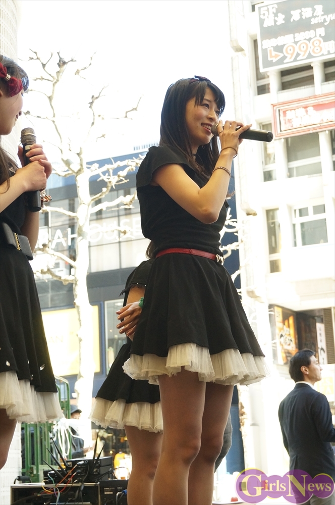 セットリストは全4曲。「まだ(持ち歌が)4曲しかないんですけど、その4曲を大切にしながら、ステージ一つ一つをよりよくしていってファンの人を感動させる」(村山しほり)という意気込みそのままに、1曲目の「neo disco」からキレのあるダンスで魅せた。続いての「G」は、キャッチーなサビが印象的な彼女たちのデビュー曲。「外のイベントということで、歩行者の方の足を止めるパフォーマンスをしたい」(古森結衣)という宣言通り、彼女たちのアーティスト性豊かなライブで渋谷を行きかう人の耳目を集めた。