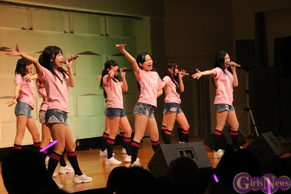 続いて、最初のゲストANNA☆Sが登場。ANNA☆Sの小池杏奈さんは「1年ちょっと前くらいに、福岡に遠征に行った時に、あるあるシティでライブをやらせて頂いて、もう1日どこかでライブしたいってなった時に、HRさんの定期公演におじゃまして」とANNA☆SとHRの思い出を披露。HRの中学生メンバー中沢友希さん尾河花奏さんとANNA☆Sの中学生メンバー小池優奈さん田沢涼夏さんとの交流もあった。