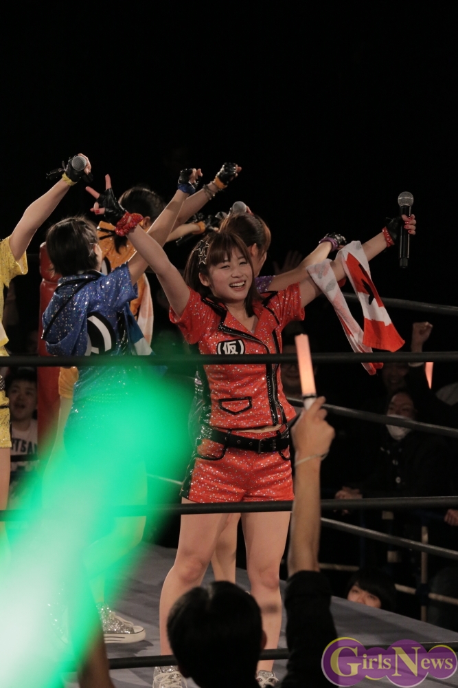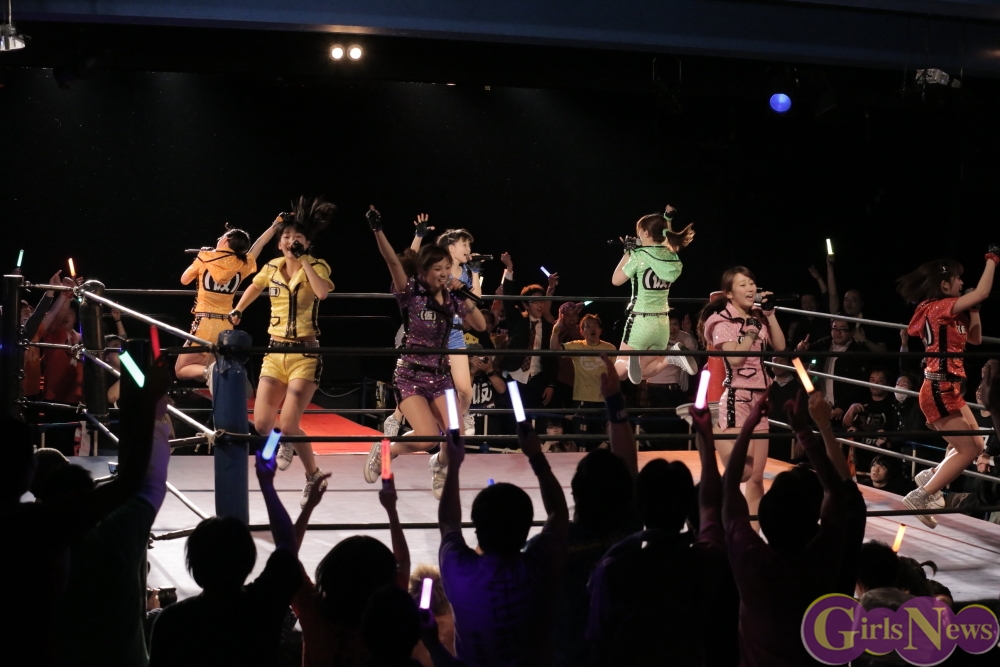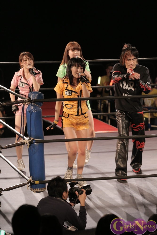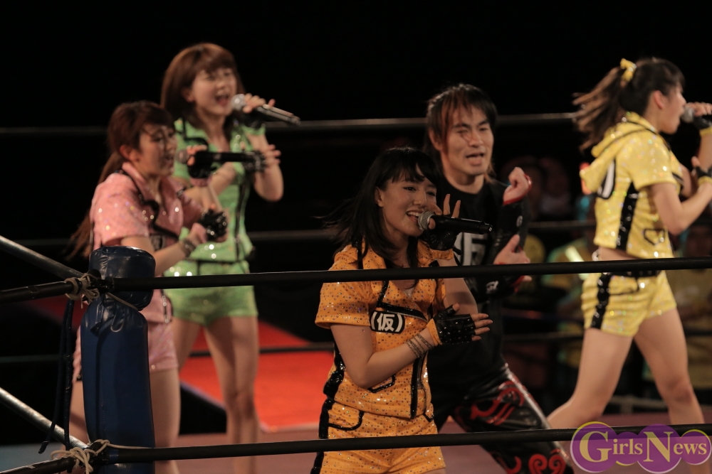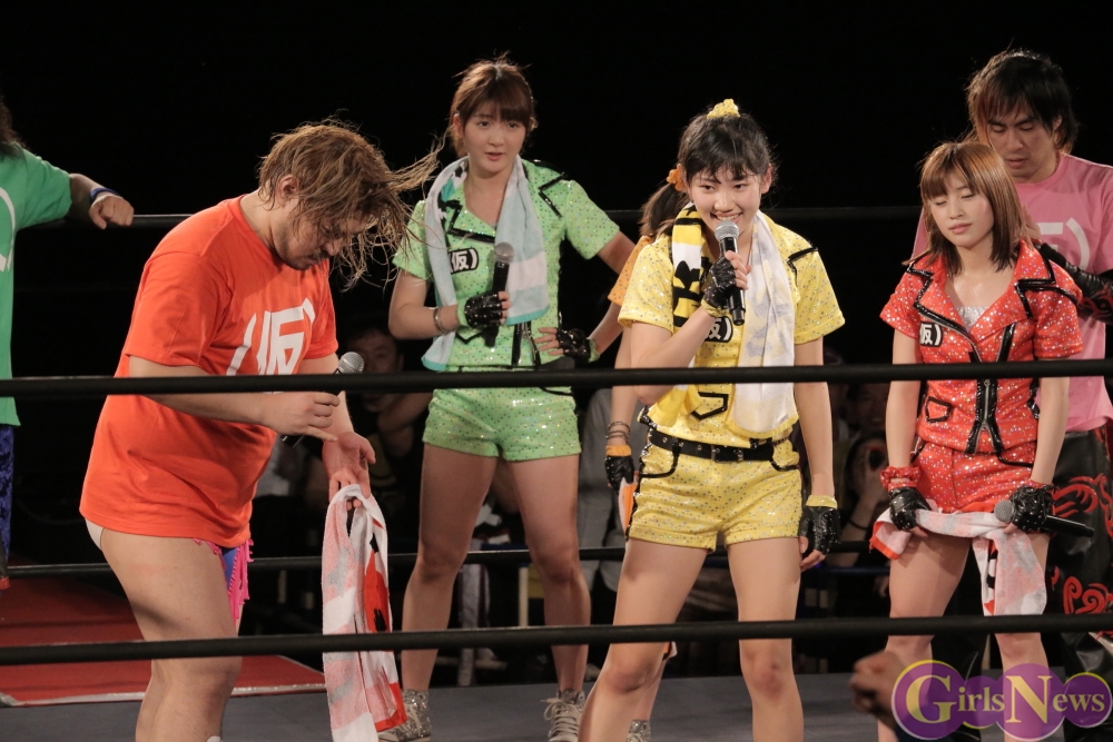 メンバーの佐藤綾乃さんは、昨年夏のDDTプロレス両国大会の出演などを通してプロレスが大好きになったというが、これまでプロレスの試合を観る機会があまりなかったアップアップガールズ(仮)のファンも命がけで戦い続けるDDTプロレスリングのレスラーの姿に精一杯声を上げて応援していた。