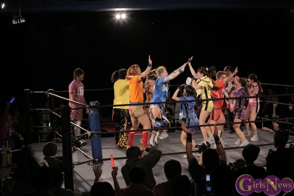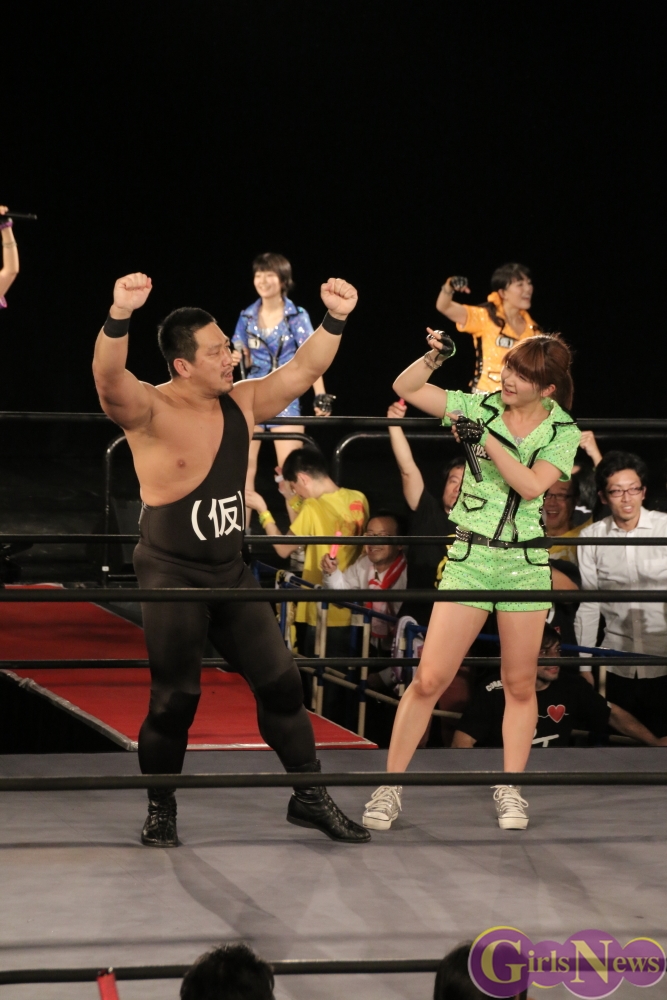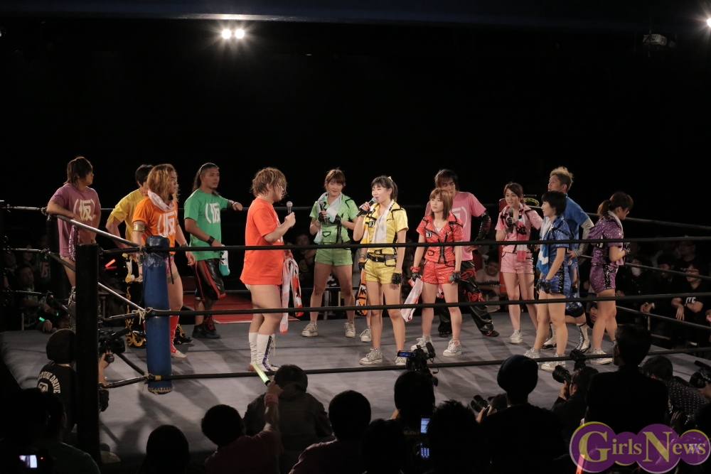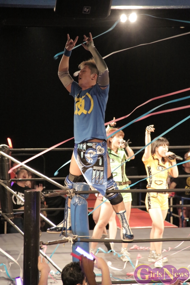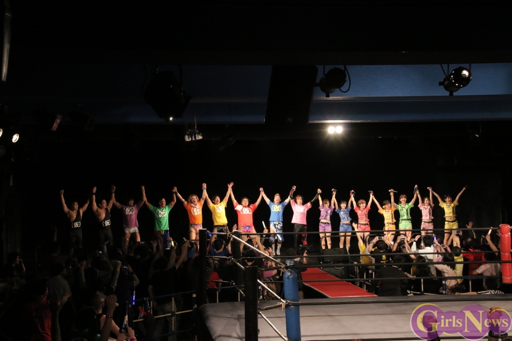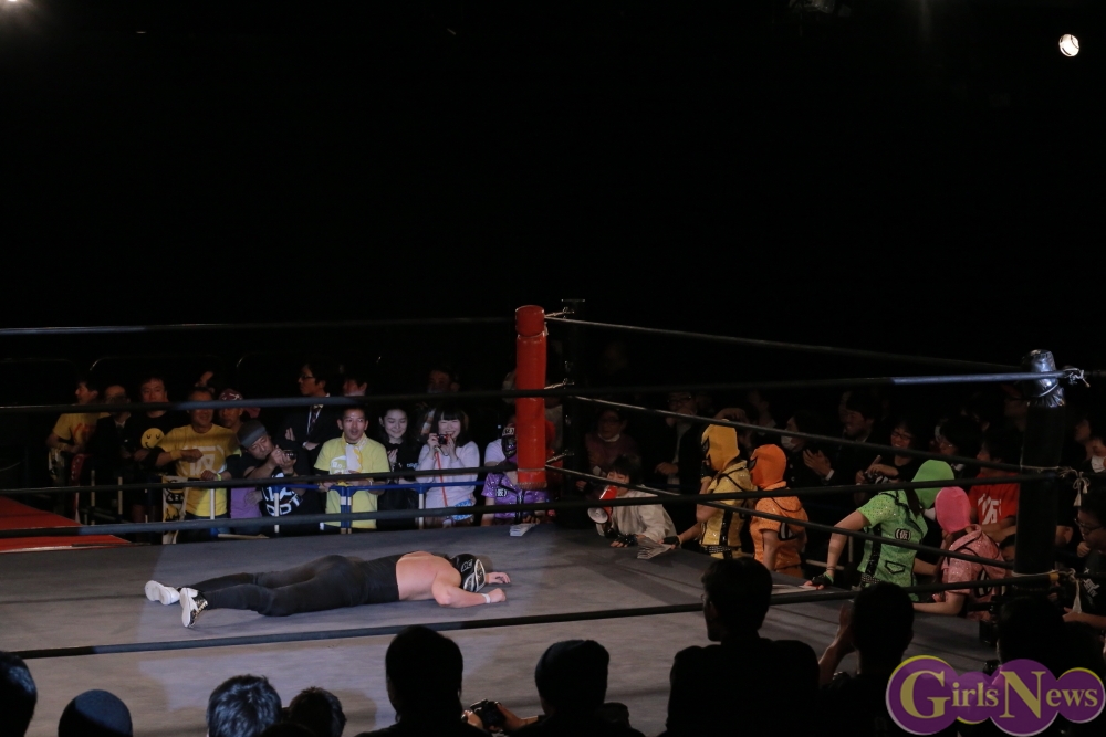 メンバーの佐藤綾乃さんは、昨年夏のDDTプロレス両国大会の出演などを通してプロレスが大好きになったというが、これまでプロレスの試合を観る機会があまりなかったアップアップガールズ(仮)のファンも命がけで戦い続けるDDTプロレスリングのレスラーの姿に精一杯声を上げて応援していた。