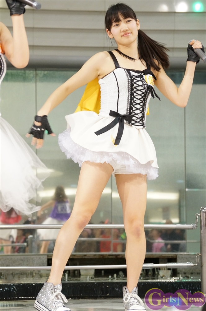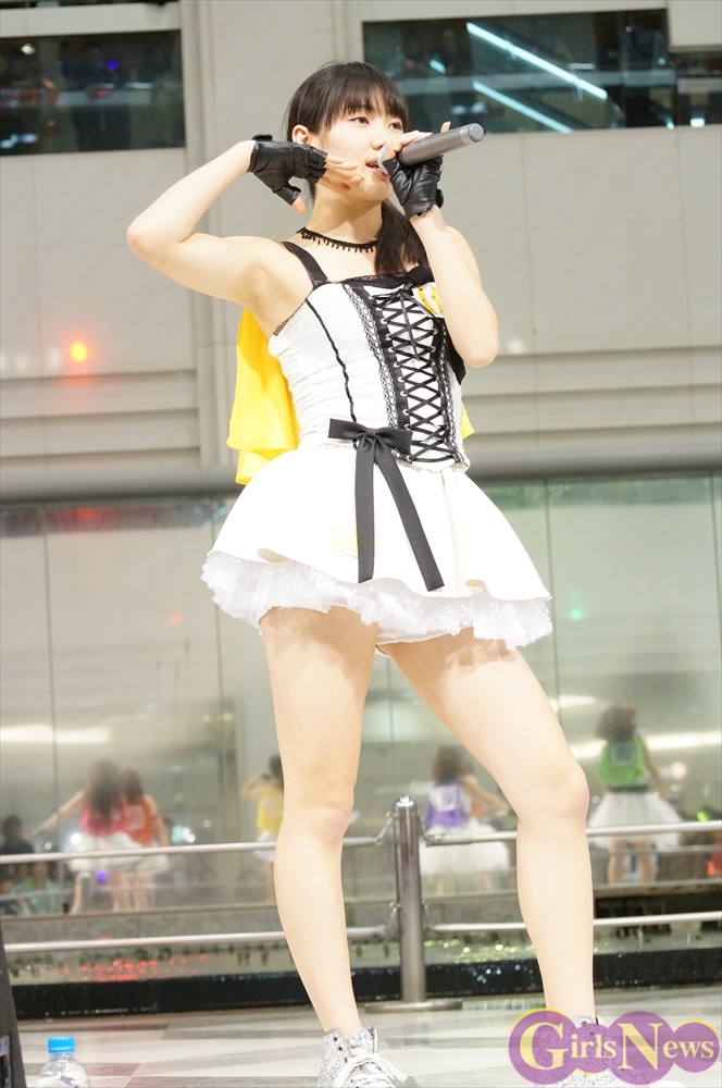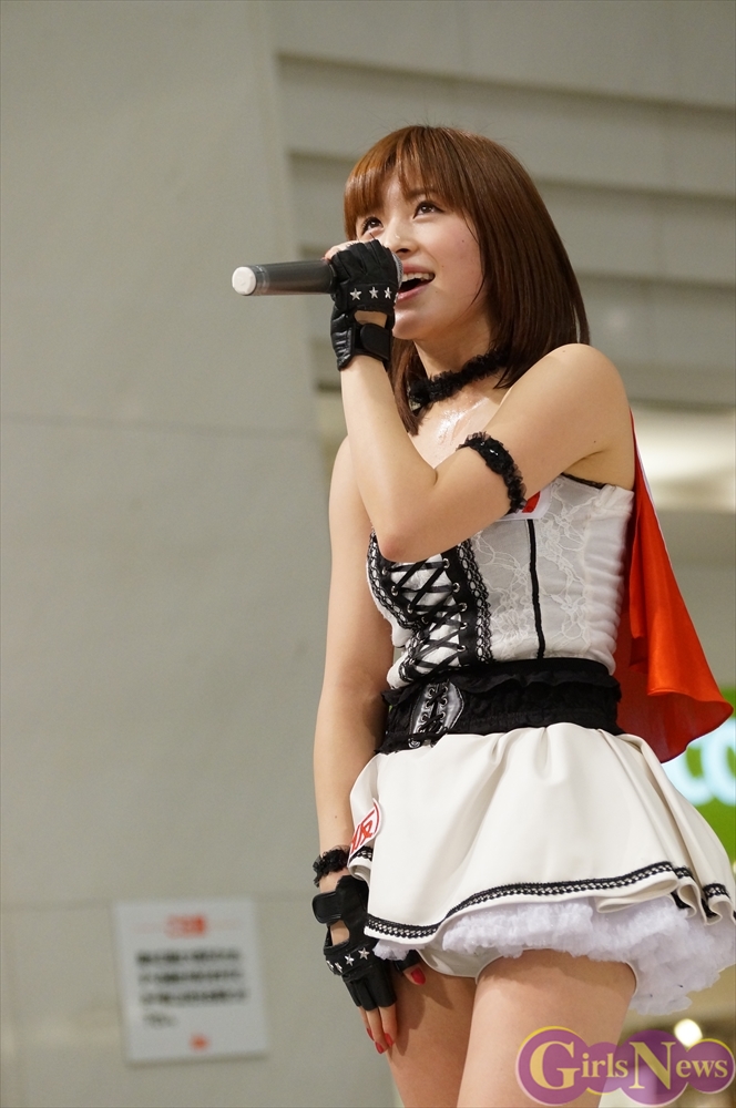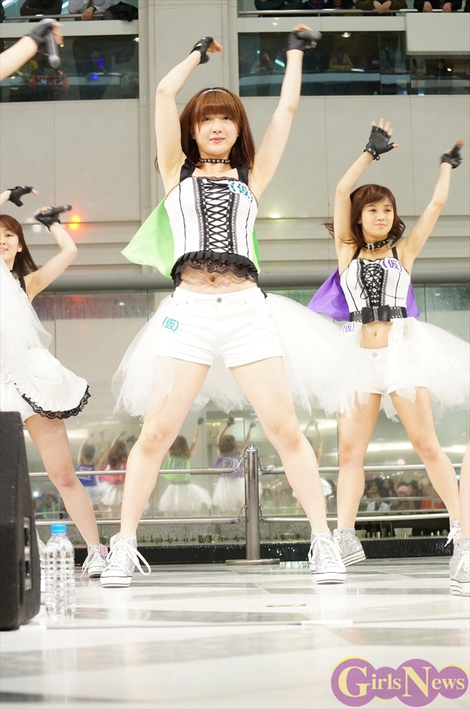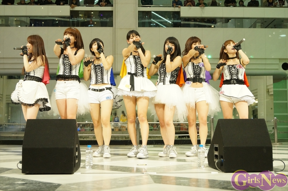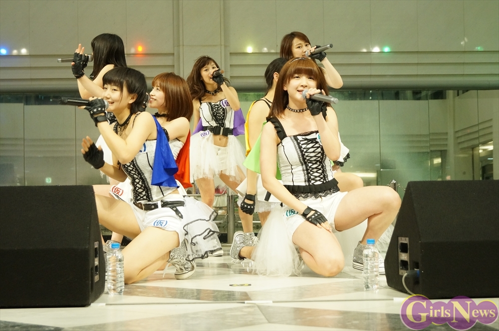 ミニライブは全4曲。「チョッパー☆チョッパー」では佐保明梨さんのチョップとともに水しぶきが上がるなど随所に噴水を使った演出が織り交ぜられ、観客の目を楽しませた。また、この日一番注目を集めたのは2曲目の「ワイルドセブン(y0c1e Remix)」。「セカンドアルバム(仮)」の初回限定盤にはアプガの名曲の中から6曲がRemixバージョンとして再収録されているが、今回の「ワイルドセブン(y0c1e Remix)」がRemix音源のライブ初披露となった。クラブのエッセンスが効いた新しいアプガの名曲の姿に、駆けつけた熱狂的なファンも大きな歓声を上げた。