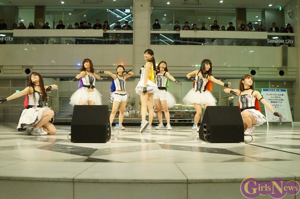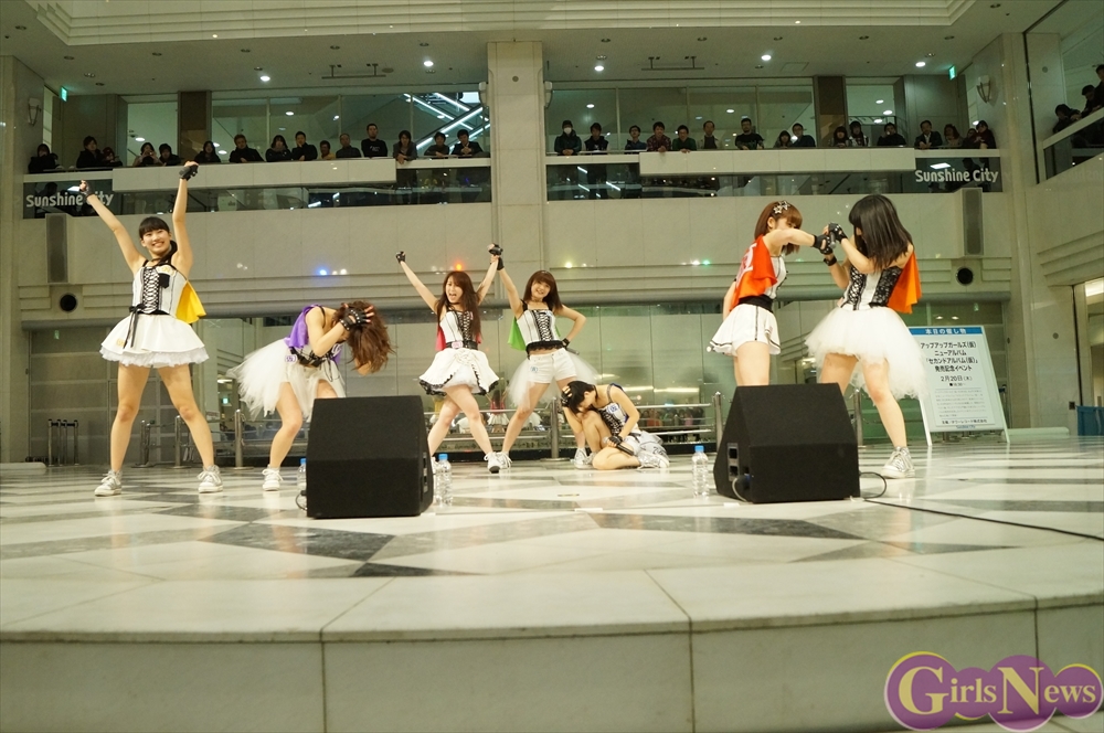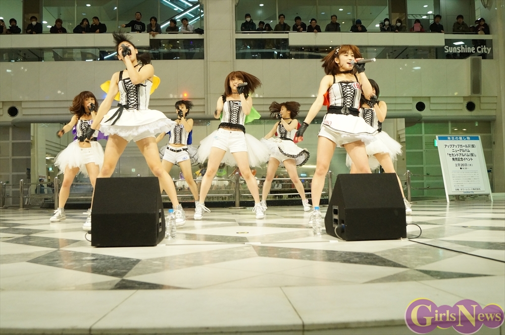 2月20日、アイドルグループ・アップアップガールズ(仮)(以下アプガ)の最新アルバム「セカンドアルバム(仮)」リリースイベントが、池袋・サンシャインシティ噴水広場にて行われ、のべ1000人のファンと買い物客が集結。前日の2月19日に、待望のセカンドアルバムをリリースしたアプガ。今回はそのリリースイベントをアイドルの登竜門・池袋サンシャインシティ噴水広場で行った。