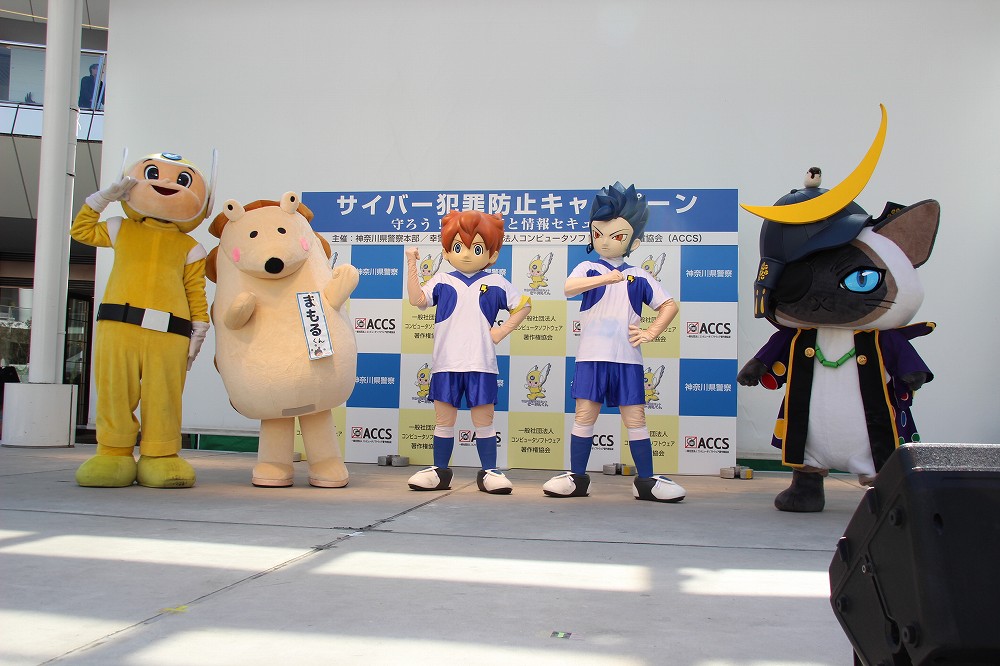 その後、著作権○×クイズトークショーやミニライブを行い、会場に集まった観客に対してサイバー犯罪の重要性を広く訴えかけた。このイベントには「ピーガルくん」「まもるくん」「天馬・剣城」「伊達まシャムね」などのマスコットキャラクターも参加。川崎純情小町☆と共にイベントを盛り上げた。