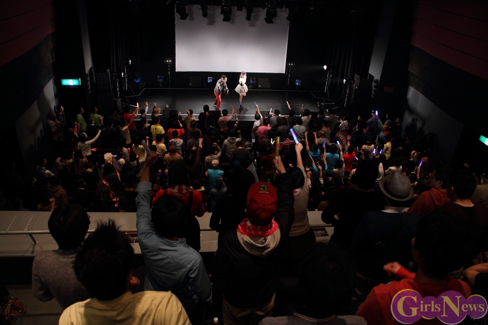 この日最大の見せ場は、4月22日発売の新曲「マワルセカイ」とカップリング曲「JUMP!」の披露。「マワルセカイ」は夢アドの新境地を感じさせるロックソング。サビではタイトル通り突き上げた手を回すパートもあり、今後のライブ必須のアッパーチューンだ。また「JUMP!」は、タオルを使い客席と一体となって盛り上がれる一曲で、メンバーから即興の振り付け講座をする場面も。