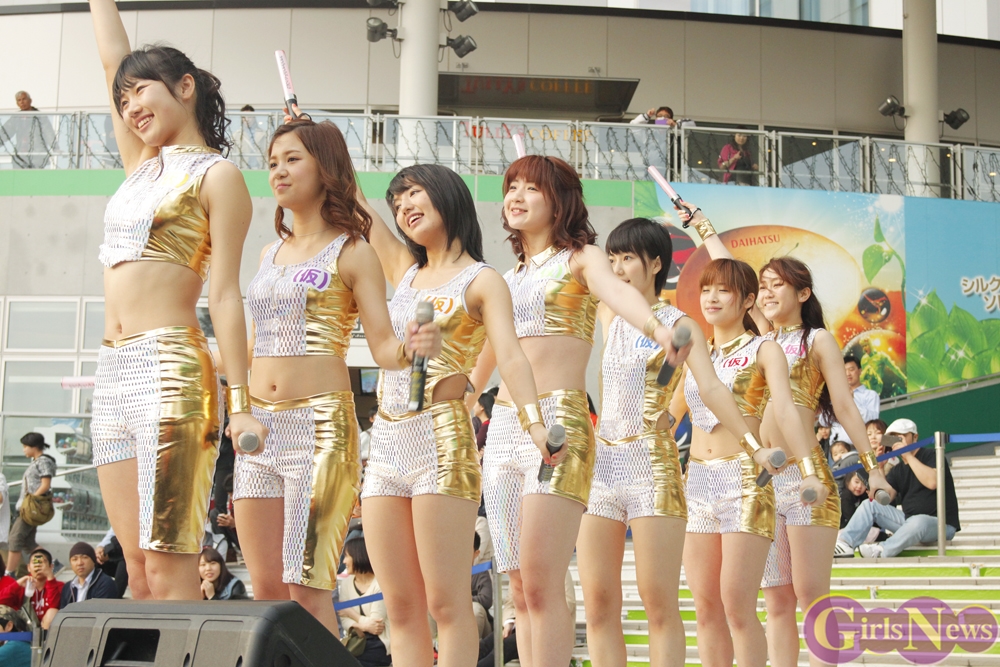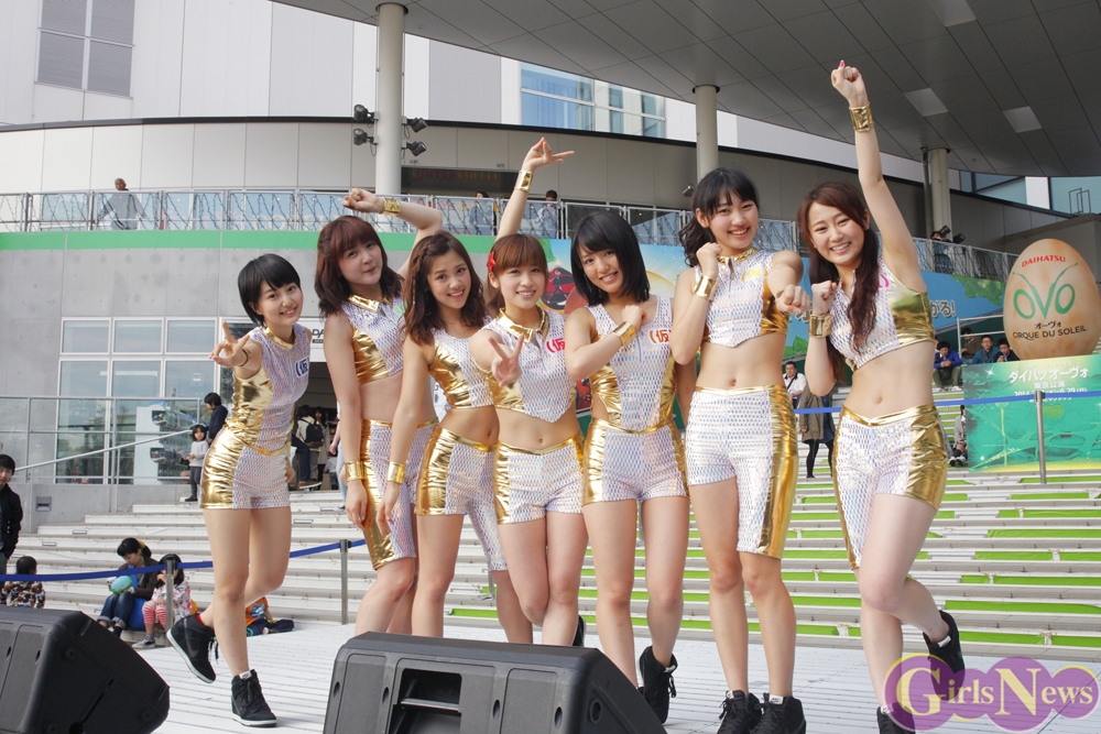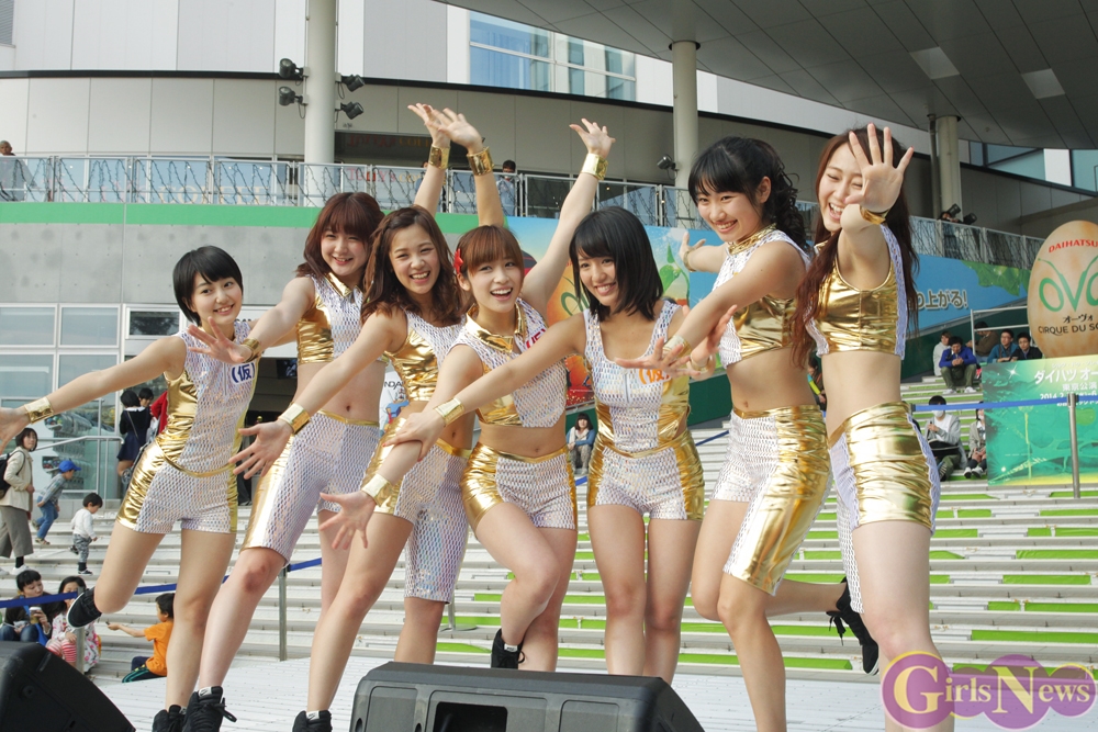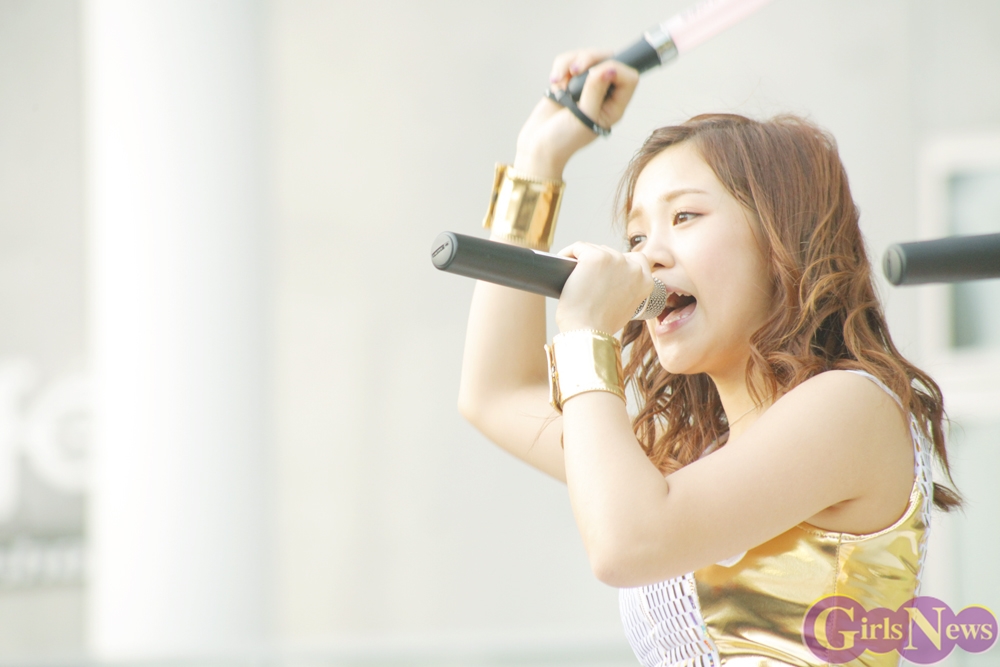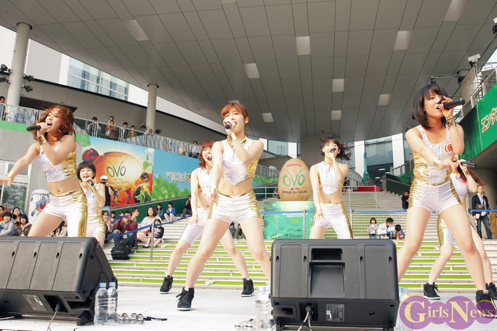 この日、春の暖かい陽気の中、新衣装に身を包んだアプガのメンバーがステージに登場すると、ファンやダイバーシティを訪れた買い物客が一斉に、アプガのステージに注目した。