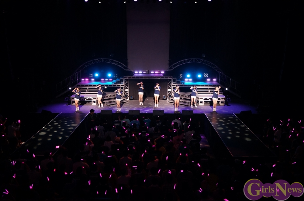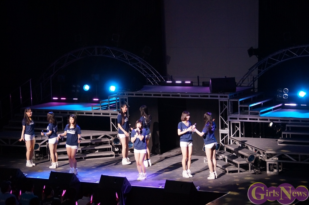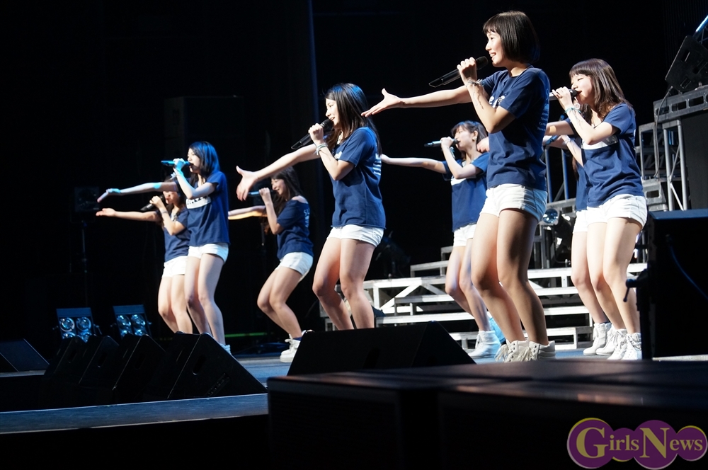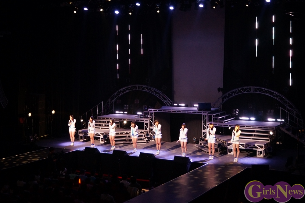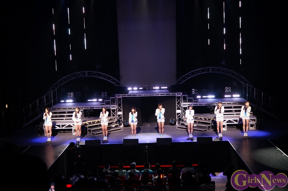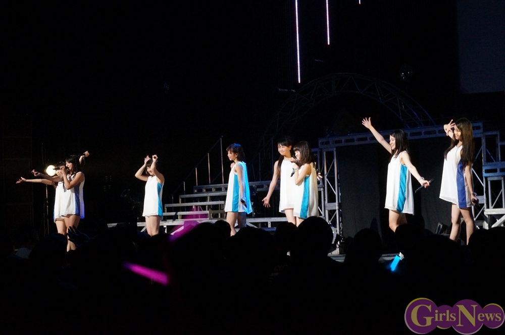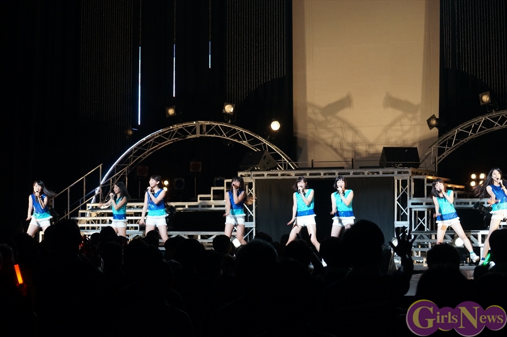 この日のライブは昼と夜の2部構成。白いワンピース姿で登場した8名のメンバーは「Live a Live!~愛があれば大丈夫~」、「目覚めよ!乙女」、「Secret Blue Memories」を披露し、続く「夢は生きている」では安定した歌唱力で魅せる。