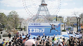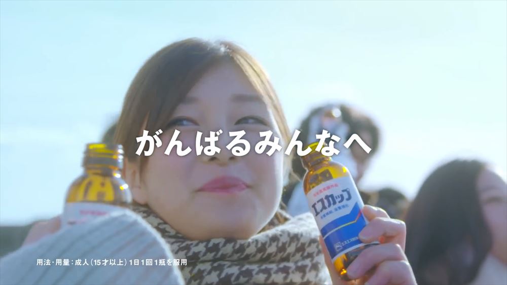 『ホップ ステップ エスカップ』キャンペーンは、よく働き、よく遊び、毎日を元気にがんばるすべての人たちを応援したいという想いを込めたキャンペーン。キャンペーンの第2弾となる今回は、一般の参加者総勢約350名と今話題の著名人達が巨大トランポリンにチャレンジし、青空の下元気いっぱいジャンプをしている。
