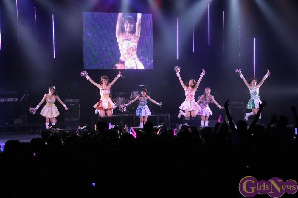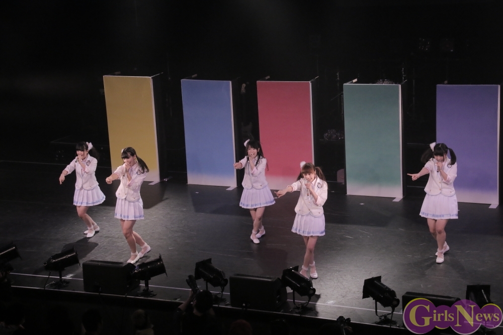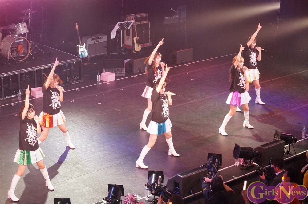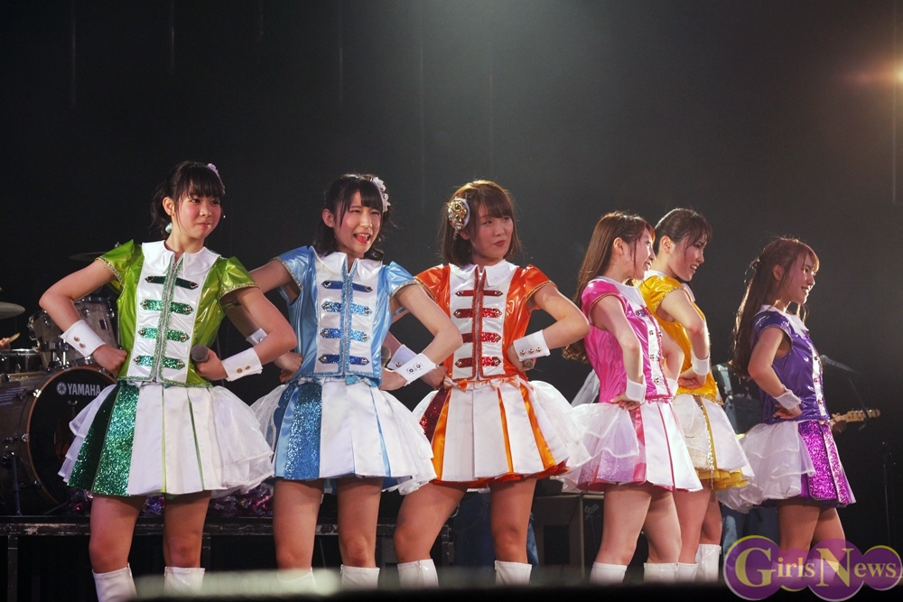 白を基調とし、各メンバーのイメージカラーを取り入れたスカートとジャケット。そしてメンバーのイメージカラーのサイリウムが会場を彩る。