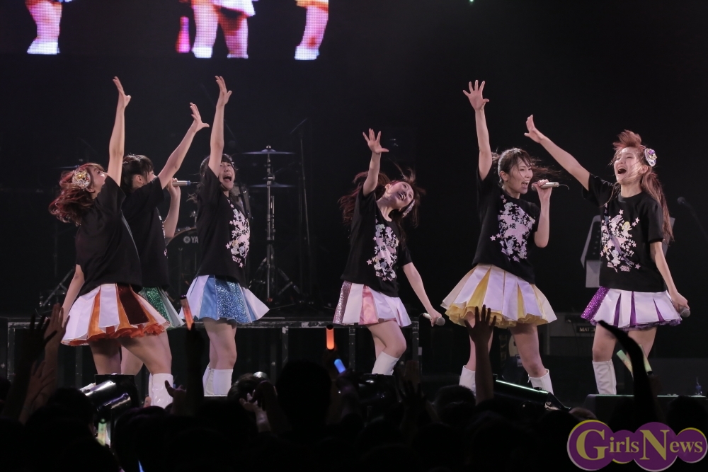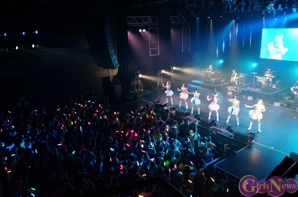 怒涛の9曲連続披露!前半5曲はバンドによる生演奏。MCは一切挟まずにノンストップで走り抜ける。メンバーもファンも疲れるどころか、曲が進むにつれてますます盛り上がりを増していく。
