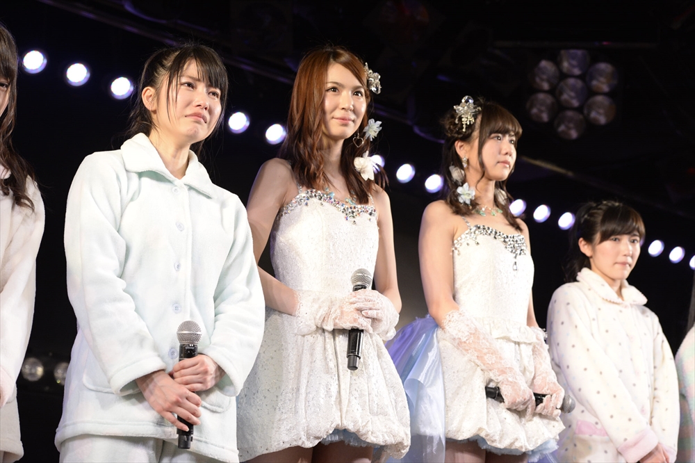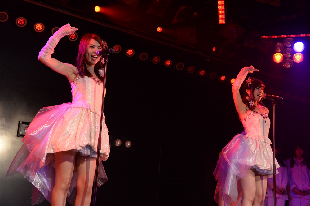 アンコールで全員がパジャマの衣裳で登場する中、佐藤すみれさんと菊地あやかさんは白いドレスで登場。