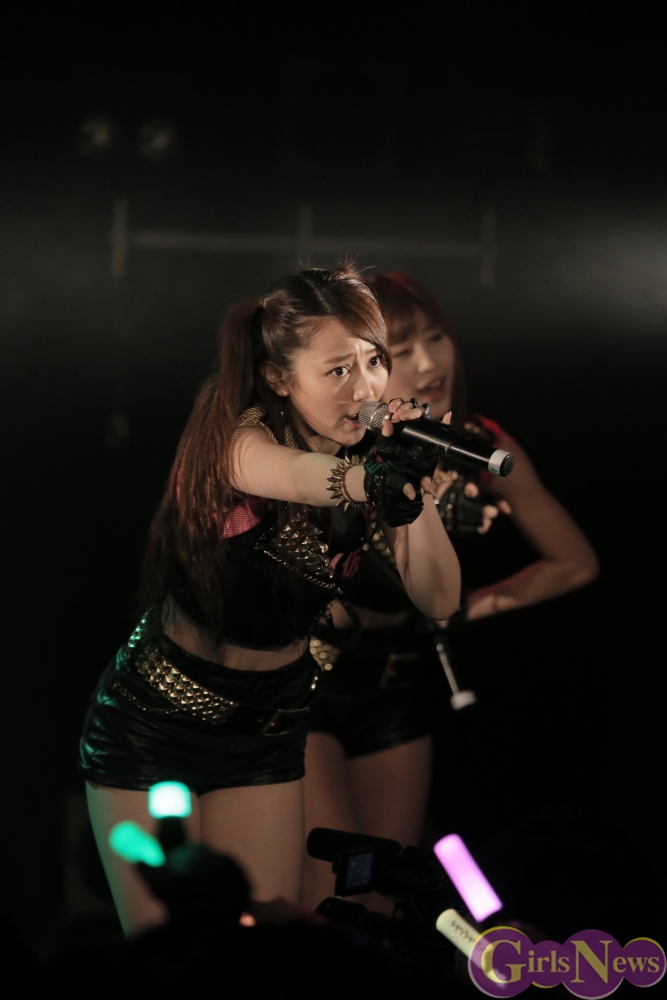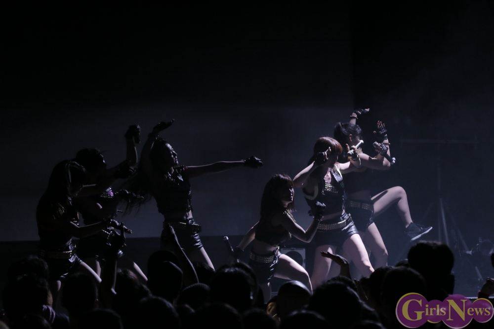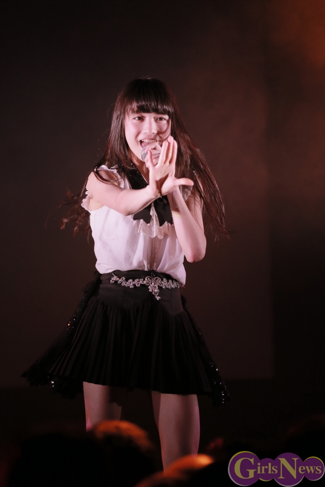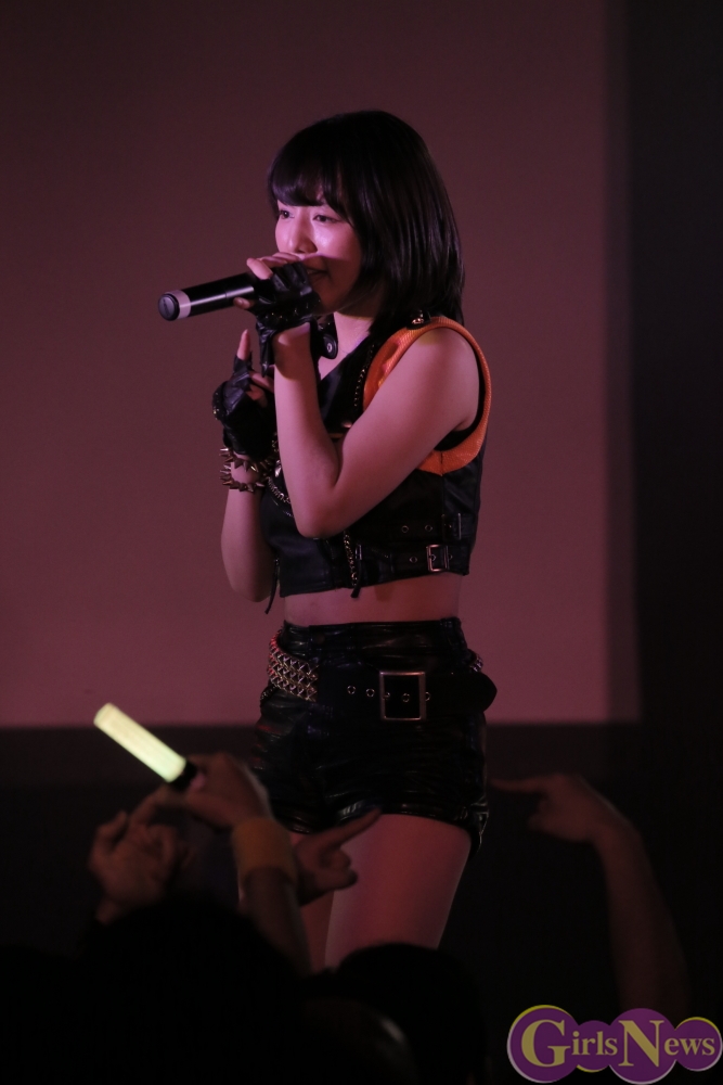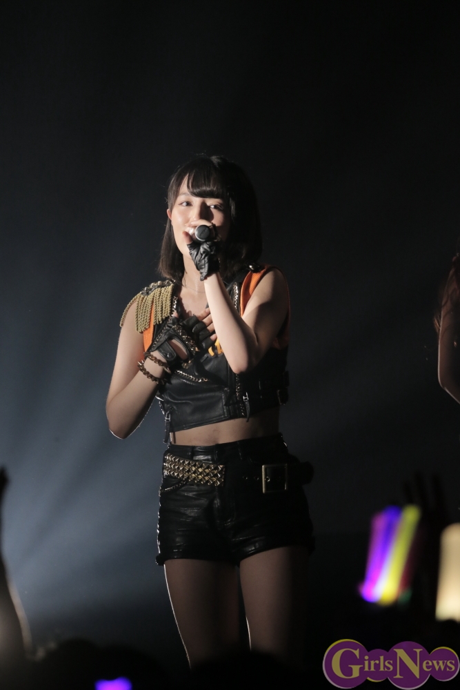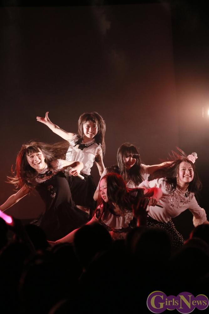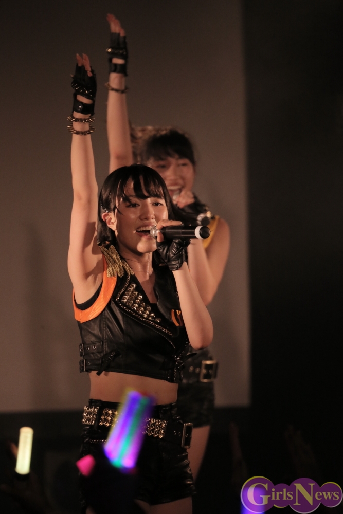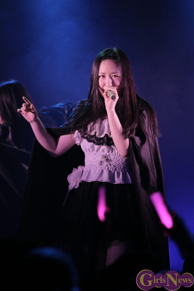 この曲は5月23日に公開される同グループ主演のホラー映画の主題歌(5月21日リリース)で、この日のステージも登場からダークなイメージではあったが、曲披露後のMCでは「マント意外と重いんですよ。」「暑いです。」と早速脱ぎ捨て、これもまた戦闘服姿のアプガとは対極の女子力の高い衣装でその後のステージを続けた。
