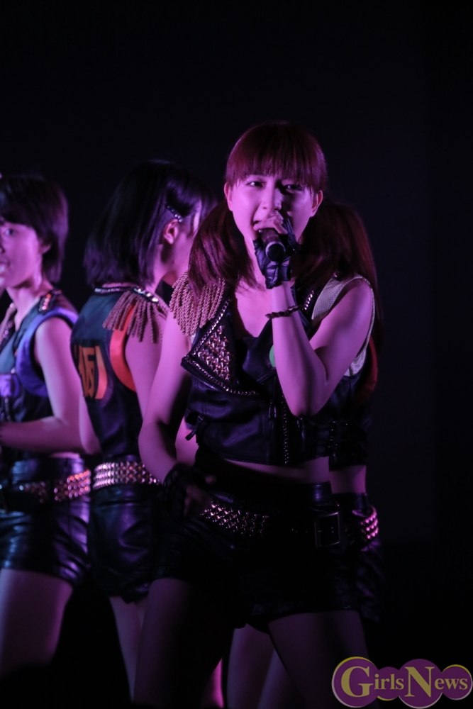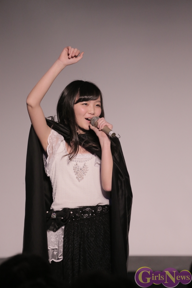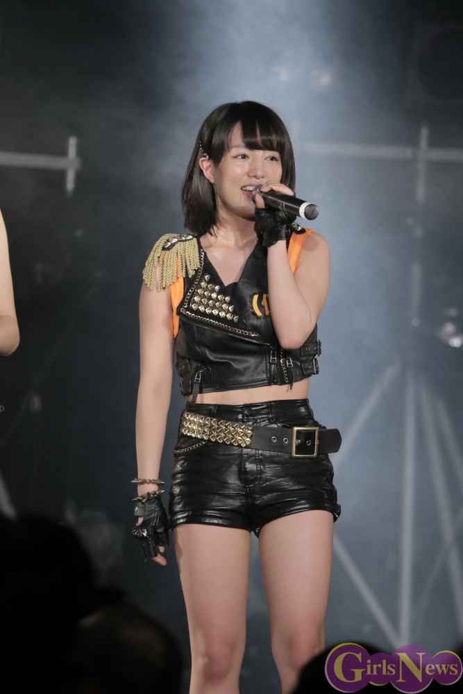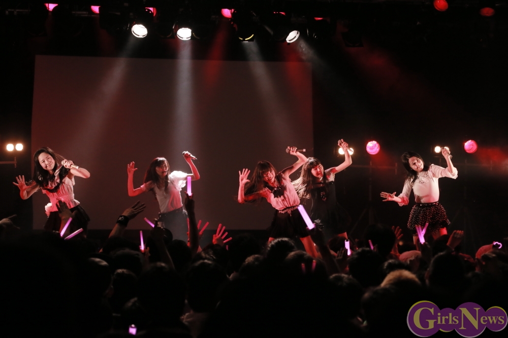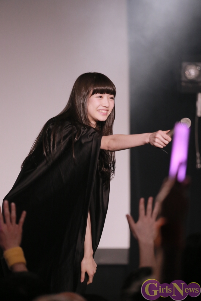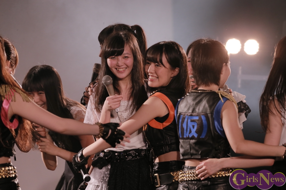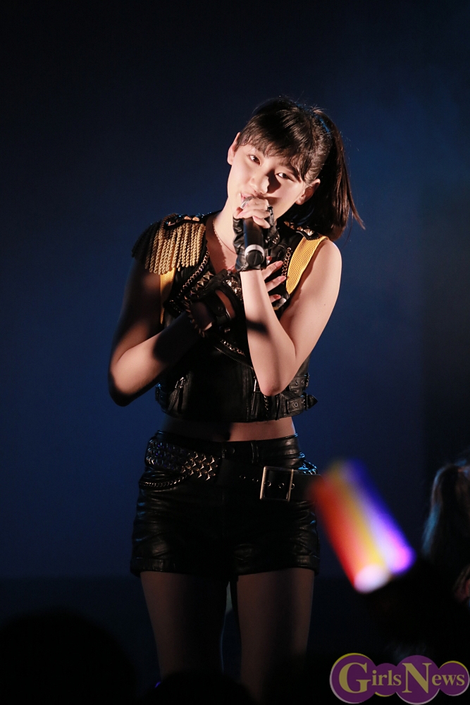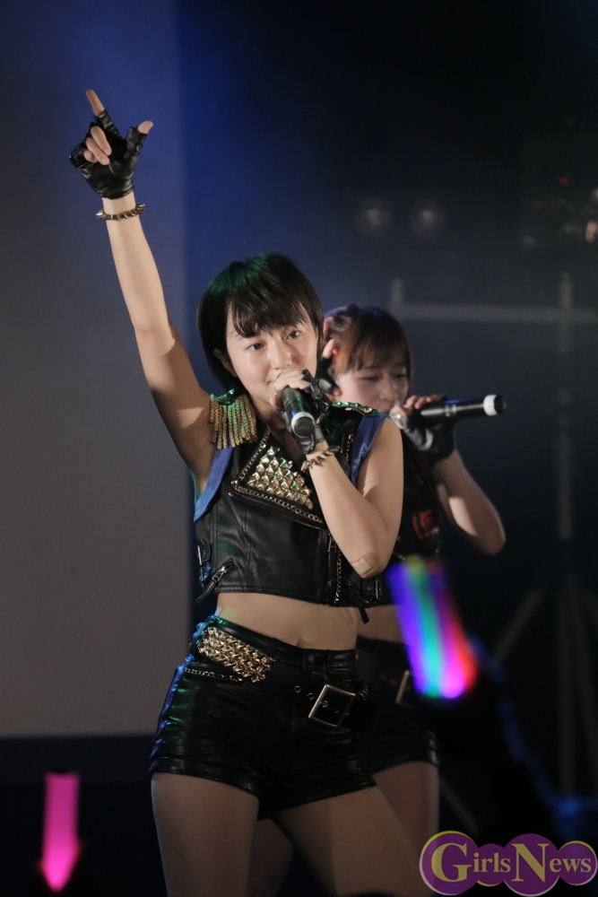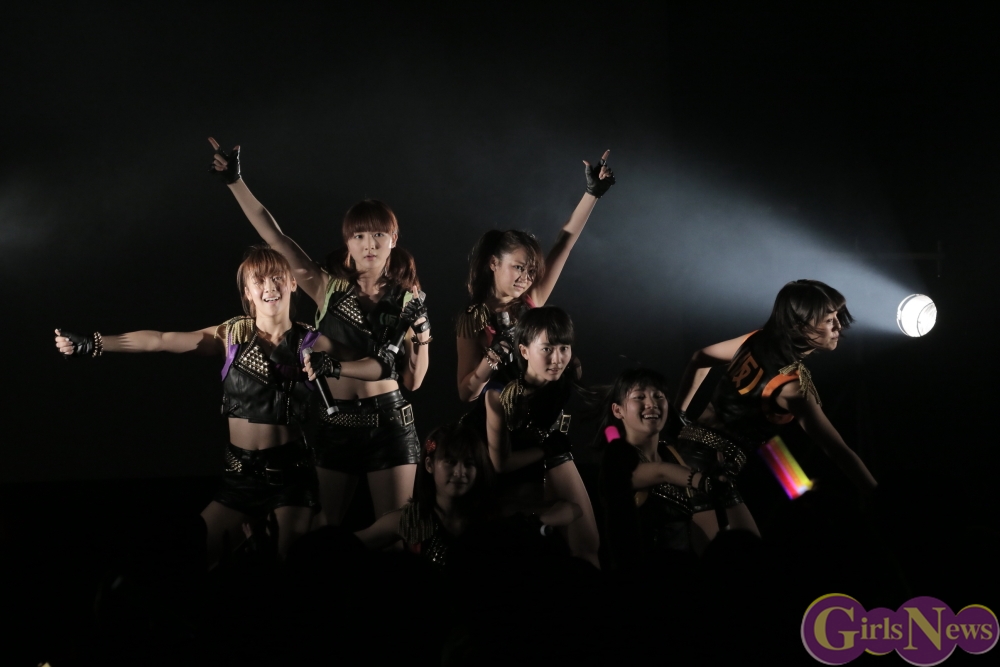 この曲は5月23日に公開される同グループ主演のホラー映画の主題歌(5月21日リリース)で、この日のステージも登場からダークなイメージではあったが、曲披露後のMCでは「マント意外と重いんですよ。」「暑いです。」と早速脱ぎ捨て、これもまた戦闘服姿のアプガとは対極の女子力の高い衣装でその後のステージを続けた。