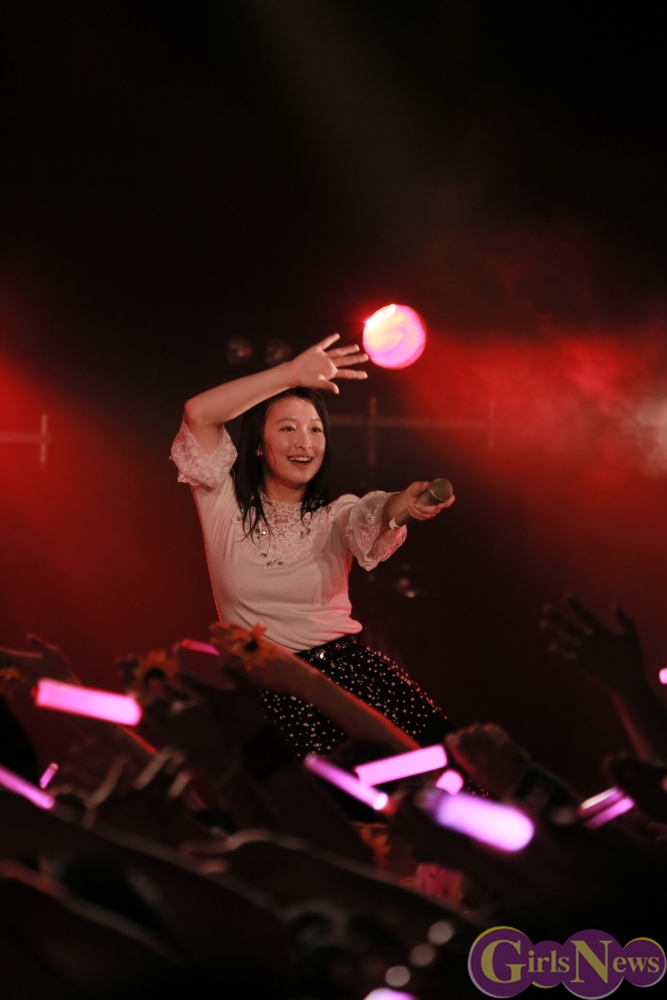続く『ゆうやけハナビ』では曲中ファン同士が両隣と手をつなぐタイミングがあるが、これをアプガファンもやってくれるかどうか、と少々心配だった小西彩乃さん。