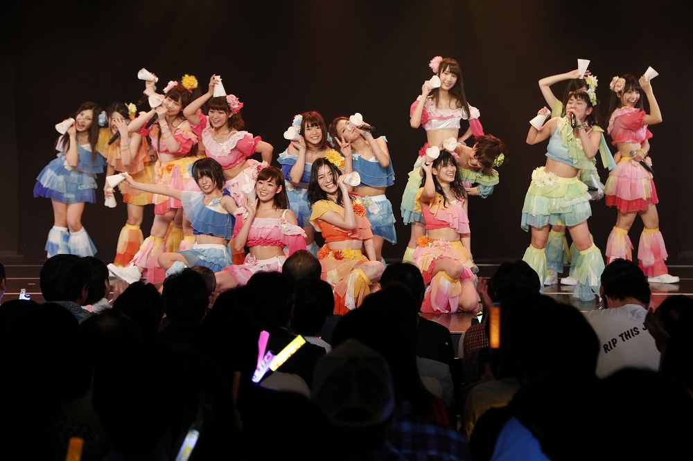 自己紹介のMCでは、AKB48から移籍となった山内鈴蘭さんが「名古屋に嫁ぐって決めてまして…」と新天地に骨を埋める覚悟を語り、この日が不安だったというNMB48チームBⅡ兼任の渡辺美優紀さんが感極まって言葉を詰まらせると、つられて副リーダーで最年長の佐藤実絵子さんももらい泣き。「みえぴーも泣いてる!」「歳だから涙腺が弱いの!」とメンバーから総ツッコミを受け、これには渡辺美優紀さんも涙を流しながらも笑顔を見せていた。