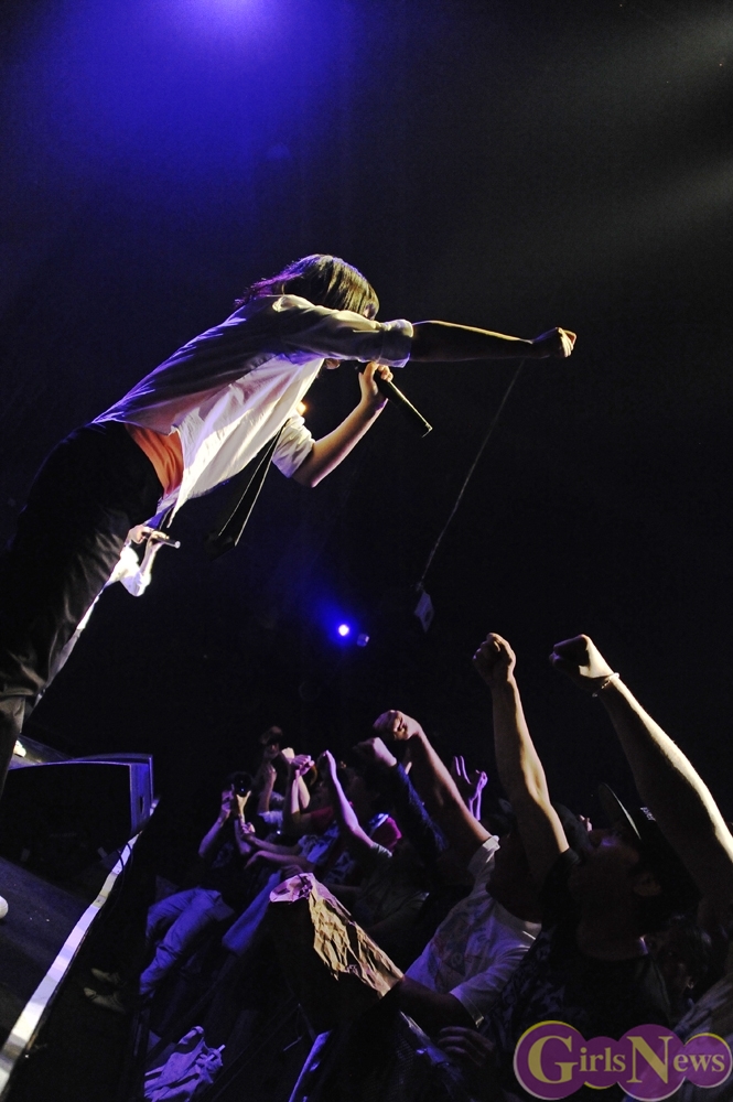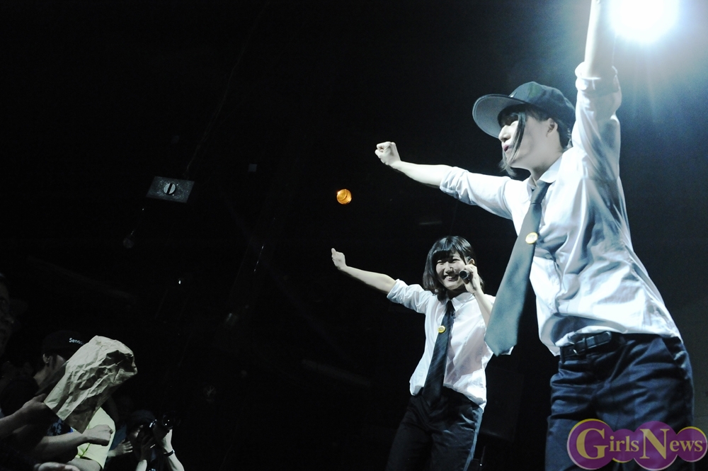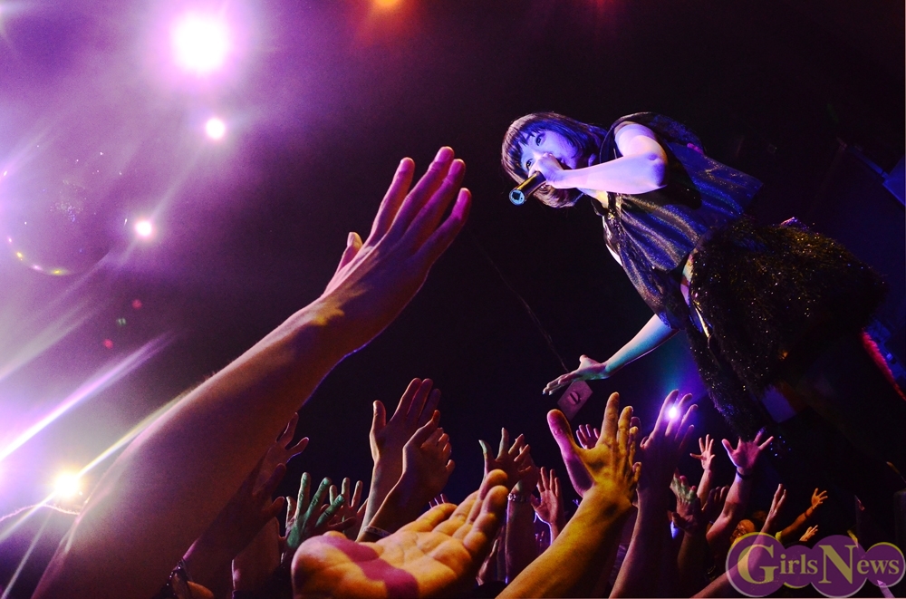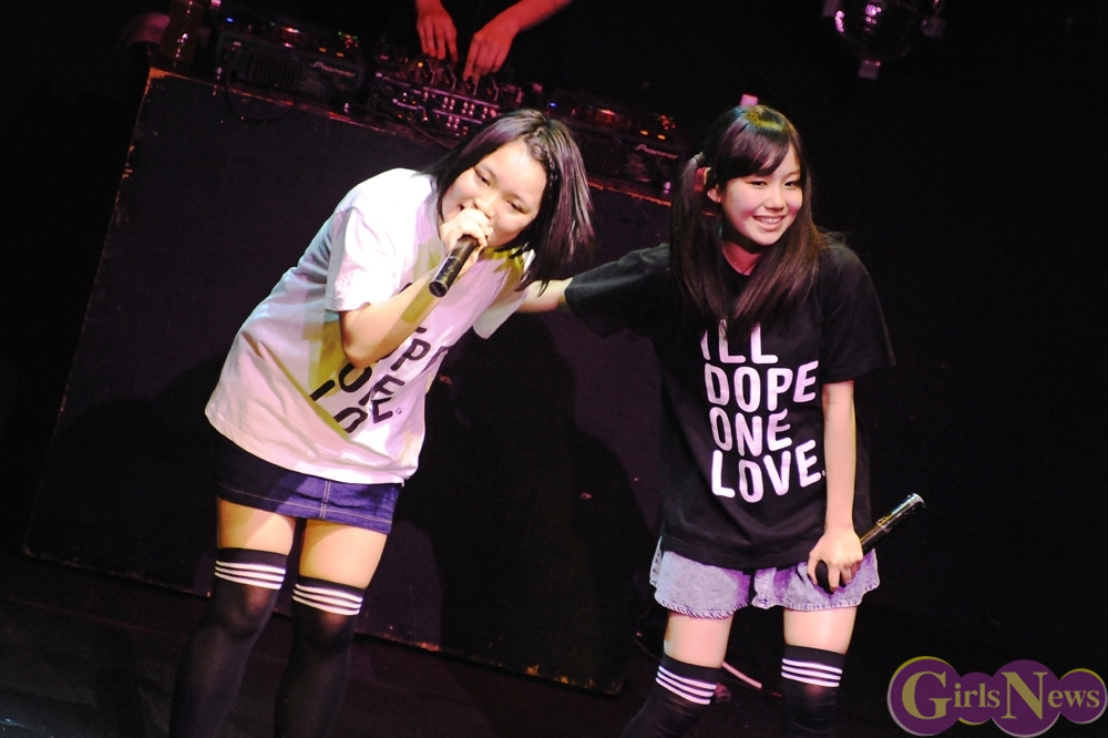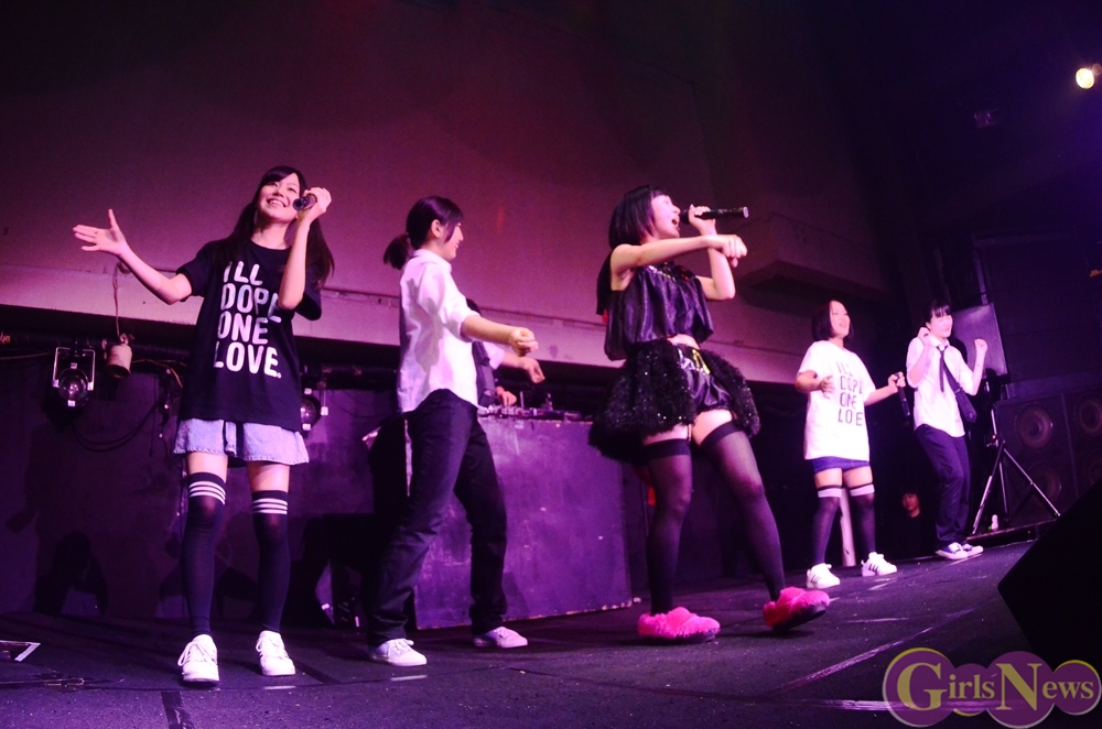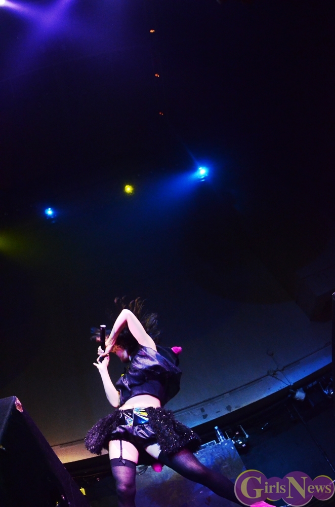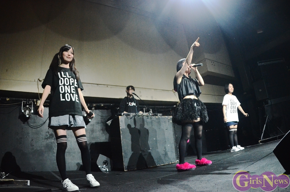 続いて登場したのはライムベリーの3人。ラップとアイドルを高いレベルでハイブリッドさせたパフォーマンスは高い人気を誇り、この春からは3人態勢で新たなスタートを切った。1曲目の「WE ARE BACK!」は、タイトル通りファンへの復活報告ソング。続けて「SUPERMCZTOKYO」「HEY!BROTHER」「世界中にアイラブユー」などライムベリー屈指の人気曲を次々と繰り出し、再始動に付きまとった雑音をパフォーマンスで一蹴した。待ちわびたファンもこの魂のセットリストに興奮を爆発させる。ライムベリーのホームともいえるライブハウスは、熱気が渦巻きジャンプで大きく揺れた。ライブ後半では、2日前に行われた復活ライブで披露された新曲「IN THE HOUSE」も披露。こちらはライムベリーとしては新しい曲調に仕上がった一曲で、ライムベリー第二章の門出にふさわしい1曲だ。そして、「まず太鼓」「MAGICPARTY」と再び超アッパーチューンを続けてライブは終了。完全復活を強く印象付ける45分間だった。