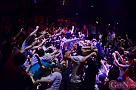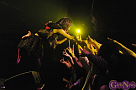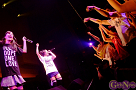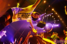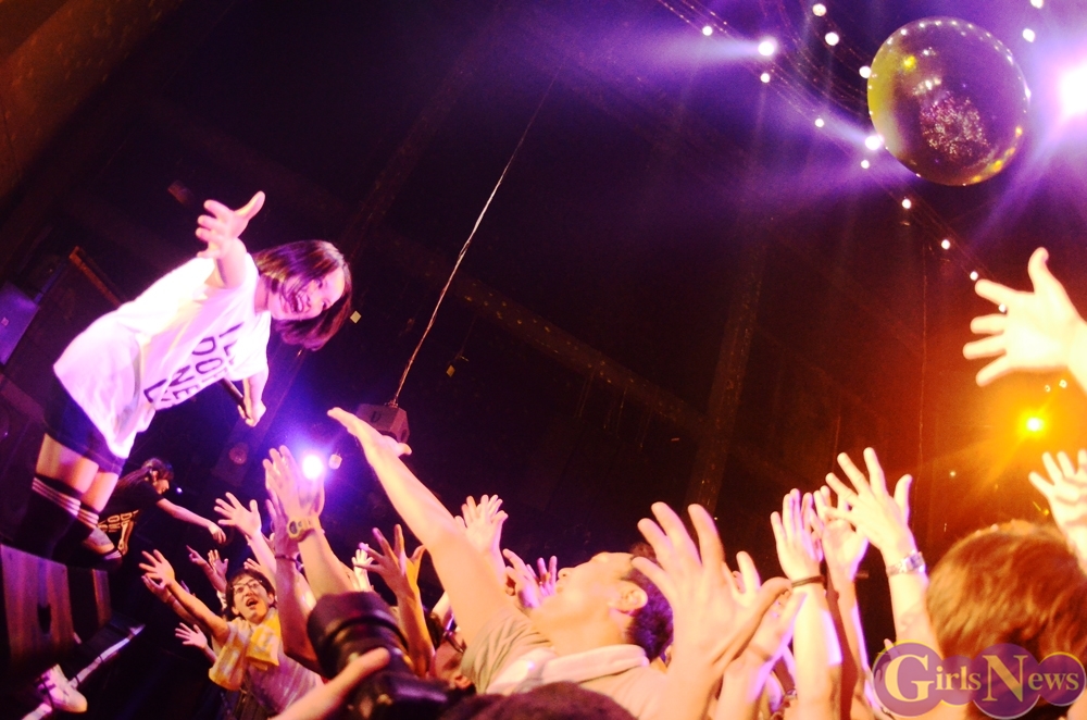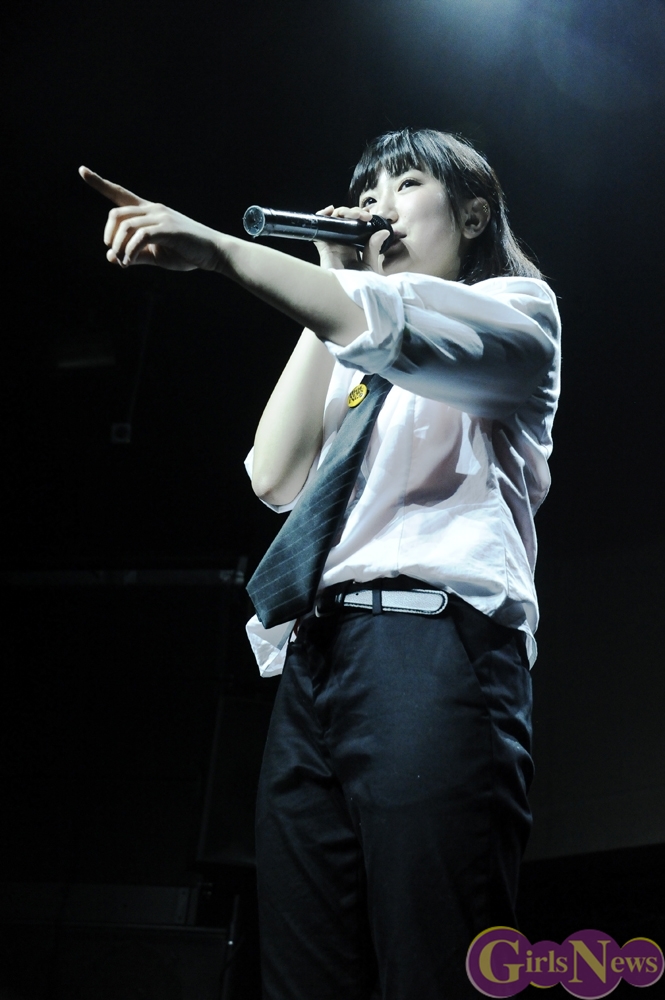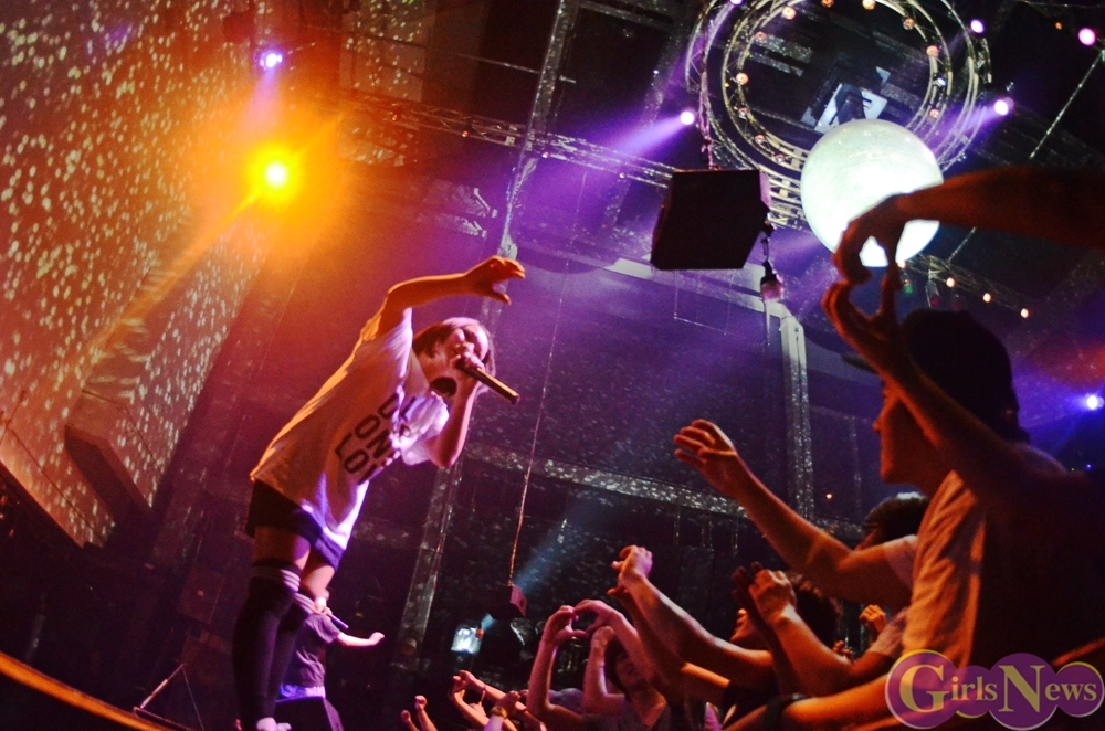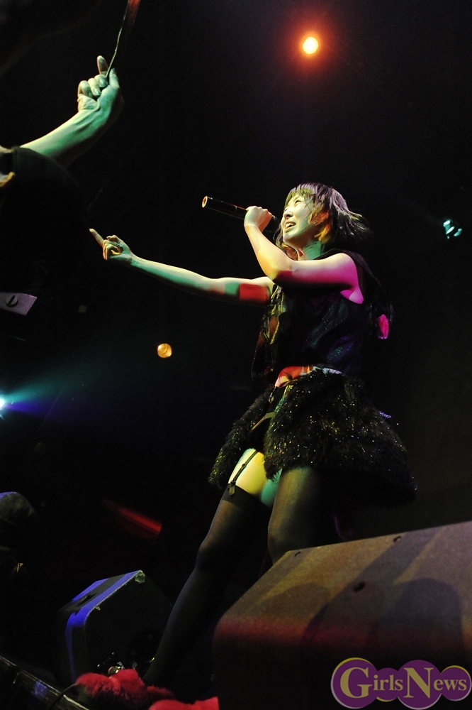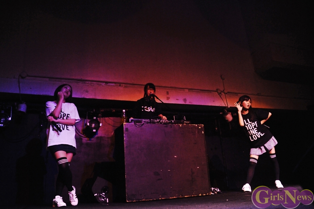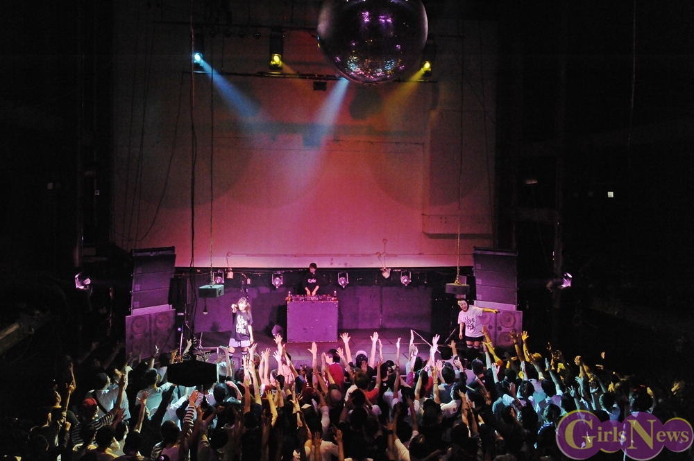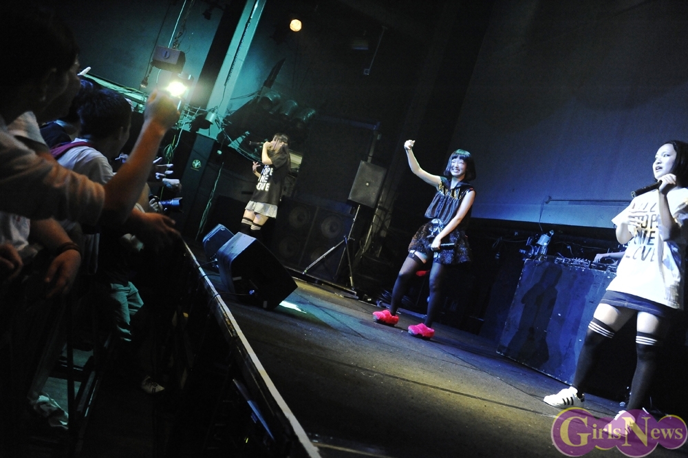 続いて登場したのはライムベリーの3人。ラップとアイドルを高いレベルでハイブリッドさせたパフォーマンスは高い人気を誇り、この春からは3人態勢で新たなスタートを切った。1曲目の「WE ARE BACK!」は、タイトル通りファンへの復活報告ソング。続けて「SUPERMCZTOKYO」「HEY!BROTHER」「世界中にアイラブユー」などライムベリー屈指の人気曲を次々と繰り出し、再始動に付きまとった雑音をパフォーマンスで一蹴した。待ちわびたファンもこの魂のセットリストに興奮を爆発させる。ライムベリーのホームともいえるライブハウスは、熱気が渦巻きジャンプで大きく揺れた。ライブ後半では、2日前に行われた復活ライブで披露された新曲「IN THE HOUSE」も披露。こちらはライムベリーとしては新しい曲調に仕上がった一曲で、ライムベリー第二章の門出にふさわしい1曲だ。そして、「まず太鼓」「MAGICPARTY」と再び超アッパーチューンを続けてライブは終了。完全復活を強く印象付ける45分間だった。