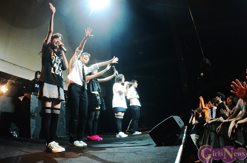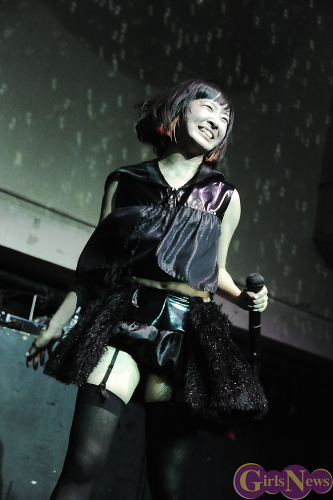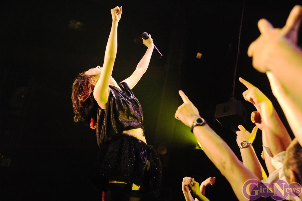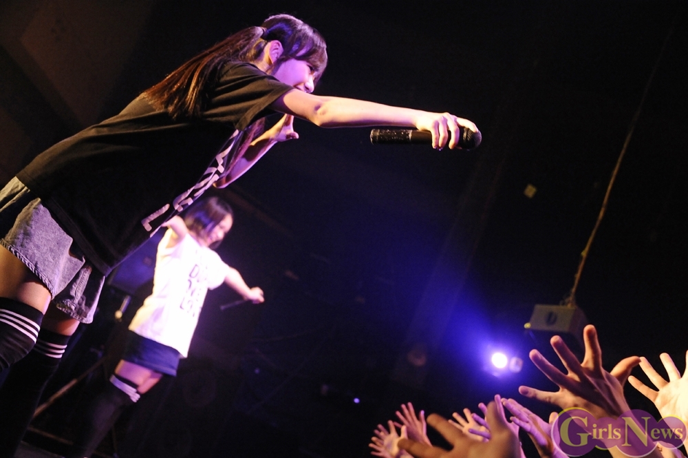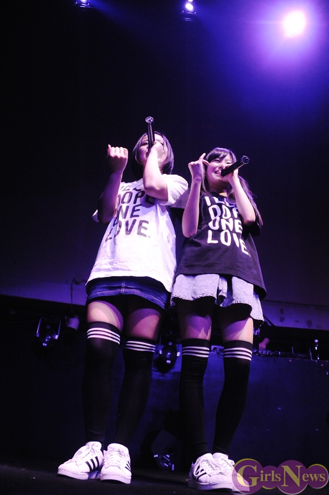 トップバッターを務めたのは福井発のご当地ユニット・せのしすたぁ。通常はみかさん・まおさん・ゆーたんさんの3人で活動しているが、この日はゆーたんさんを欠き二人でのパフォーマンスとなった。彼女たちの魅力は、枠にとらわれないライブを見せてくれるところ。紙袋を被っての登場は序の口、「恋キラキラ」ではファンからのコールやミックスに笑顔で応え、「ワタシアイドル」ではフロアに降りファンに”土下座”をするという異色の演出を見せた。しかし、楽曲やダンスはアイドルの王道寄り、MCは方言を交えて行うなど、ご当地アイドルとしてのツボはしっかりと押さえている。アンコールではまおさんが「『ワタシアイドル』のときにフロアに降りてしまい、スタッフさんに怒られました。アンコールはおとなしいパフォーマンスにします。では聞いてください『ワタシアイドル』」としっかりフリを効かせて再びフロアへ。東京のファンに、顔と名前をしっかりと売り込んだライブとなった。
