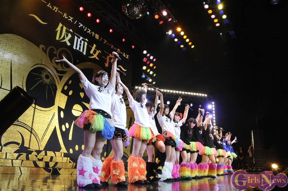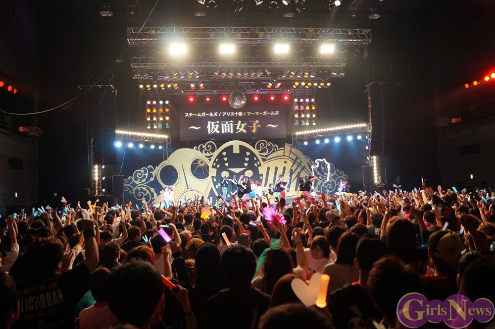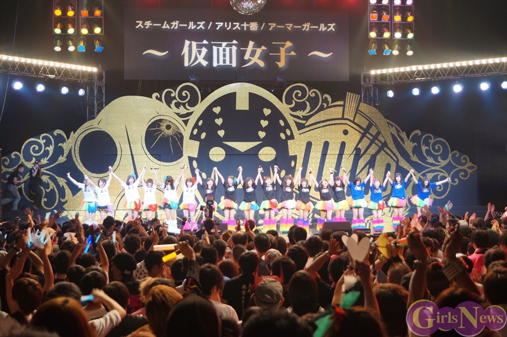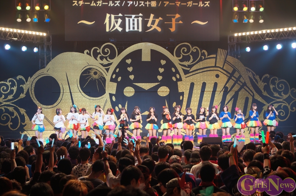 仮面女子はアリスプロジェクトが誇る、仮面を付けたアイドルユニット アリス十番・スチームガールズ・アーマーガールズの3組が合体したアイドルユニットだ。