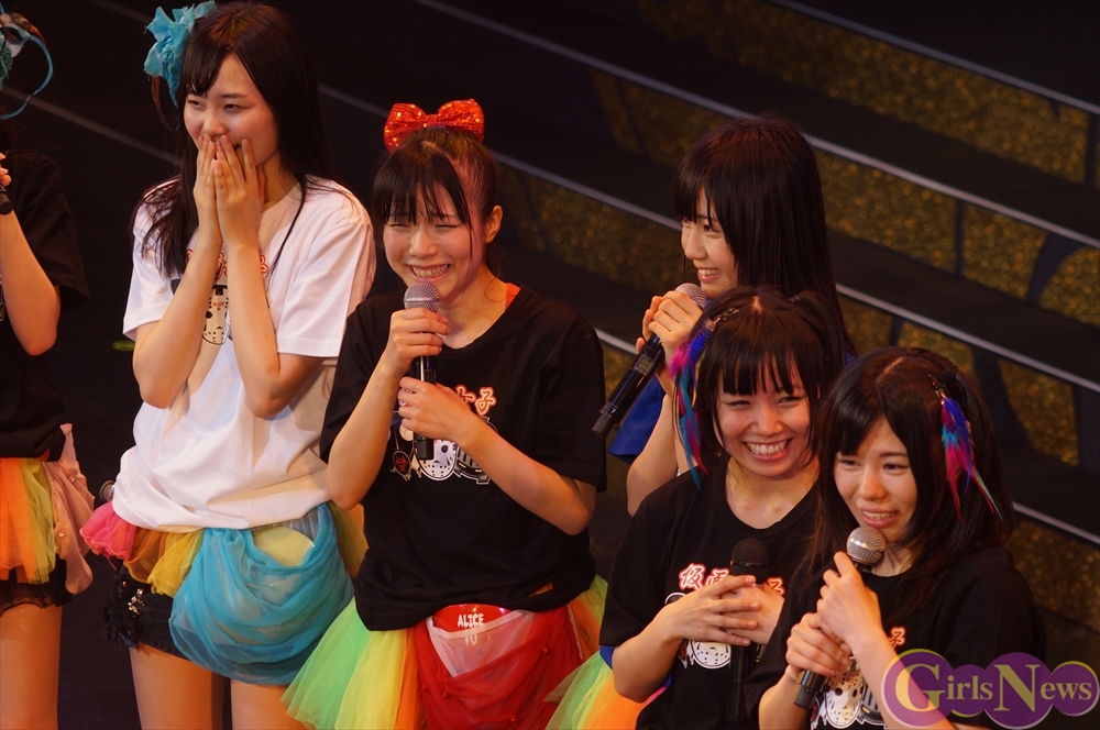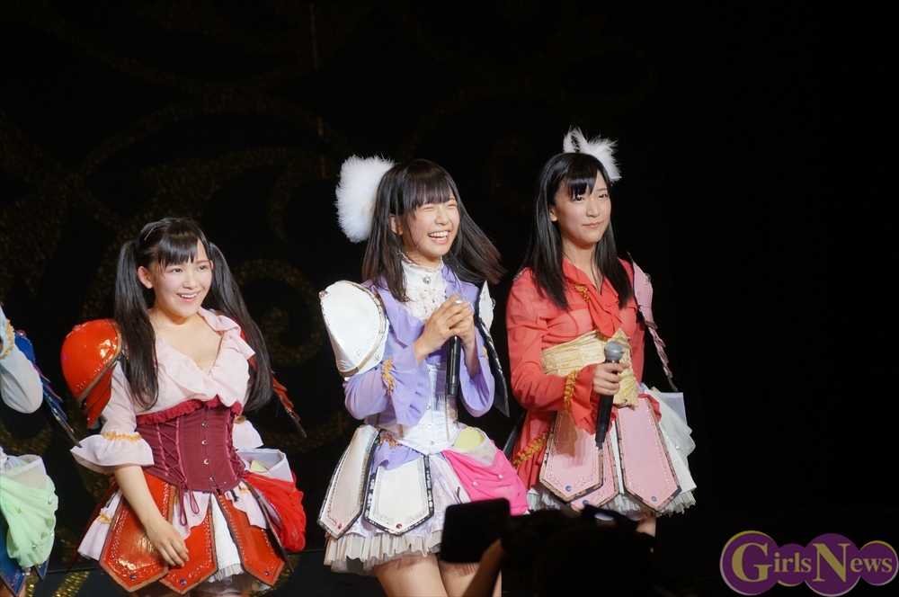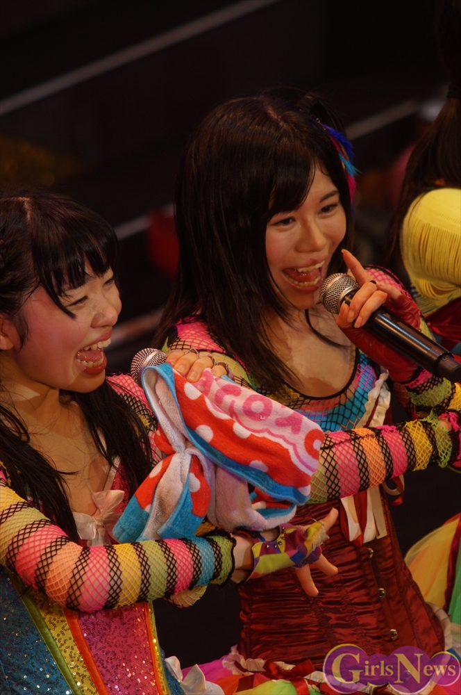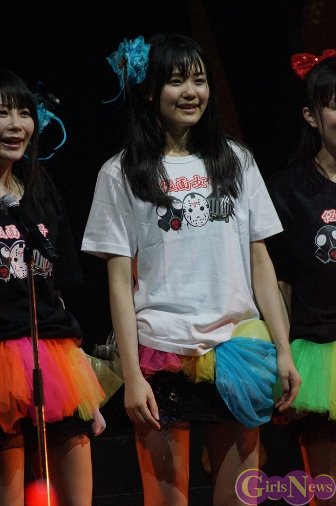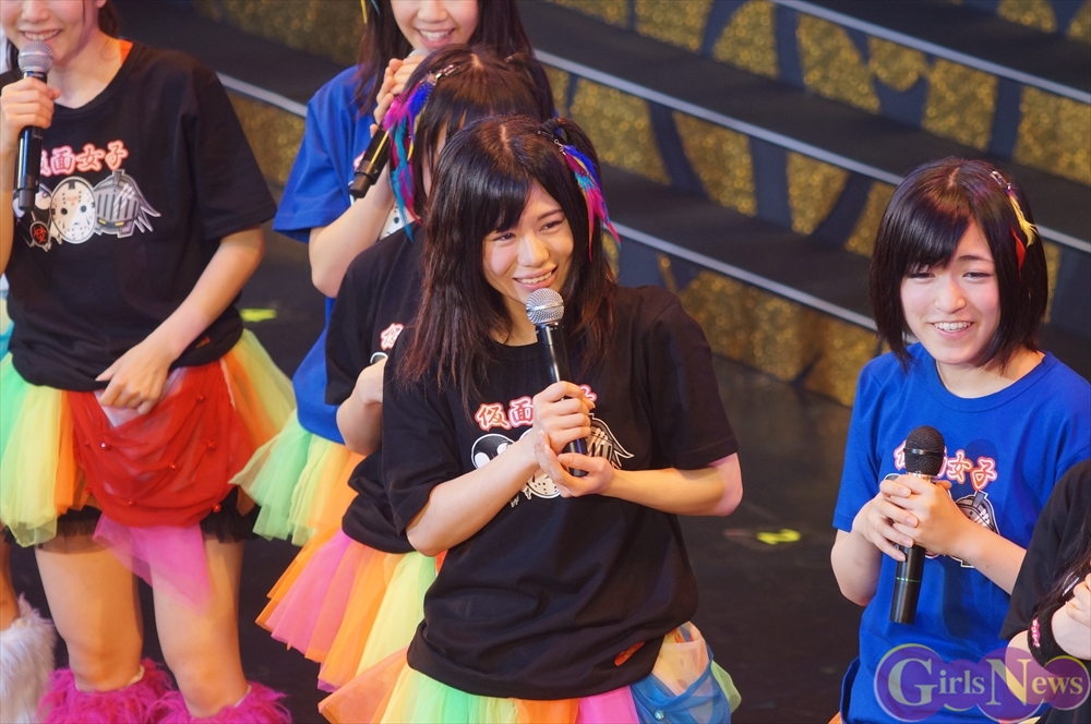 最後に仮面女子のリーダー 桜のどかさんは「私たち仮面女子、結成されてから大きなステージに立たせていただくZepp Tokyoというワンマンライブの目標に向かって、半年以上前から準備をして、この1日にすべてを掛けて命を燃やしてきました。このZepp Tokyoワンマンというステージは、私たちにとってはとても大きな挑戦であって、ここの箱を決めたのもメンバーで決めたんですけど、正直私たちには手の届かないような、こんな地下アイドルにはまだまだ夢の世界だなって思ってました。実際やっぱりチケットを売るのもすごく厳しくて、全然1000枚に届かない日々が続いて、この2700人というキャパシティは、私たちには届かない世界なのかなって、すごくつらい思いをしました。メンバー通しでも、いろんないろんな話し合いを続けていって、どうしたらみんなに楽しんでもらえる日になるんだろうと、そればっかりを考えて来ました。時には喧嘩をすることもあったり、意見が全く合わなかったり、意識の違いからつらい思いをぶつけ合ったり、焦りから逃げ出したくなったりすることもありました。でも、そんな時、やっぱりこのステージに立たせてくださったのは、たくさんのスタッフさんやファンの皆さんの応援があったからです。そしてメンバー通しでもいっぱいいっぱい喧嘩をしながらも、このZepp Tokyoワンマンの夢に向かって一つになりました。一つになってからは、もう本当にこのワンマンを成功させることしか考えられなくて、この1日が私たちの生きがいになりました。今日、皆さんはどんな思いで、ここに来てくれたのかは分かりませんけど、ここのステージから見えている1人1人の顔、しっかり見えています。本当に最高のステージに立てて、大好きな仲間と温かいスタッフさん、そしてファンのみんなに囲まれて、今日こうして無事にステージを終えることができて本当に本当に幸せです。私たち仮面女子はまだまだ地下アイドルですし、まだ日の届くところに立つのは早いかもしれません。でも、メンバー全員絶対にこの地下から光を浴びてやるんだというそんな強い思いで、これからもどんなに周りが厳しくても、どんな風が向かってこようとも、メンバー全員でこれから前に前に突き進んでいきたいと思います。次のZepp Tokyoワンマンライブが決まったということで、その時にはもう同じような後ろ向きな思いをした日々は絶対に来ないと思います。みんなで前だけを向いて、絶対にこの会場を2700人、ソールドアウトしてみせます! これからも仮面女子の応援よろしくお願いします。」と語り締めくくった。