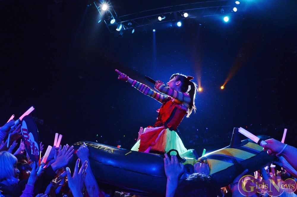 仮面女子が登場すると、昨年日本武道館で披露した「妄想日記」を披露。続けて「Wohhhh!!!!☆」と「ハル・メギド」が披露されるとファンは熱狂の嵐。