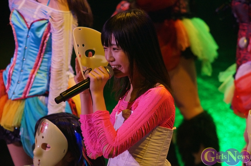 この日、仮面女子の新曲を初披露することになり、桜のどかさんは「めちゃくちゃ格好良いんです。この曲はまさしく仮面女子のために作っていただいた大事な大事な曲になっています。私たち仮面女子は世間の人から笑われたり、蔑まれたり、そんな中、こんなところでくたばってたまるかという、地下アイドル魂で今まで活動して来て、やっとちょっと日に近づいて来たかなというところなんですけど、そんな思いをこの新曲にすごくすごく心を込めていただいてるので、私たちの地下アイドルの叫びを聞いてください!」と語り、仮面女子の新曲「アリスインアンダーグラウンド」を披露。