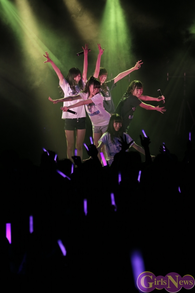 もちろん、ライブはこれで終わらない。暗転した会場で飛び出たのは、誕生日を先日迎えた山田朱莉さんを祝う「あかりん」コール。ファンからの愛がつまったアンコールを受けて、Tシャツに着替えたメンバーが目にしたのは、山田朱莉さんのイメージカラーである紫色のサイリウムで包まれた会場だった。アンコール1曲目の「ひまわりハート」の曲中も絶え間なく送られるあかりんコール。これには山田朱莉さんの涙腺も崩壊、感激の涙を流した。