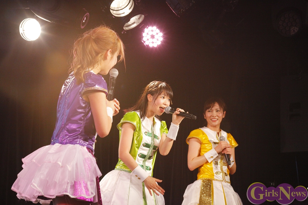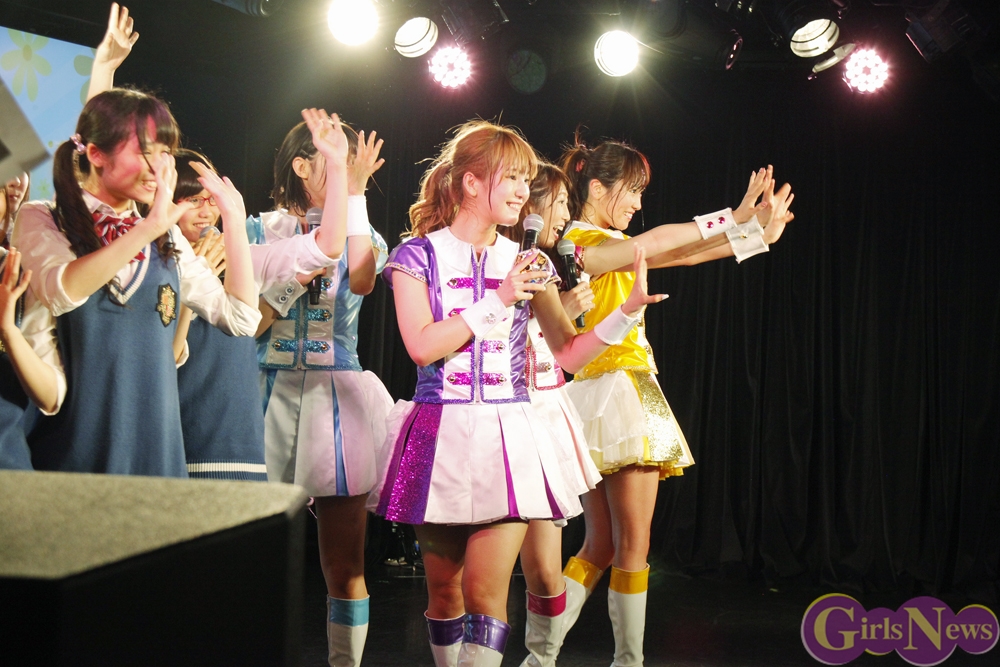 満員のファンの熱気を前に、ブラウスの袖を捲り気合の半そで姿で登場した7人。「☆恋してYES~これが私のアイドル道~」ではしっかりと名前をアピールし、「YOU&IDOL」や「絶対!Love Magic」などの人気曲では初見のファンも巻き込んで大きな盛り上がりを見せた。