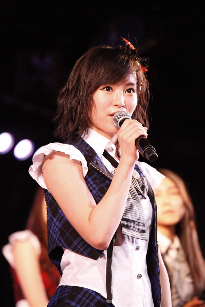 皆様今日はお集り頂きありがとうございます。今日はとにかくすごく緊張していたのですが、メンバーみんなもいい空気づくりをしてくれていたので心配はなかったのですが、私自身で不安なところもありましたが、皆さんが、声援だけでなくまなざしまで温かかったのが、胸に響いてすごくうれしかったです。これから公演の回数を重ねて行って、NMB48劇場だけでなく、このAKB劇場も私のホームとして大切にしていきたいと思います。みなさんこれからも宜しくお願いします。