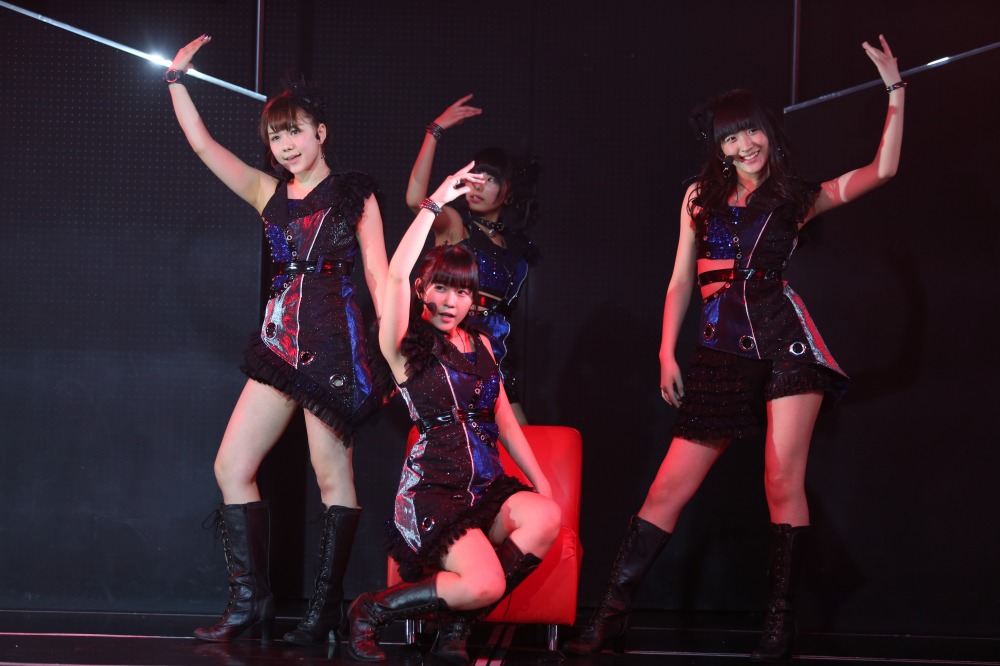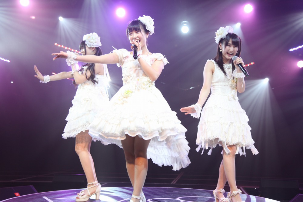 オープニングアクトは、日替わりで研究生1名が”前座ガール”として登場する「ロマンスかくれんぼ」。初日は荒巻美咲さんが、初めてのソロステージに緊張しながらも堂々とパフォーマンス。オープニングアクト終了後、再び幕が開き1曲目「勇気のハンマー」からスタート!木本花音さんはSKE48仕込みのダンススキルで観客を圧倒した。