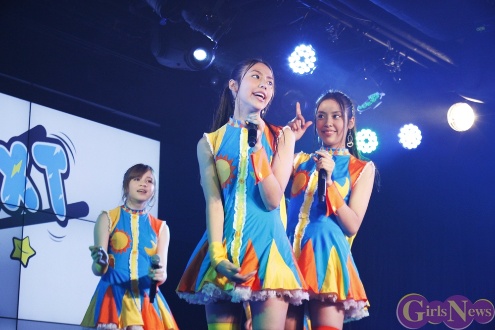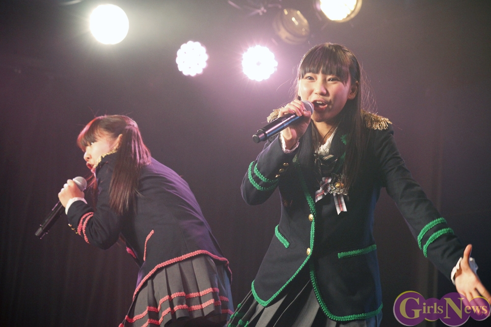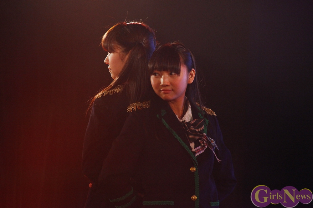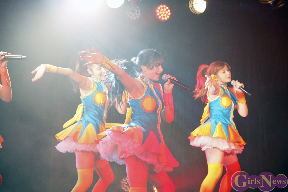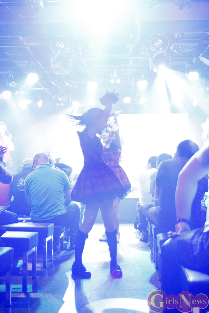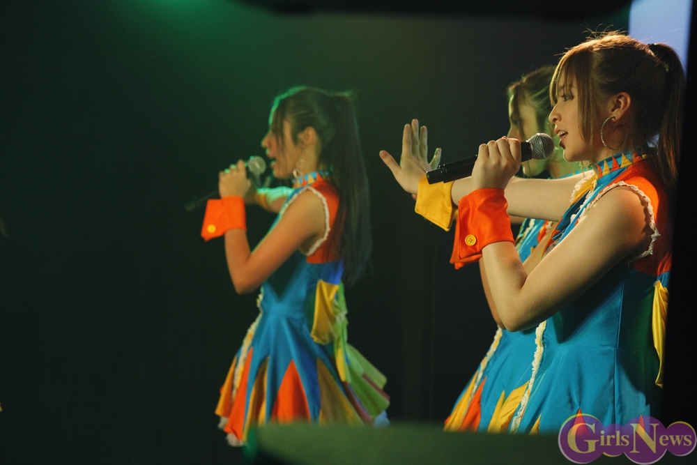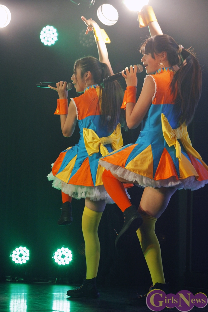 ステージはミュージカルのようなスタイル。歌と芝居を意識させ、発声も本格的なミュージカルのそれで聴きなれたアイドルソングの中では異色の存在感を放っている。2曲が終わるとちゃおちゃおTV(雑誌ちゃお付録DVD)内OVA「12歳」主題歌『恋の12歳』を、それに合わせたムービーをはさみ披露。続く『パンパカパン』の前にもムービーがあり、MCの無い舞台作りはやはり一つのミュージカルを見ているような気分にさせてくれる。ラストの映像には次回作予告として巫女風の格好をした二人の姿が。一つのライブを演目と捉え、次々に次回作が作られるとするとこれは一回一回が貴重な物となりそうだ。