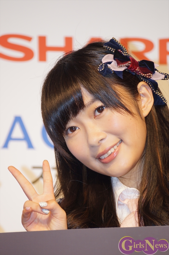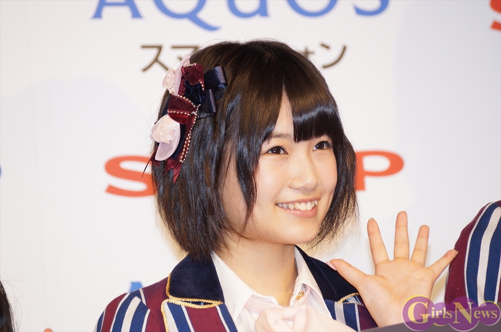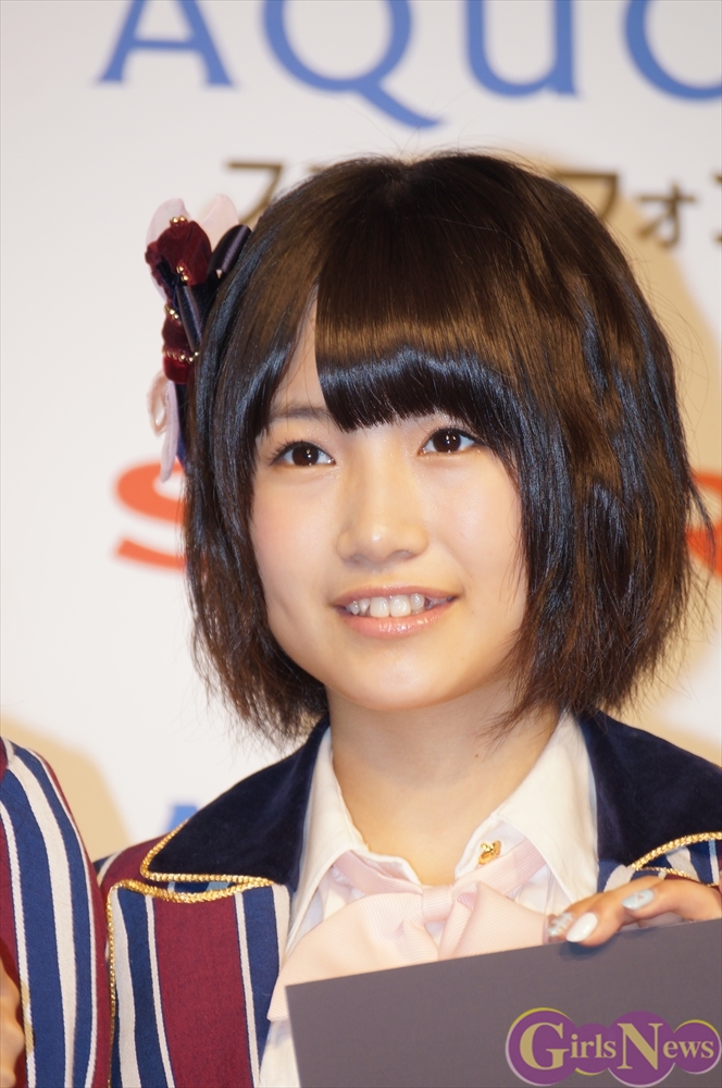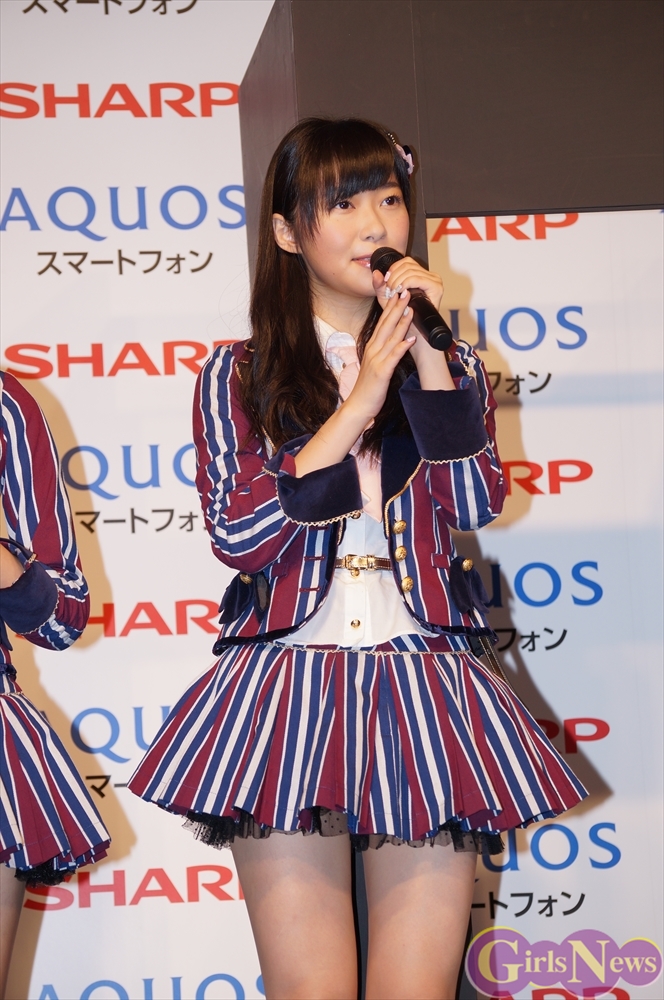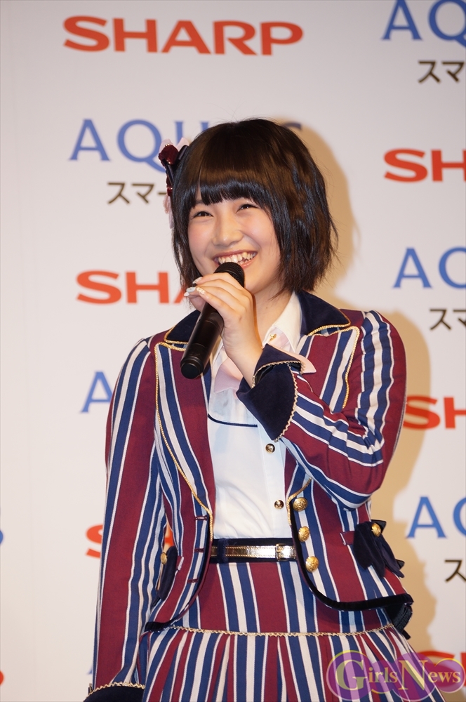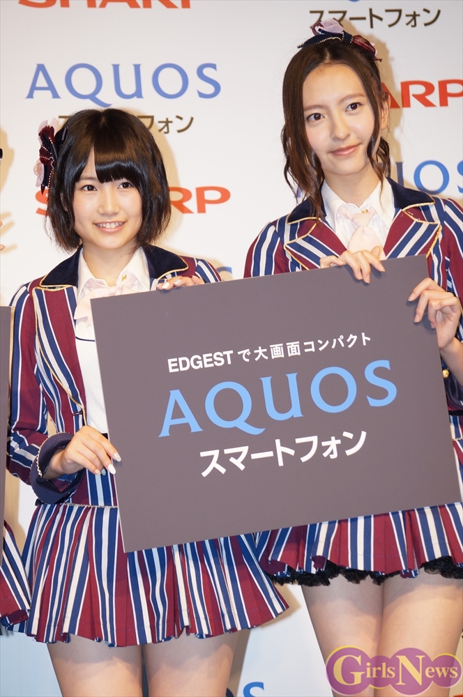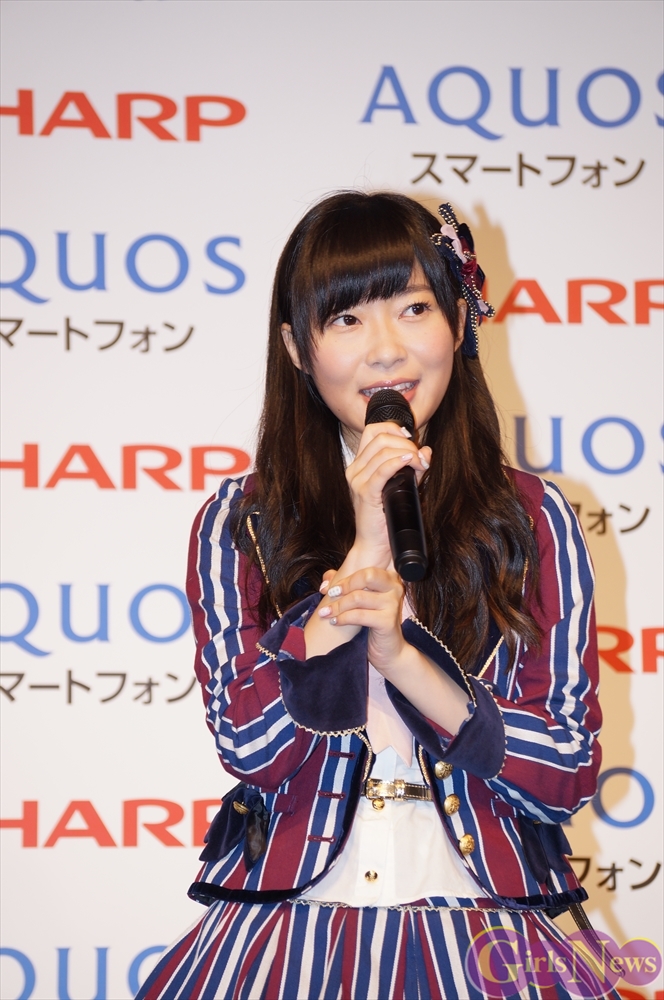 5月14日、SHARP AQUOS スマートフォン キャンペーン発表会が都内で行われ、アイドルグループ HKT48の穴井千尋・指原莉乃・朝長美桜・森保まどかの4人が登場した。