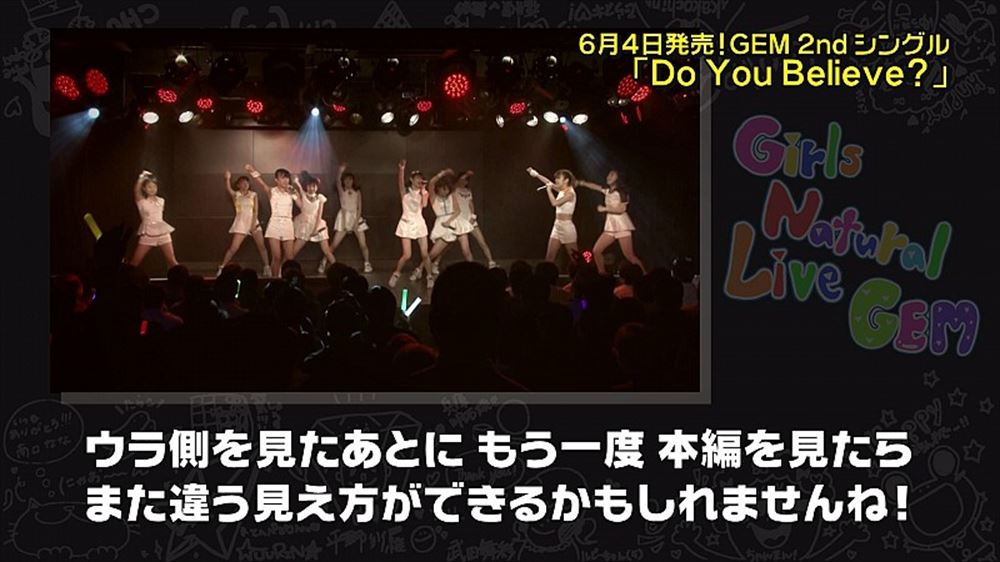 そして、同じく公開された「どっちのGEMでSHOW!~NATURAL LIVEのウラ側~」では、当日のライブではカットされた部分も含めこのVTRコーナーの模様をお届け。両チームがGEMの今について赤裸々に語るトークコーナーもしっかりと収録されている。