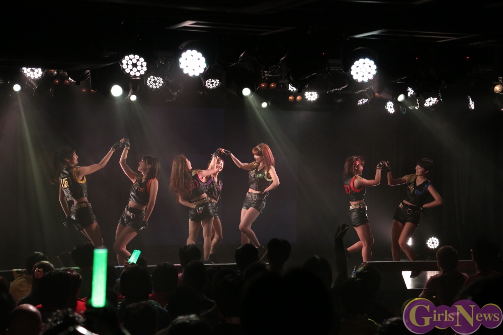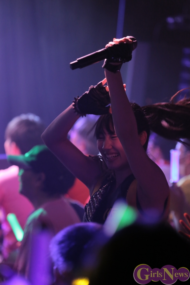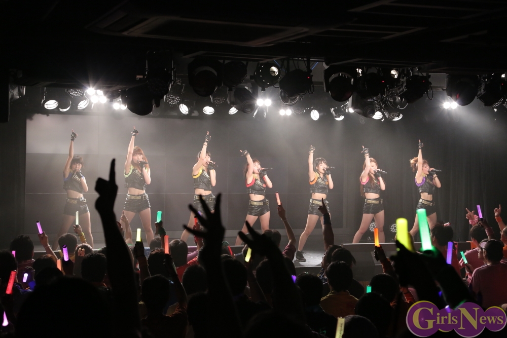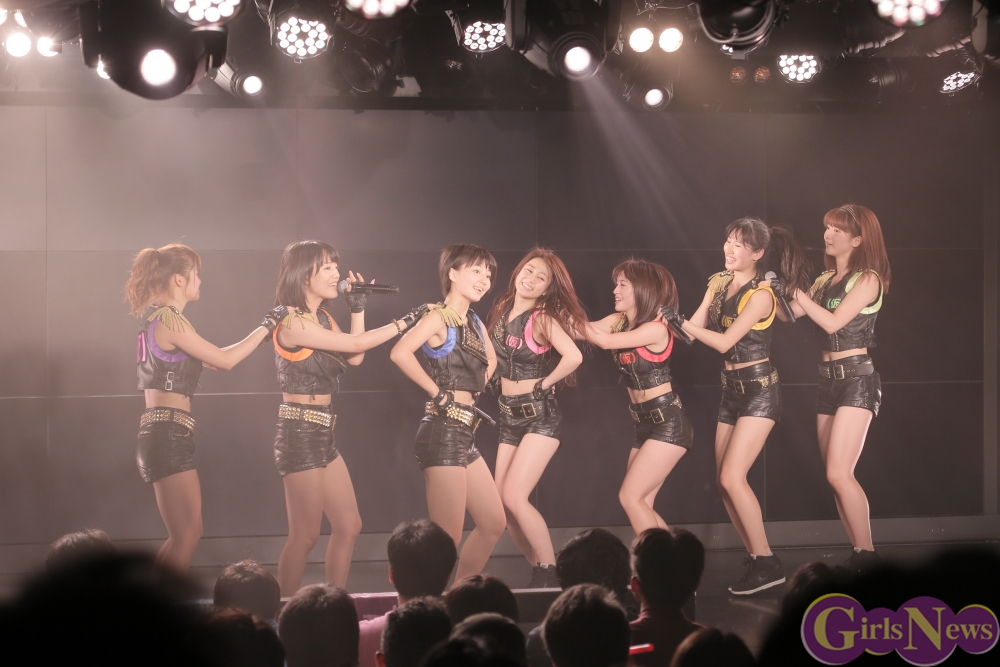 この日の目玉は、客席中央へのメンバーの登場。ライブ中盤、「夕立ち!スルー・ザ・レインボー」から始まった5曲連続のアッパーチューンメドレーでは、メンバーが次から次へとフロアに降りファンと同じ目線で歌い、踊る。中野サンプラザと比べればぐっと小さいAKIBAカルチャーズ劇場だが、逆に会場のスケールメリットを生かして大きな盛り上がりを産んだ形となった。
