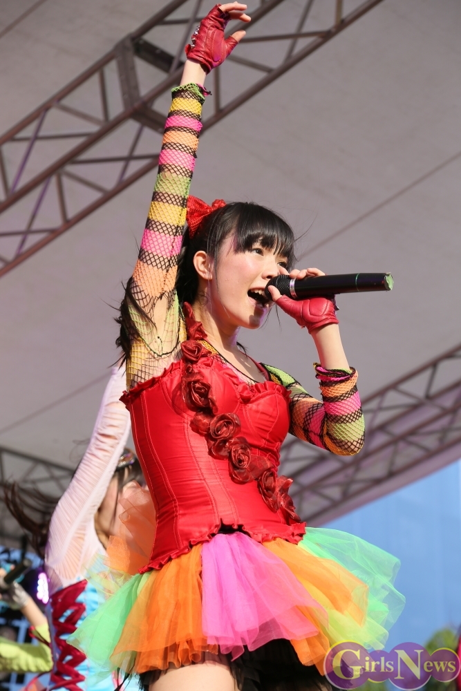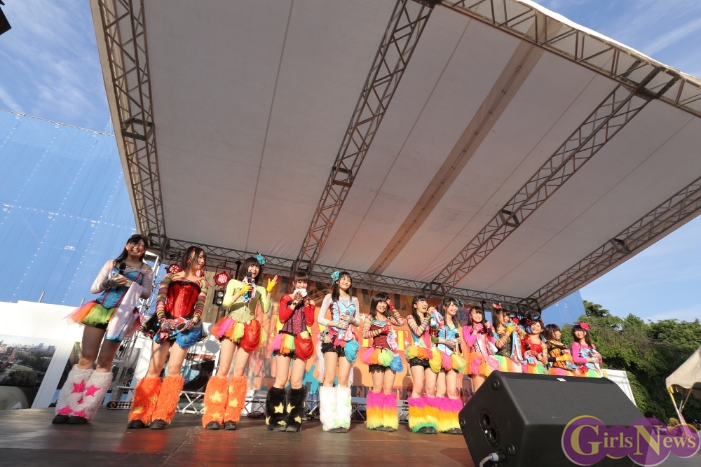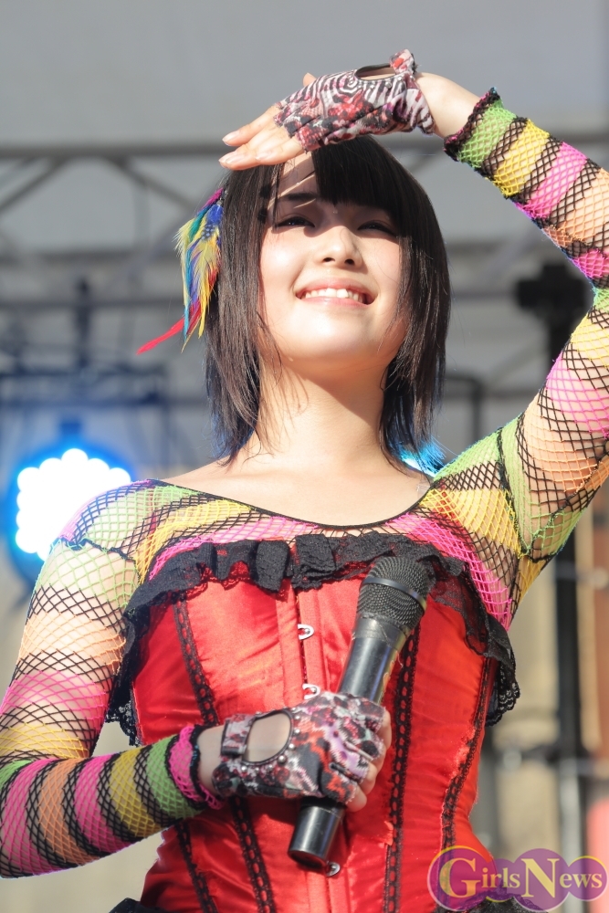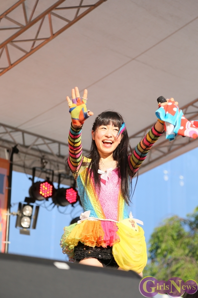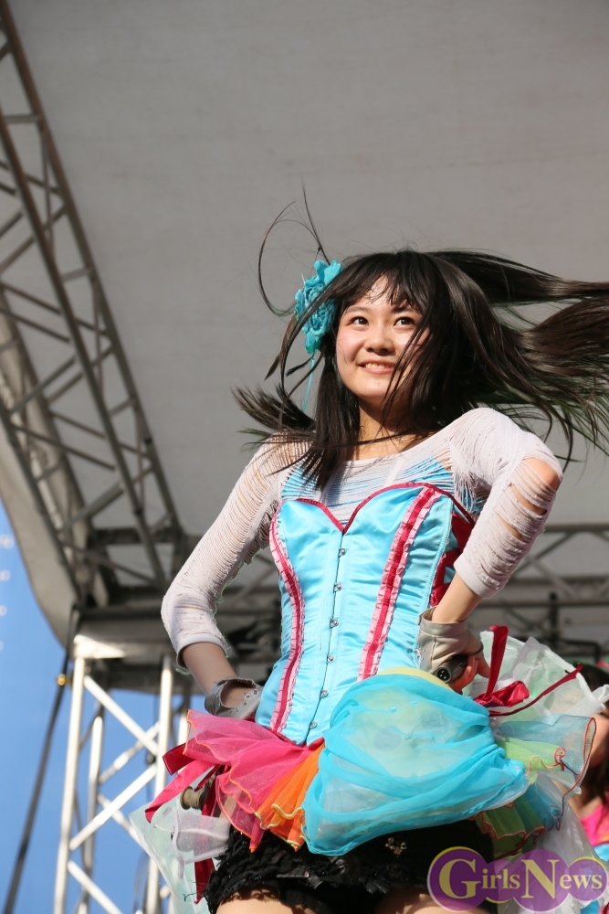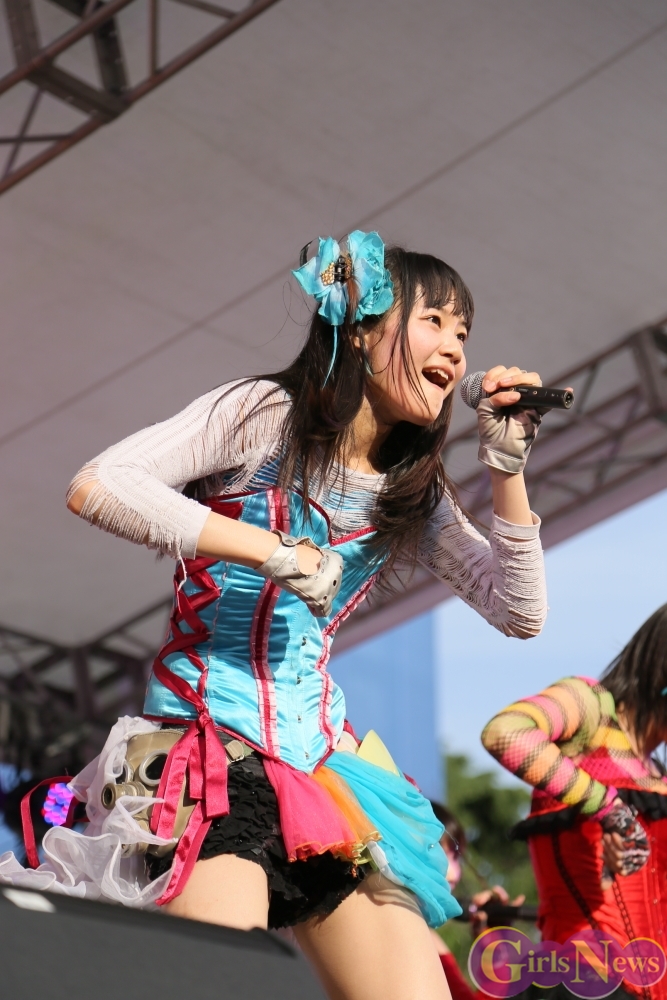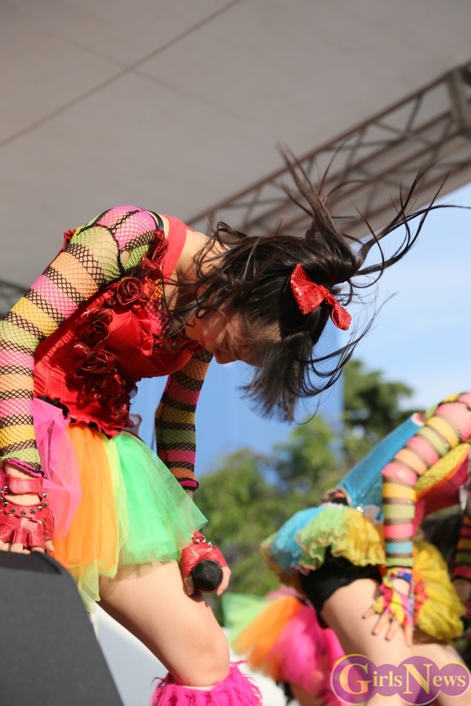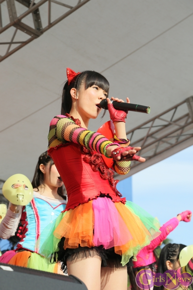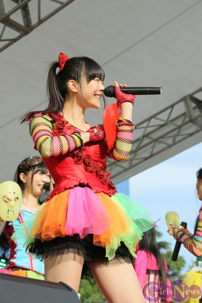 この日は青空が広がりまるで夏のような陽射しであったが、仮面女子が出演した17時前後は穏やかな日光が降り注ぎ、会場全体にそよ風が吹き込む心地よい天候。この日の舞台である本郷キャンパスは、毎年恒例の学園祭「五月祭」が開催され、露店が多数出店されお祭りムード一色。そして、安田講堂前ステージには、今年も仮面女子のファンや東大生が多数集結していた。
