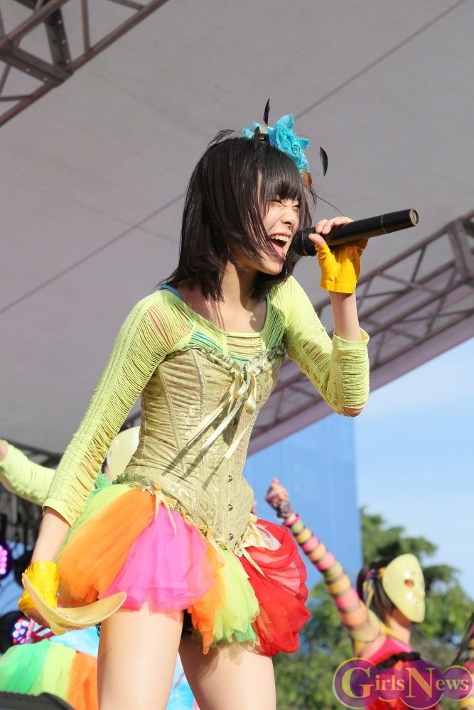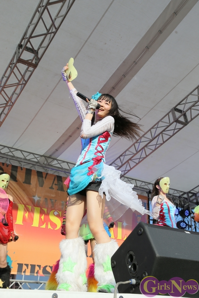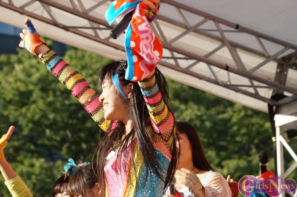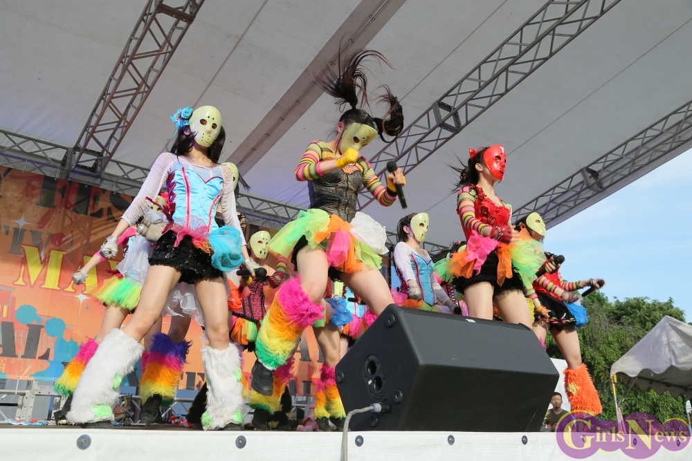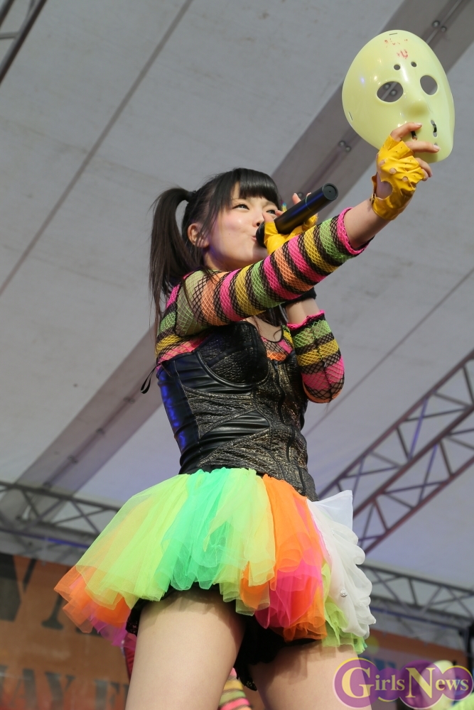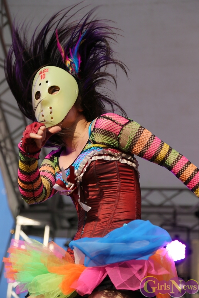 仮面女子のこの日最後の楽曲「夏だね☆」をタオルを振り回しパフォーマンスして大暴れすると会場の空気も一気に最高潮。