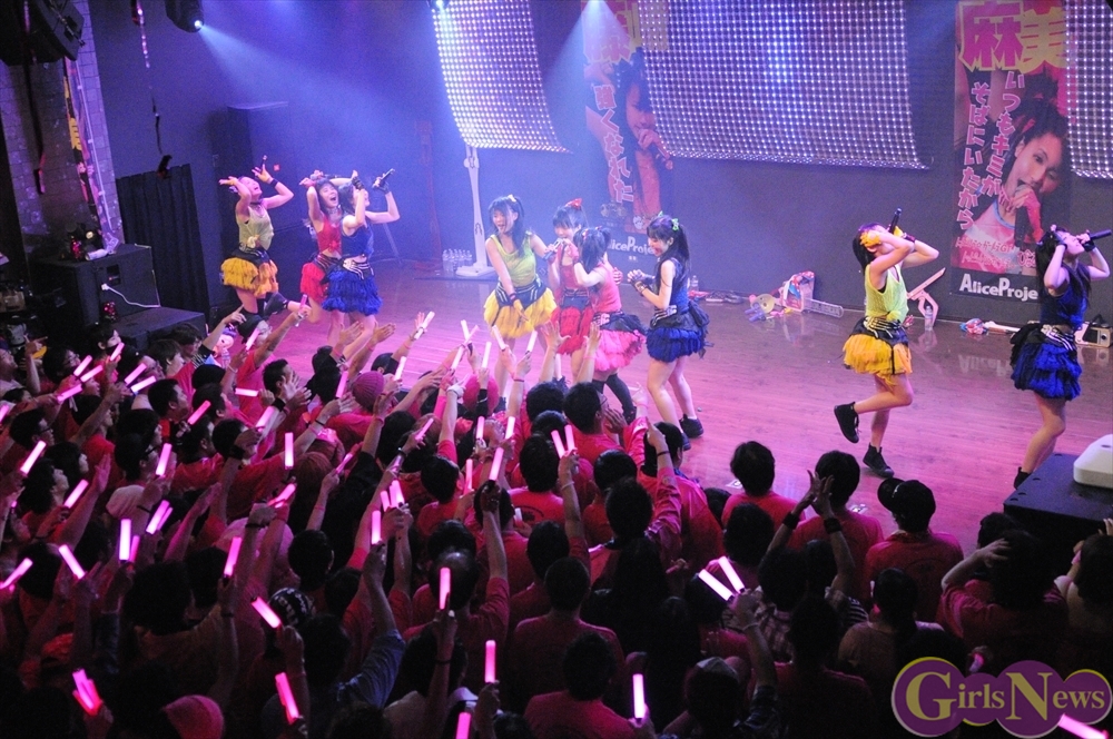 この日は、アリスプロジェクトを初期から支えてきたアリス十番のメンバー藤崎麻美さんの卒業式。若干数の当日券が出たのみで、会場となるP.A.R.M.Sは藤崎麻美さんの卒業式を盛り上げようと集まったファンで超満員になった。