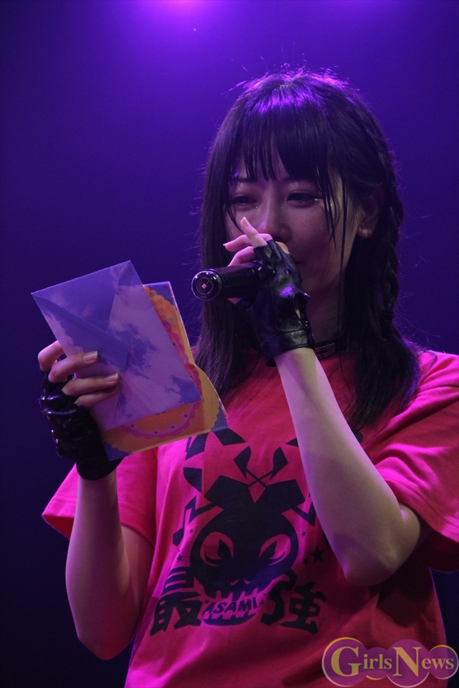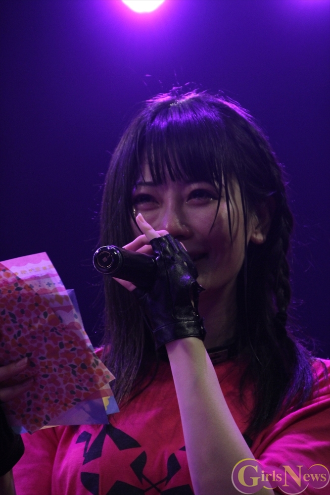 去年末にはワンマンではないけれども、日本武道館という夢のステージに立つこともできて、ずっと色んなライブを見に行っていた場所なので、そんな場所に立てたことが本当に光栄で、私の夢が叶ったって思いました。なので、もうアイドルに未練はないというか、私がしたいことは叶ったので、ここでこうして卒業することになりました。本当にもう悔いはないです。皆さんがたくさん応援してくれたおかげで私の夢が果たせました。ありがとうございます。