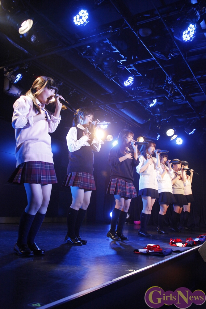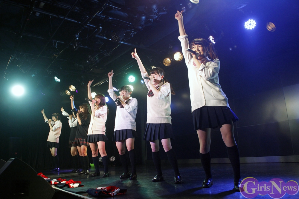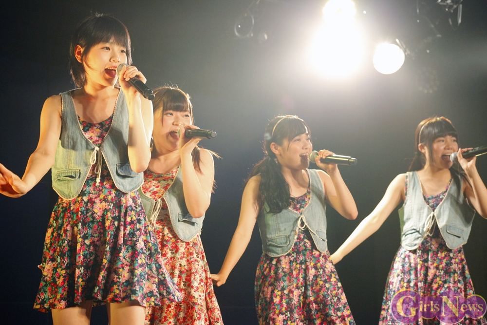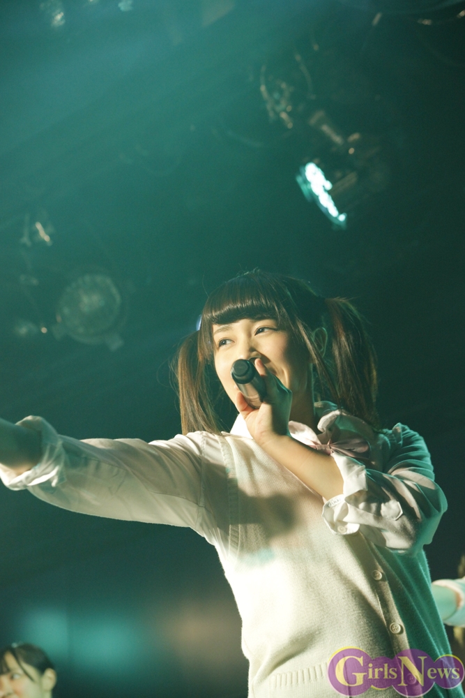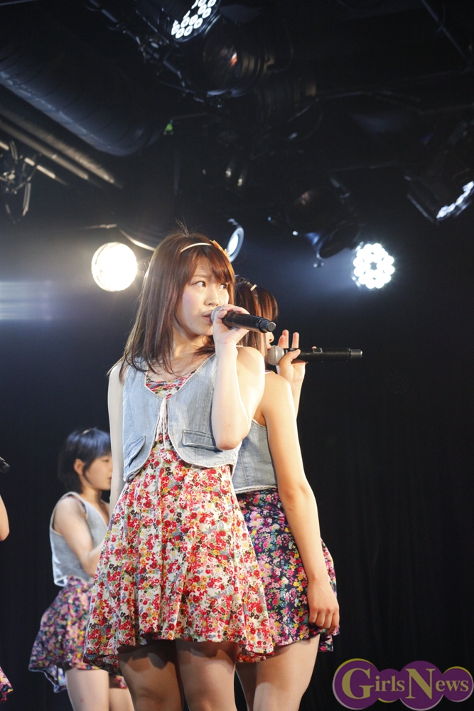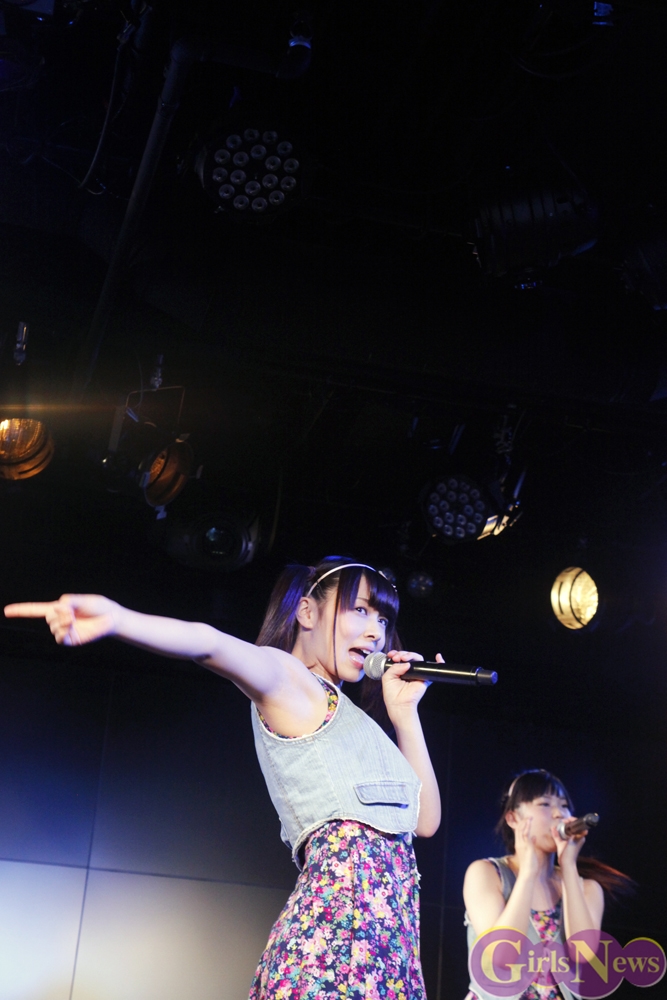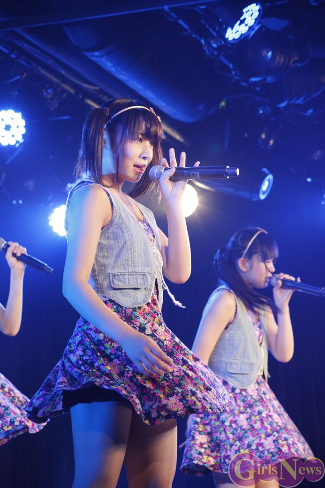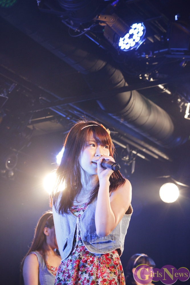 彩り鮮やかなリボンを持ったメンバーが登場し、「七色リアル」でステージの幕が開く。「七色リアル」は聞いているだけで背中を押されるような、JK21随一の応援歌だ。奇しくもライブはサッカーW杯で日本代表がコートジボワール代表に逆転負けを喫した直後。秋葉原にも立ち込めた暗い雰囲気を、メンバーが笑顔と一緒に打ち消した。続いての「年上のダーリン」「エニシングゴーズ」も、アップテンポが耳に残る曲たち。夏の空を思わせるようなパフォーマンスで、老舗としての実力を存分にアピールした。
