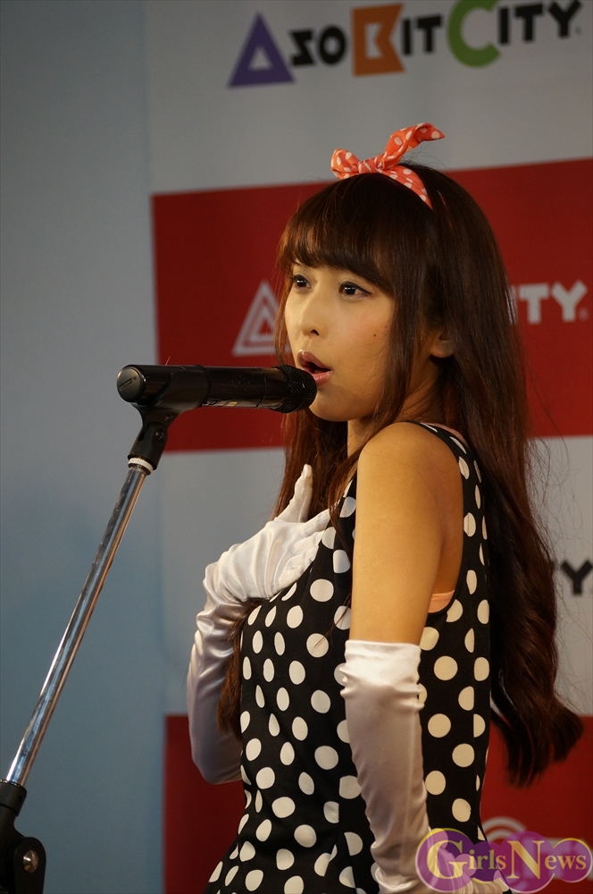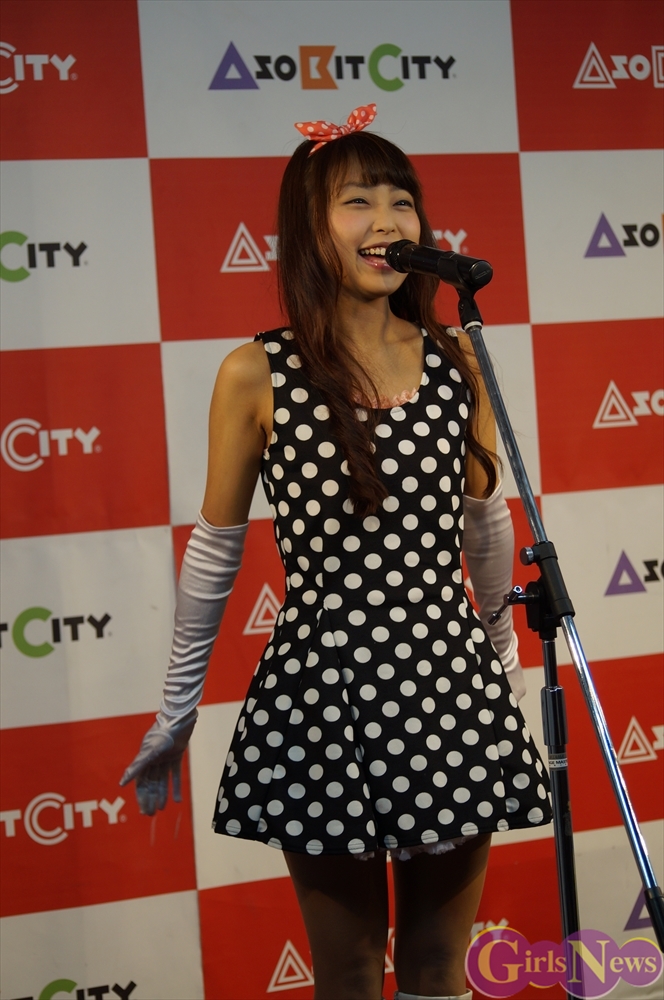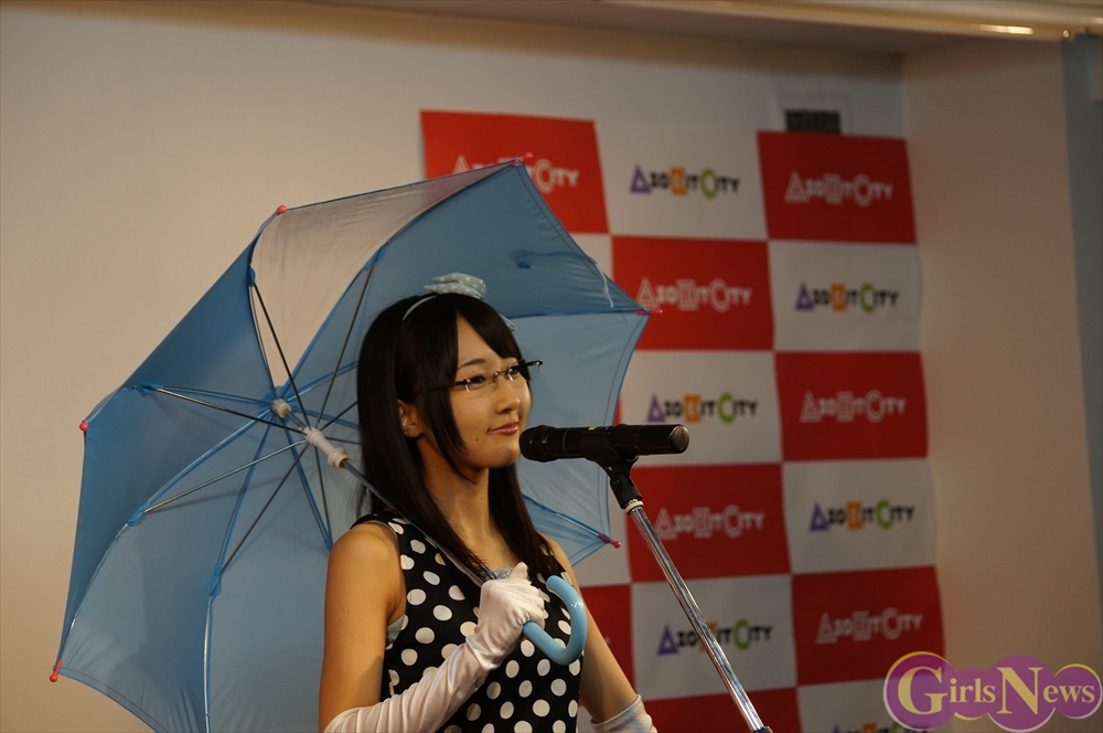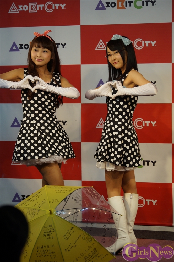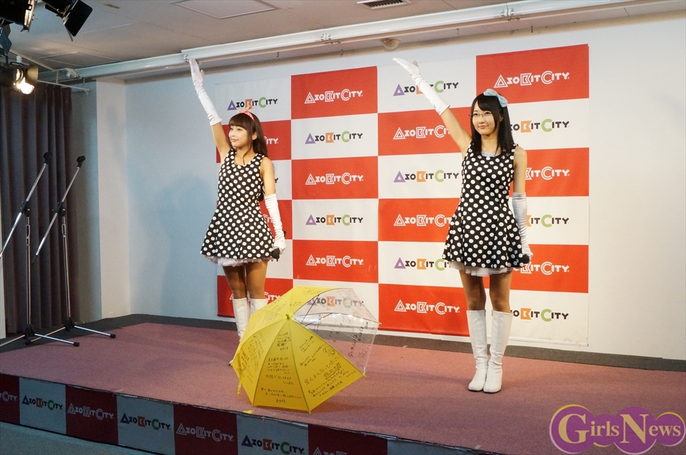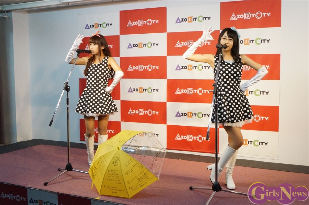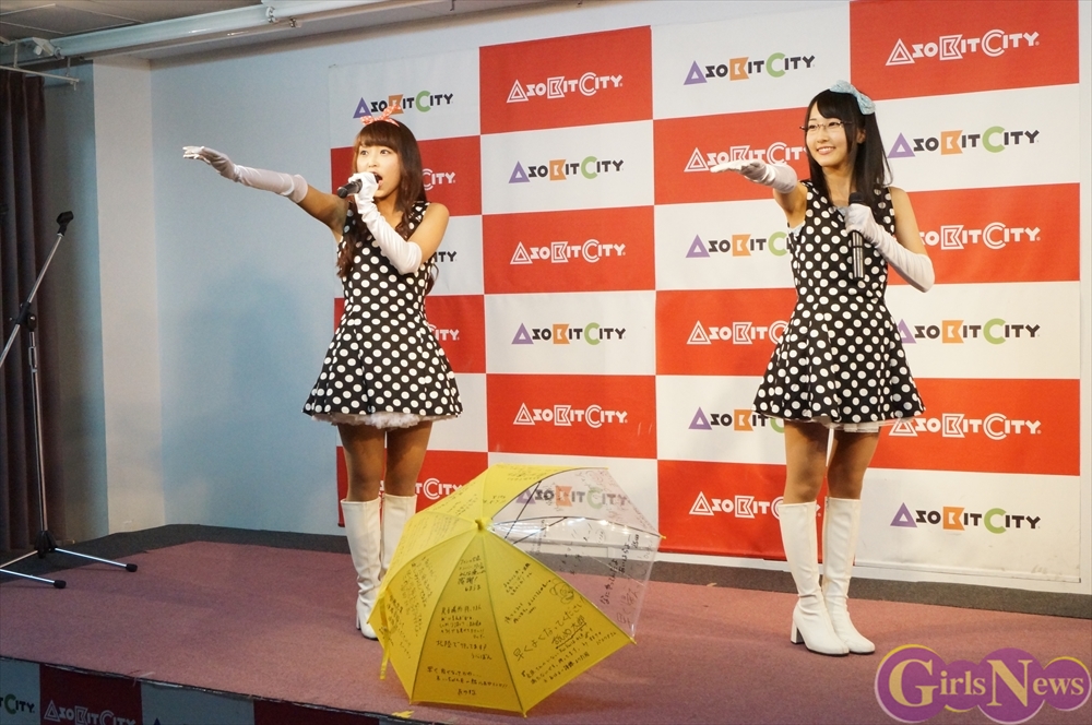 リリースイベント最終日、水玉模様のワンピース姿で登場し、まずは新曲「恋模様」を披露。メンバーカラーの傘を持ってクルクル回したり、歌詞の中にも“アンブレラ”や”天気予報”というフレーズが多く使われており、今の時期にピッタリ。