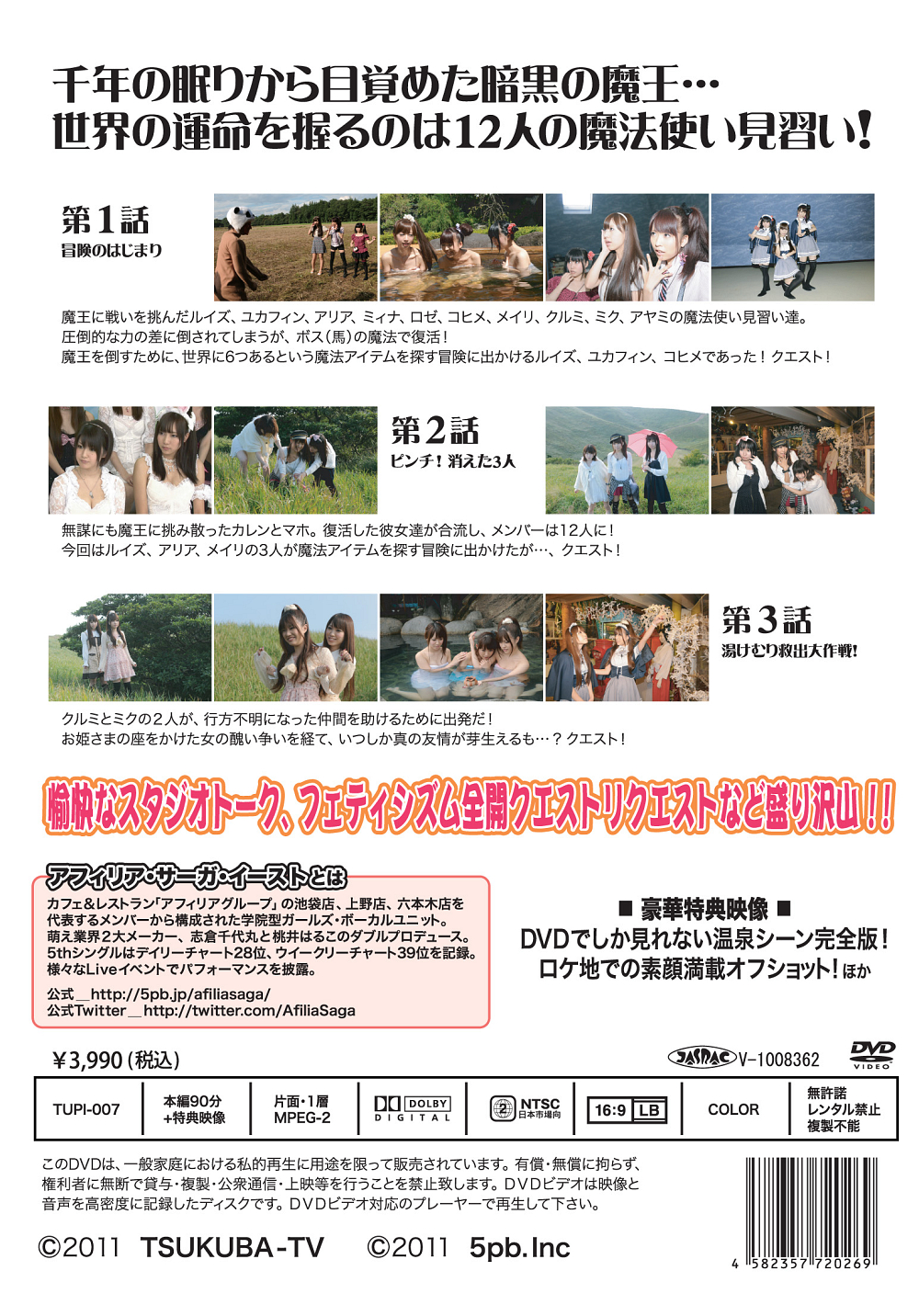 スカパー!で好評放送中のアフィリアのバラエティー番組をパッケージ化。千年の眠りから目覚めた暗黒の魔王!世界を救うため立ち上がった魔法使い見習いの少女たち!愉快なスタジオトーク、フェティシズム全開のクエストリクエストなど盛り沢山!豪華特典映像として、DVDでしか見られない温泉シーン完全版や素顔満載のオフショットを収録。