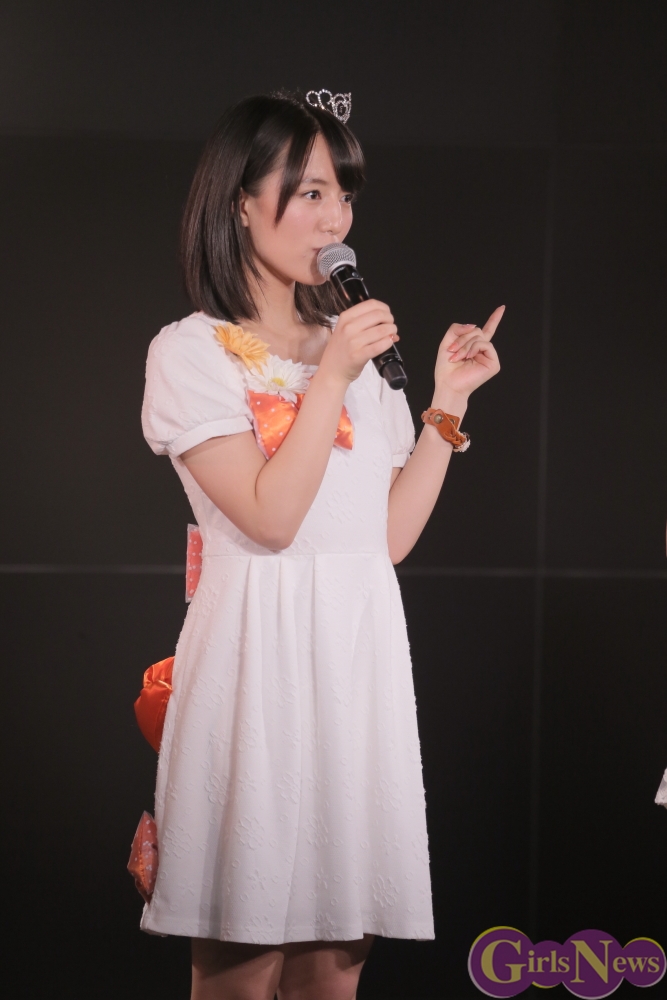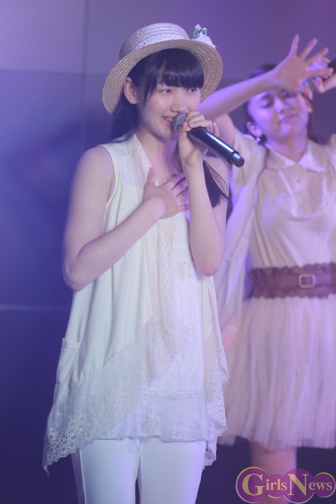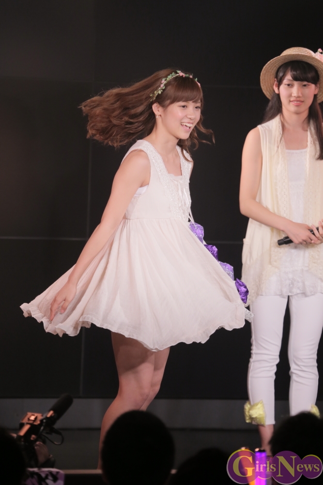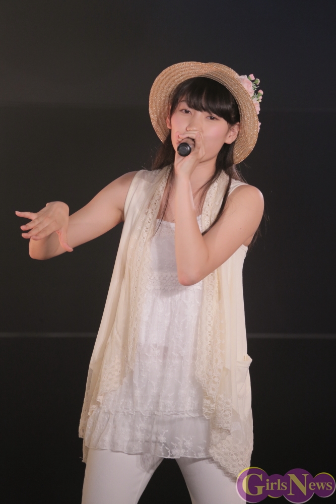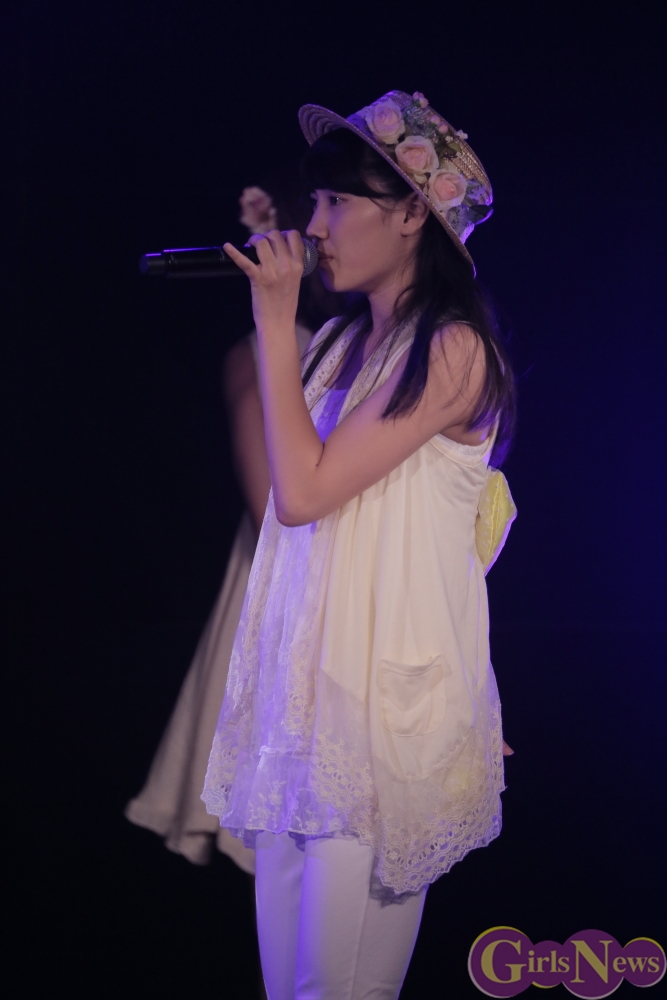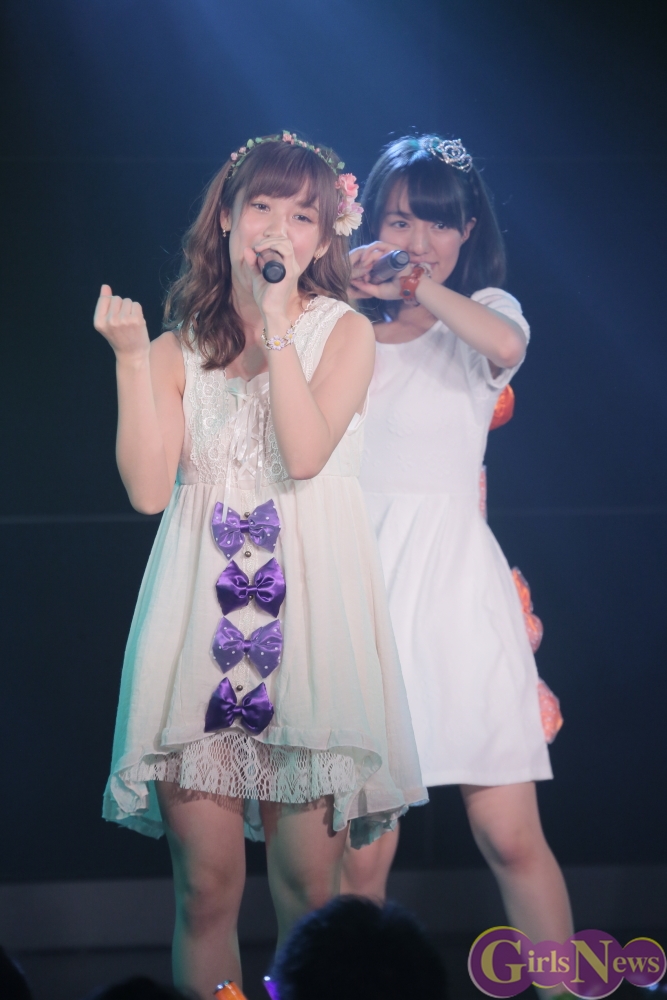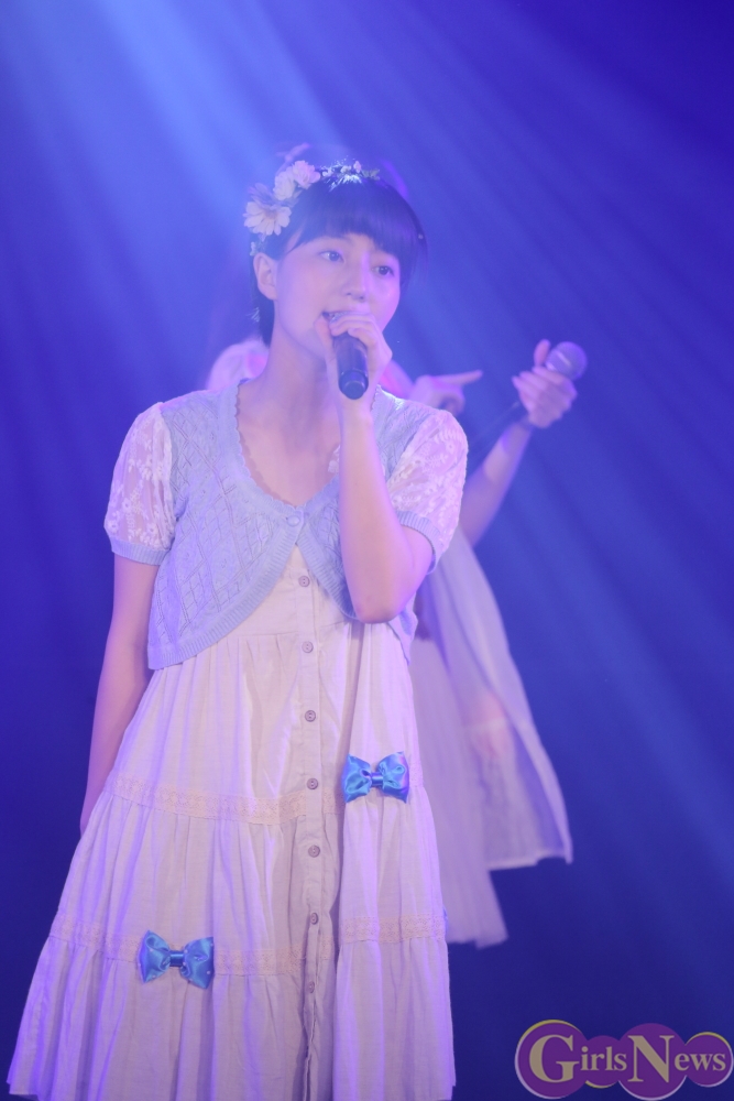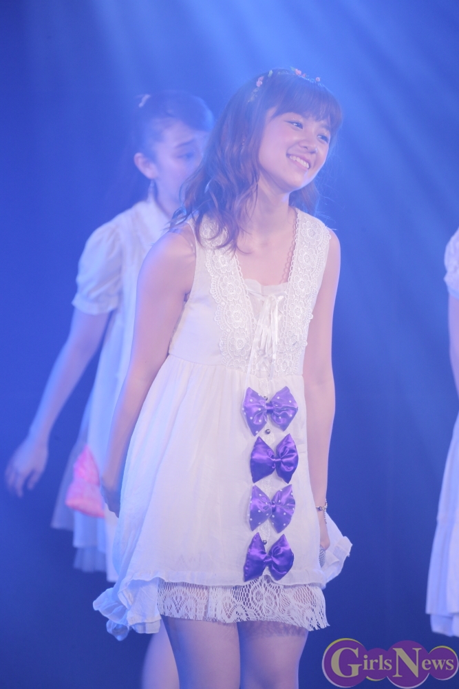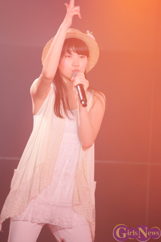 主役の関根さんの衣装は背面にもオレンジのリボンをたっぷりつけたもの。可愛らしくクルっとターンした後、照れ隠しなのか、お得意の「やっぴぃ」ポーズ。MCも「最後までどうかよろしくお願いします。」とやや緊張気味だった。「小悪魔さんから頂いたリンゴ(のアクセサリー)が毒リンゴでないことを祈りながら可愛く頑張ります。」とコメントしたのは仙石みなみさん。普段は侍魂の持ち主を自称する仙石さんも「女戦士の休日」とばかりに短いスカートを揺らしていた。