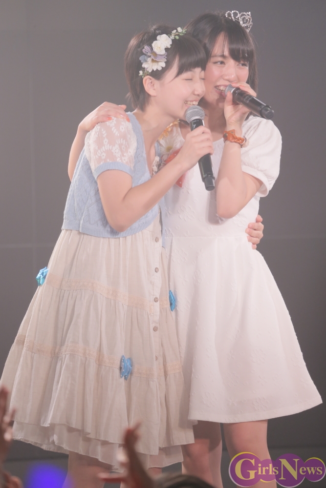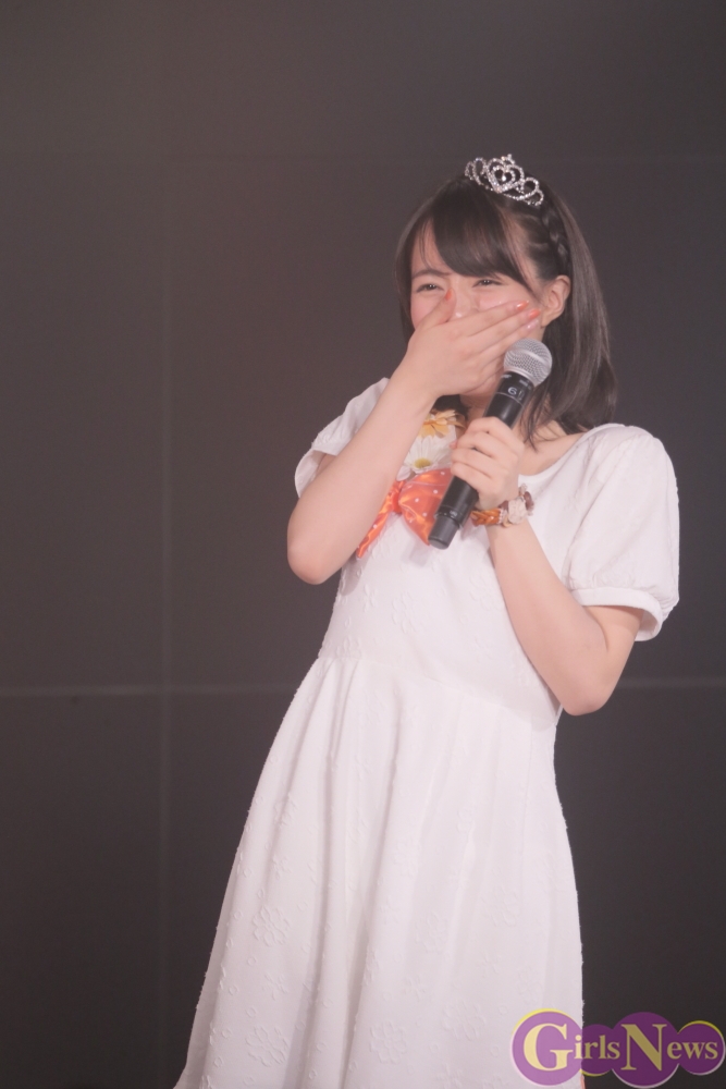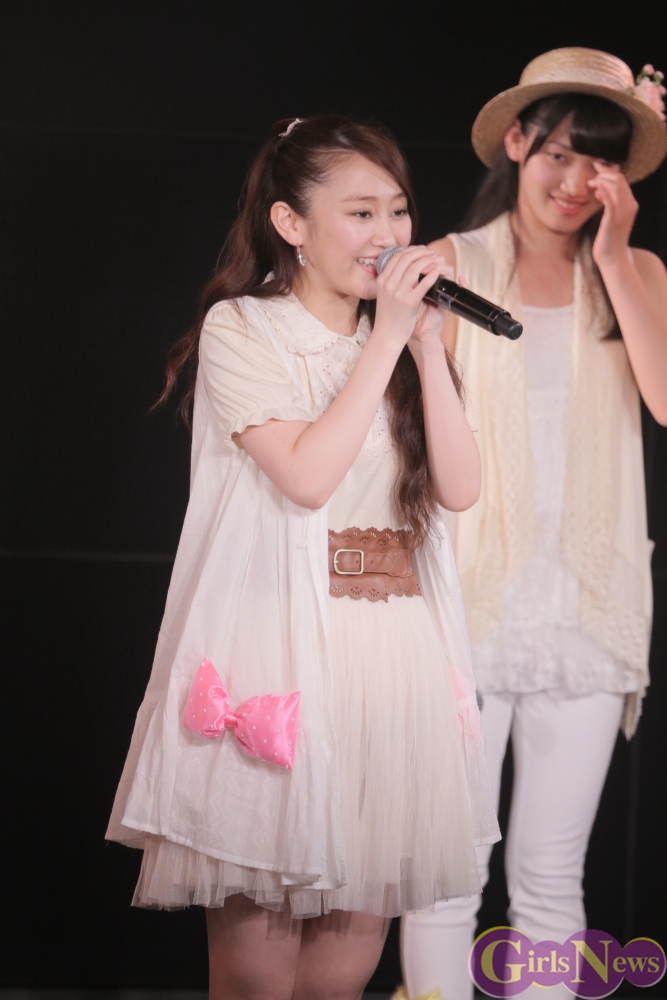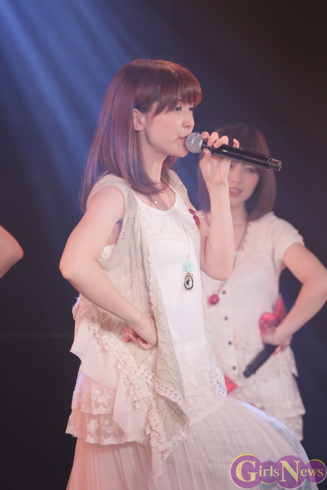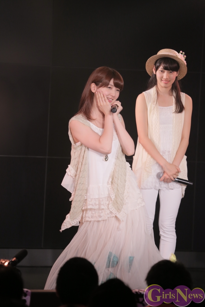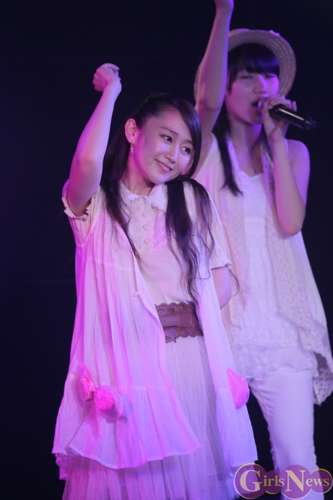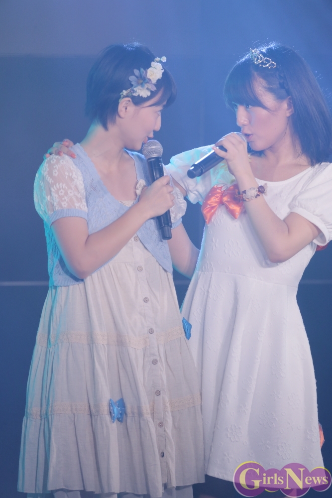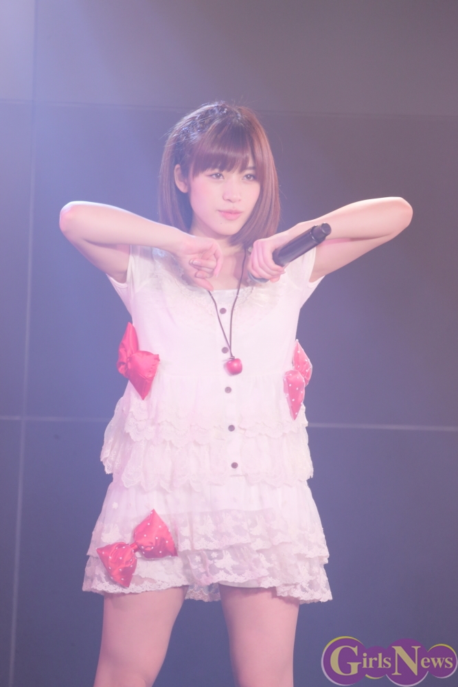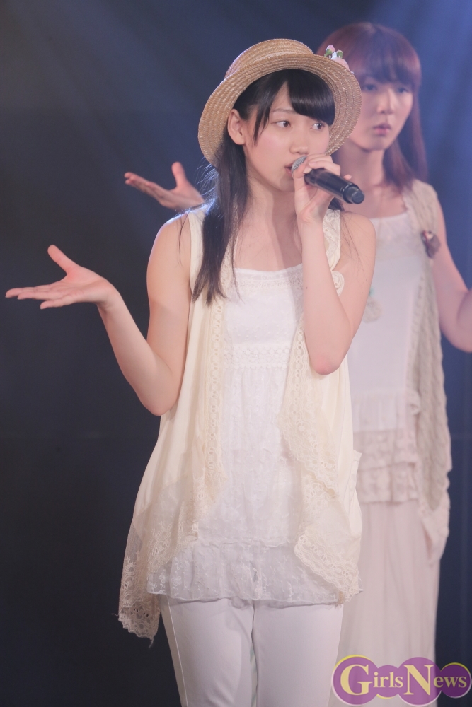 主役の関根さんの衣装は背面にもオレンジのリボンをたっぷりつけたもの。可愛らしくクルっとターンした後、照れ隠しなのか、お得意の「やっぴぃ」ポーズ。MCも「最後までどうかよろしくお願いします。」とやや緊張気味だった。「小悪魔さんから頂いたリンゴ(のアクセサリー)が毒リンゴでないことを祈りながら可愛く頑張ります。」とコメントしたのは仙石みなみさん。普段は侍魂の持ち主を自称する仙石さんも「女戦士の休日」とばかりに短いスカートを揺らしていた。