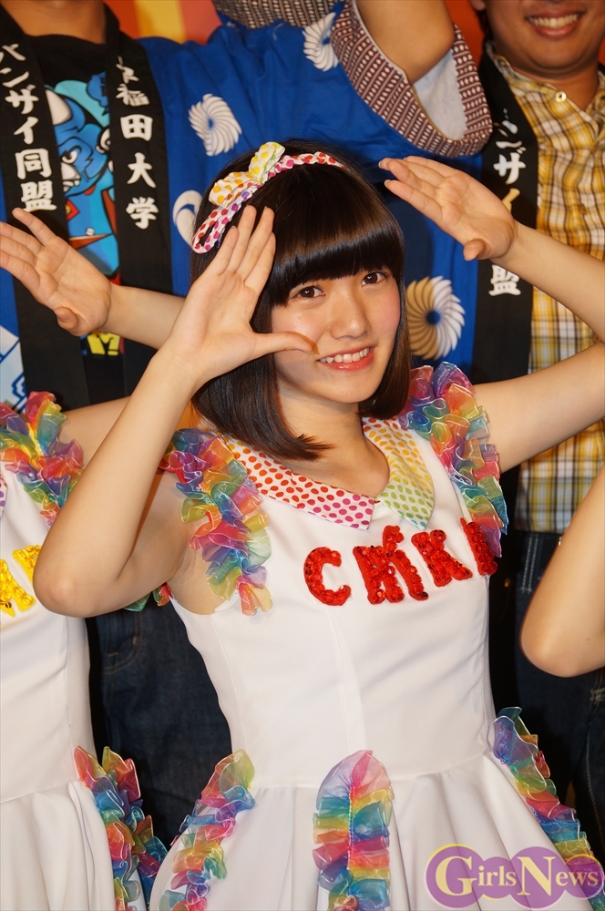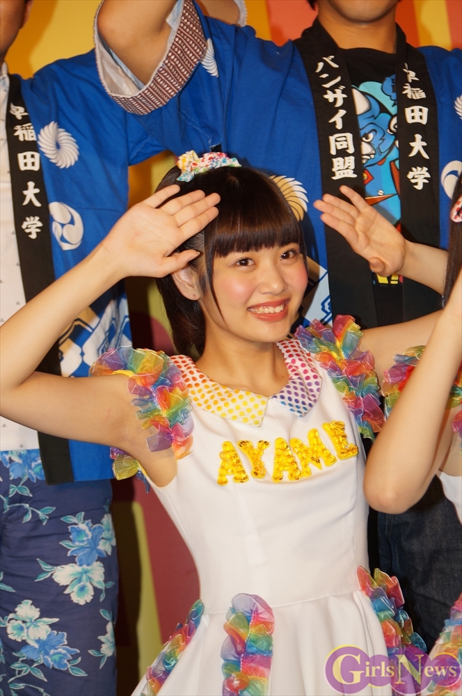 早稲田大学バンザイ同盟のバンザイで会場を盛り上げテンションアゲアゲで「乙女の365日」と「乙女新党のうた」の2曲を熱唱。